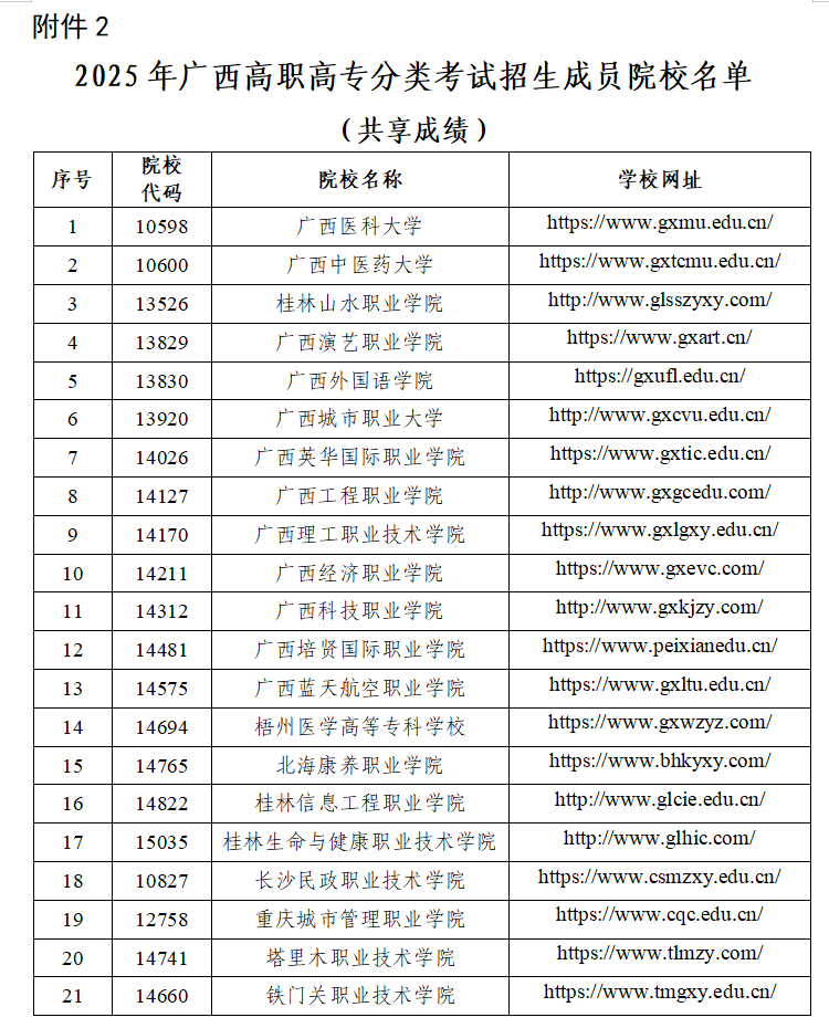 2.2025年广西高职高专分类考试招生成员院校名单(共享成绩)