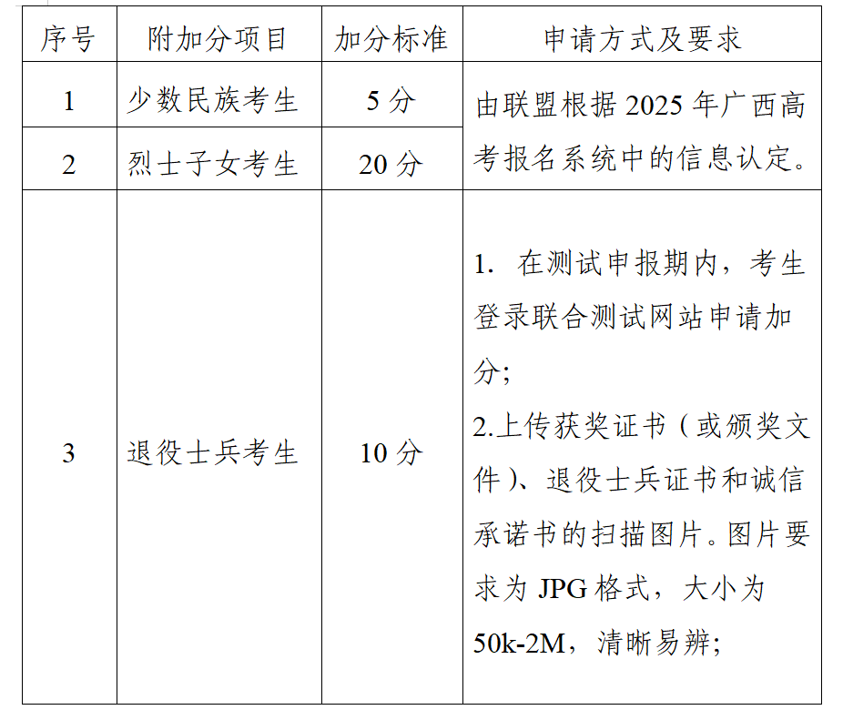 经联盟院校统一评审认定加分,于2025年3月18-29日在广西高职高专招生网站(https://www.gxzslm.cn/)公示。
