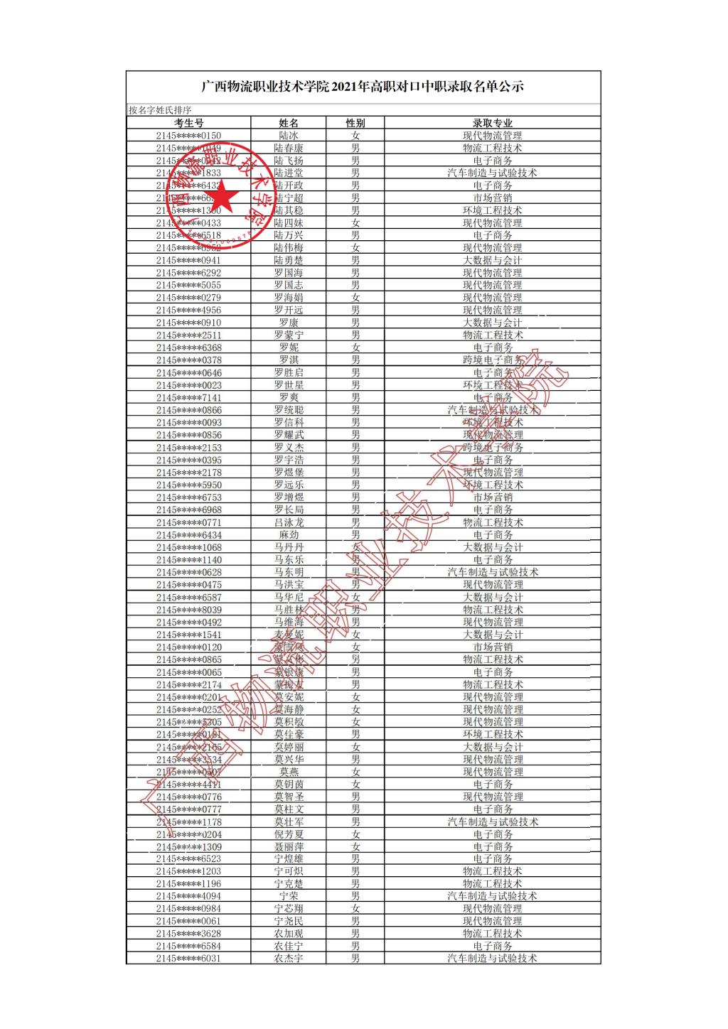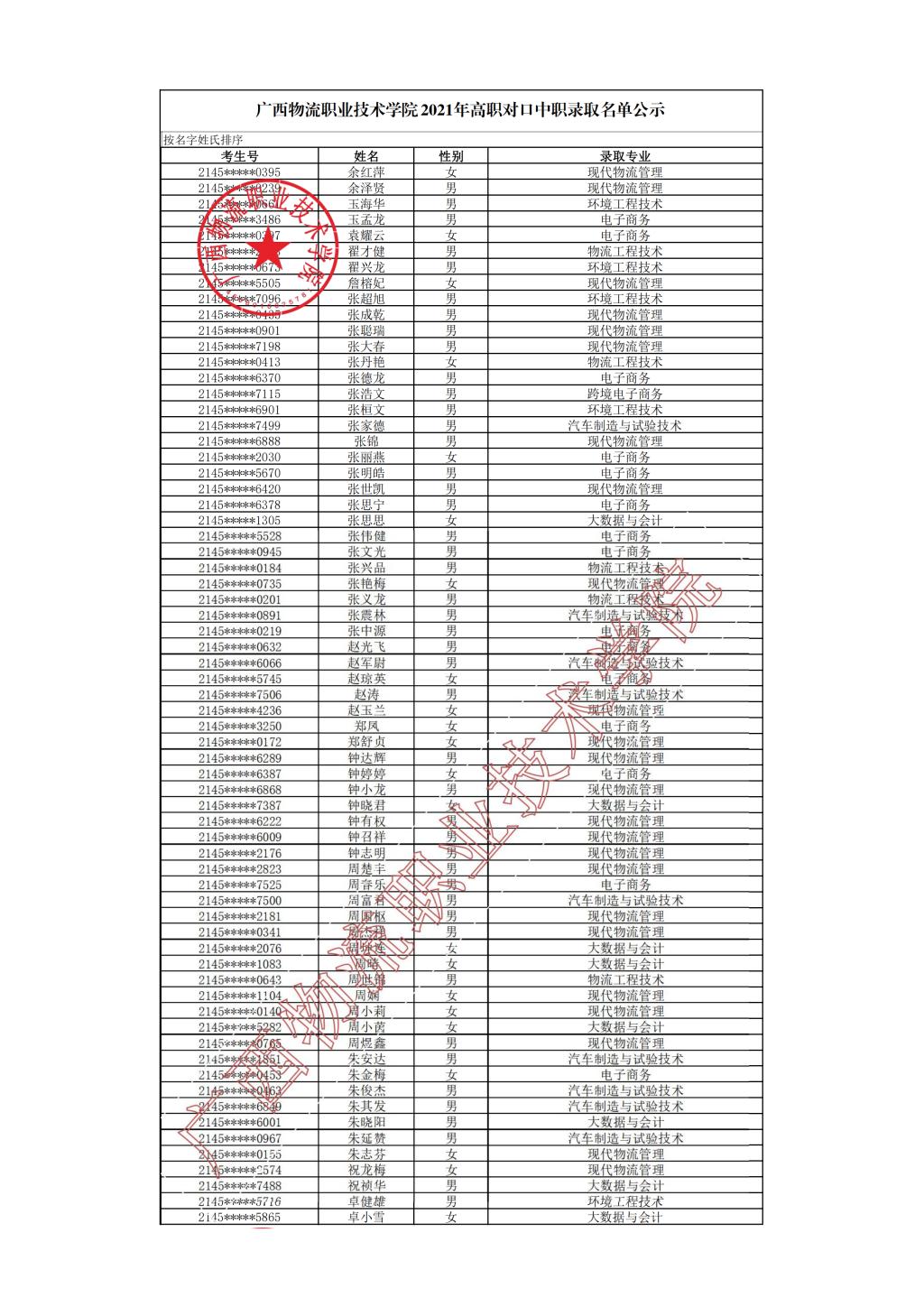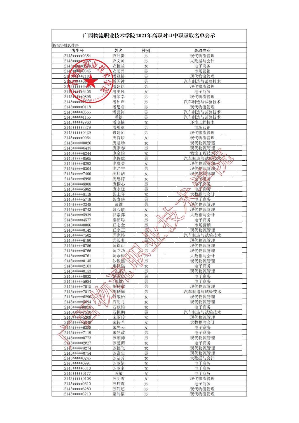 pp电子官方网站2021年高职对口中职录取名单公示(源文件链接)