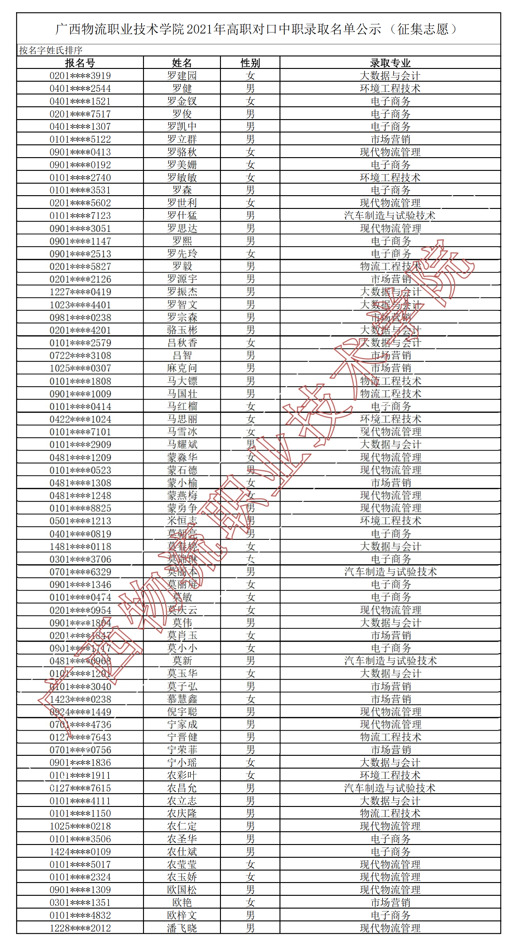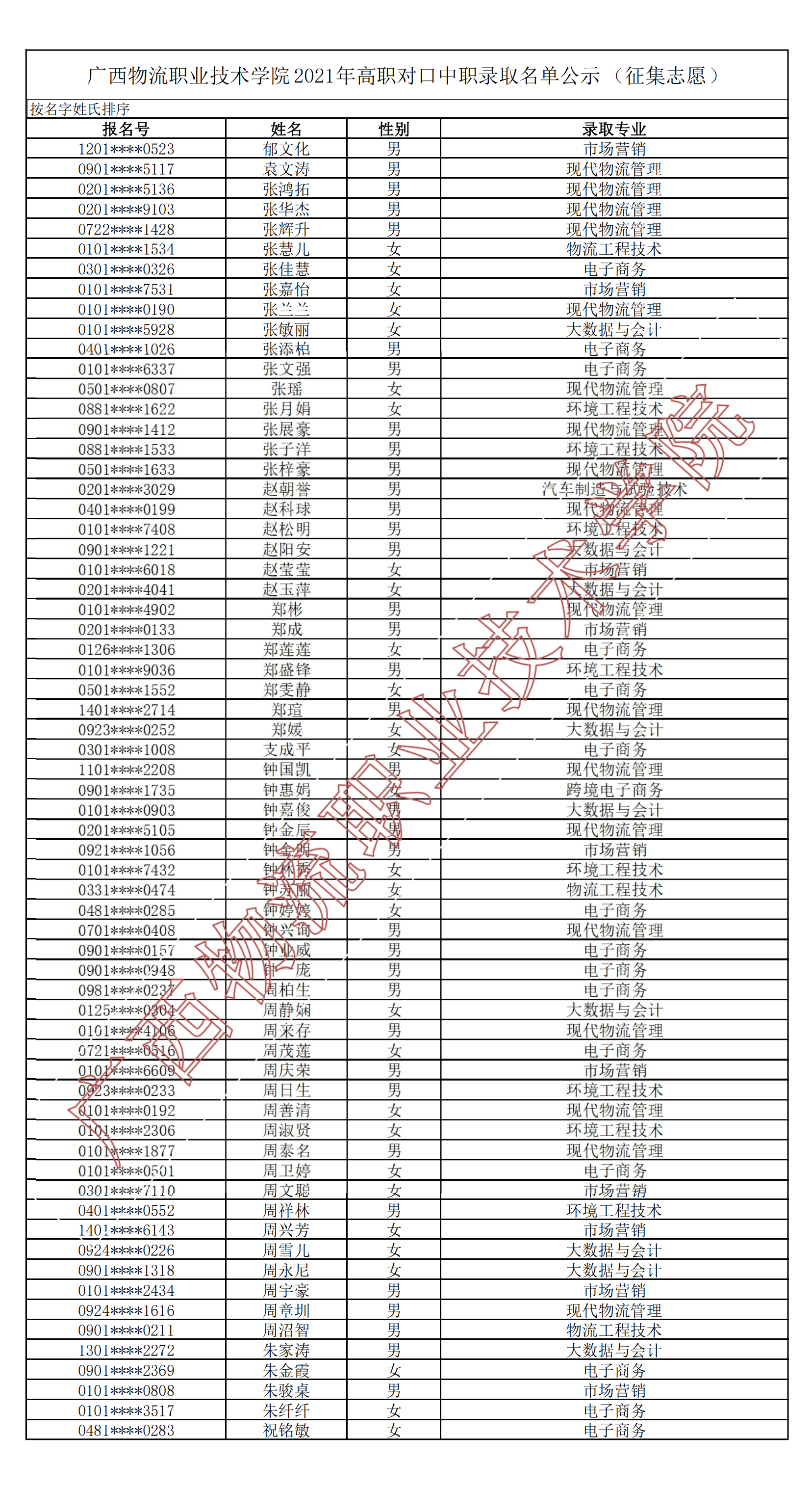 pp电子官方网站2021年高职对口中职录取名单公示(征集志愿)(源文件链接)