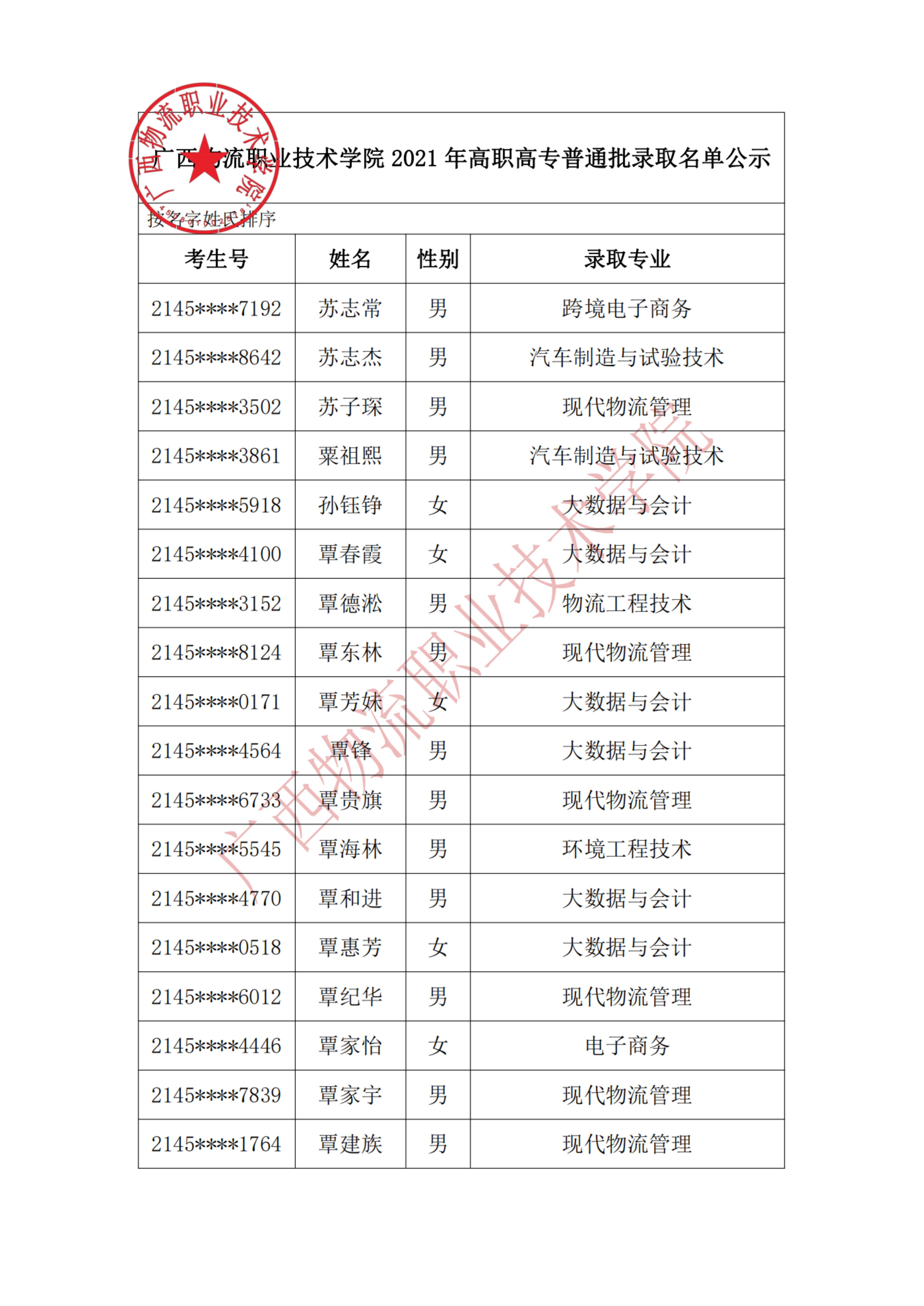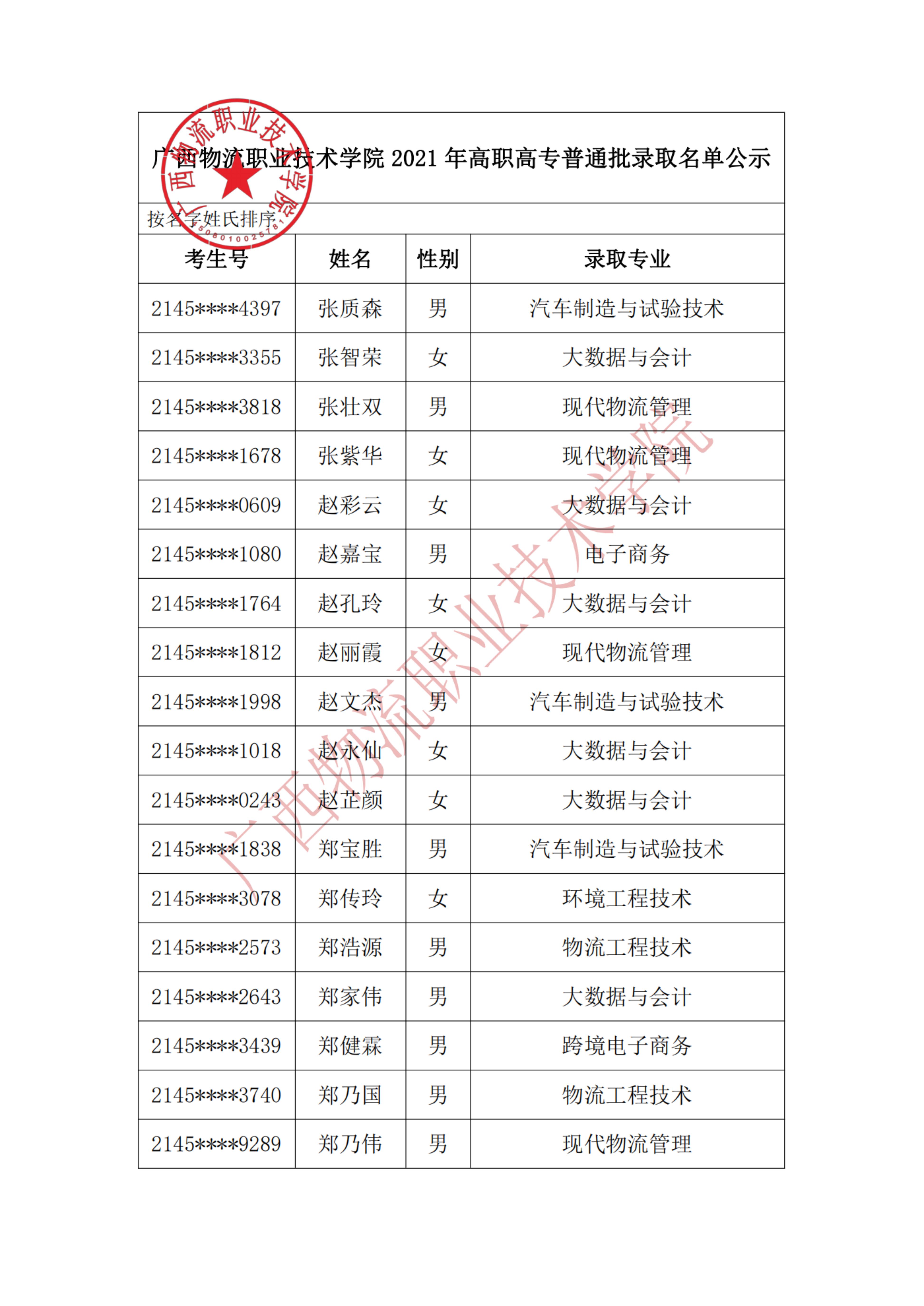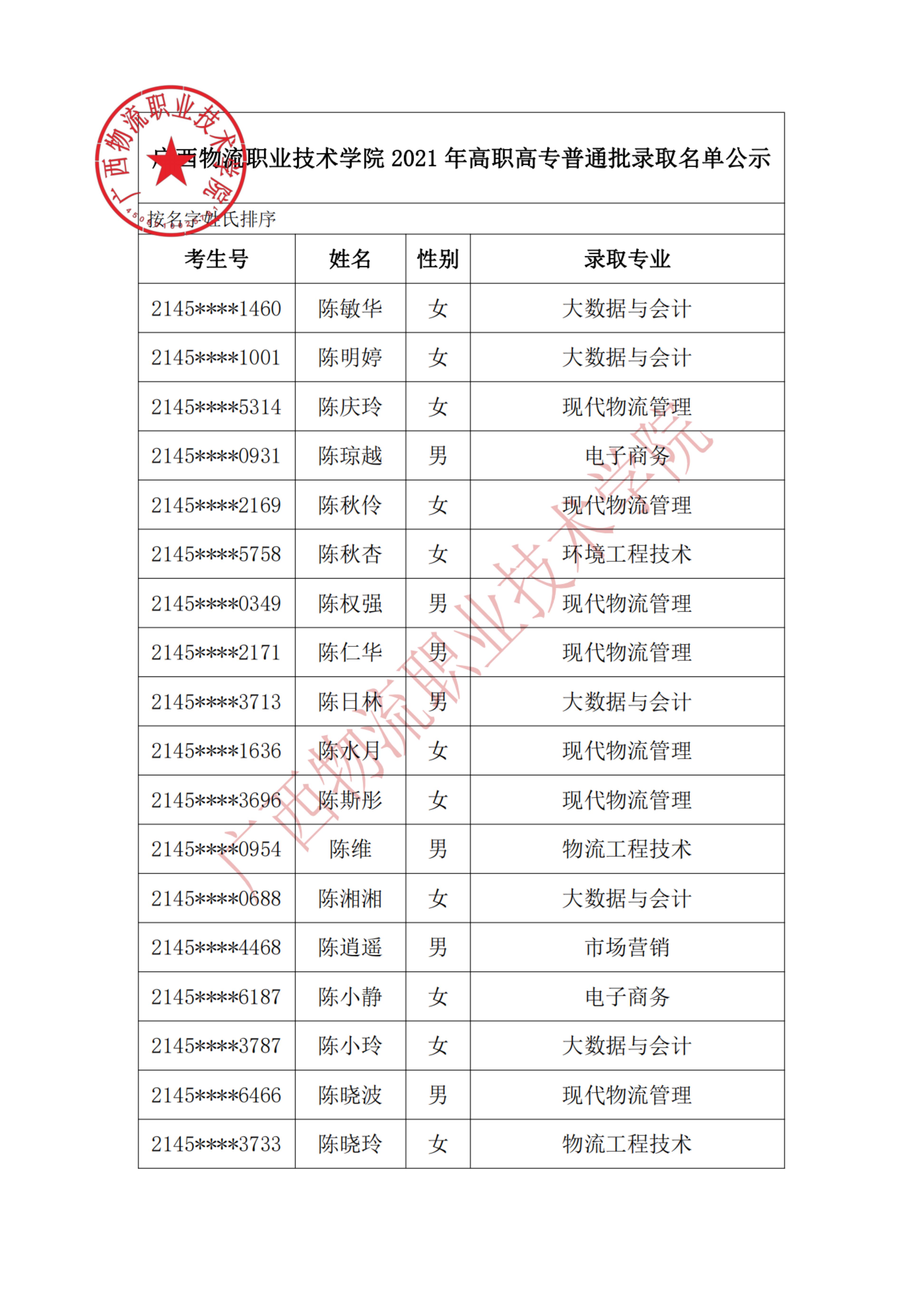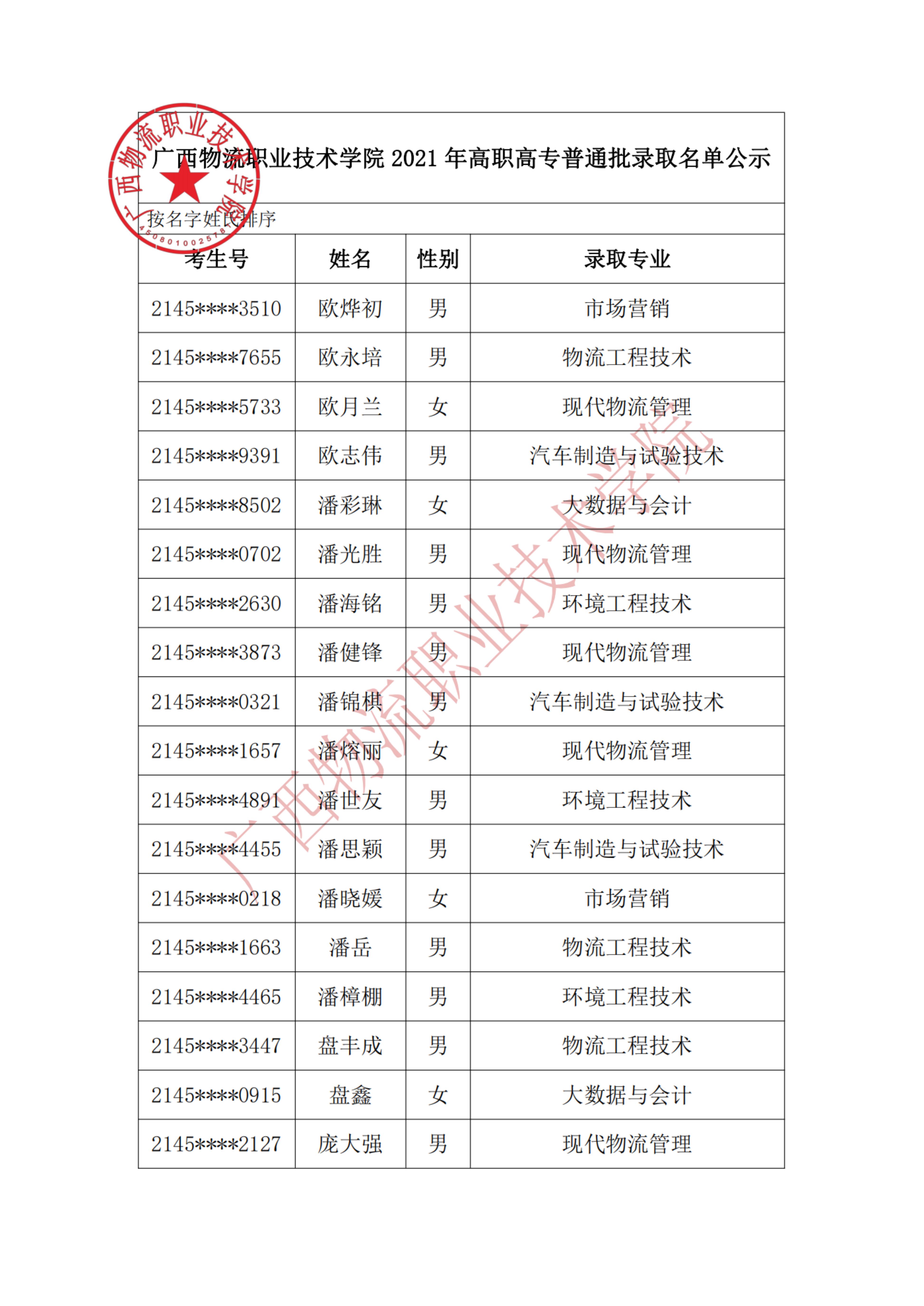 pp电子官方网站2021年高职高专普通批录取名单公示