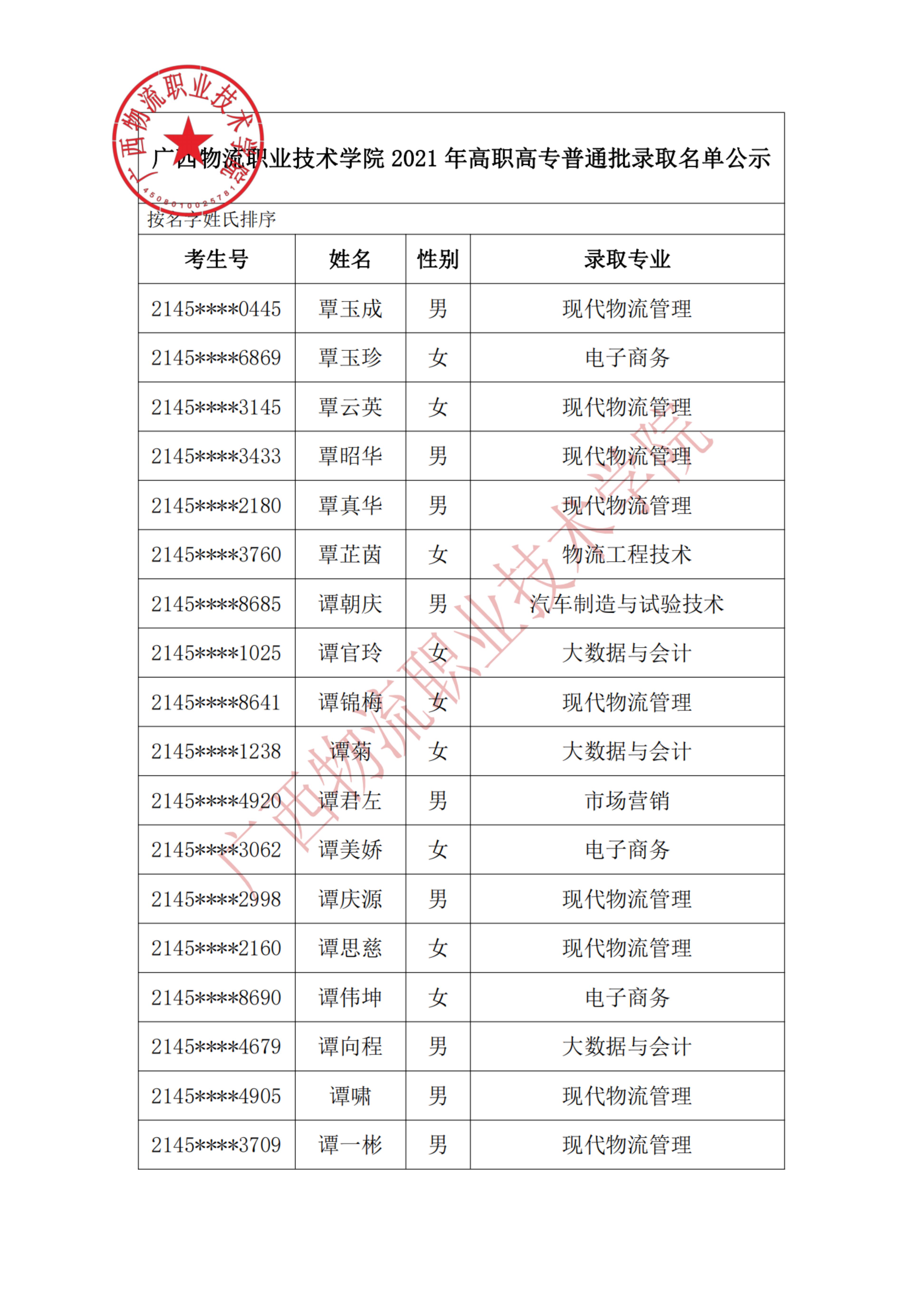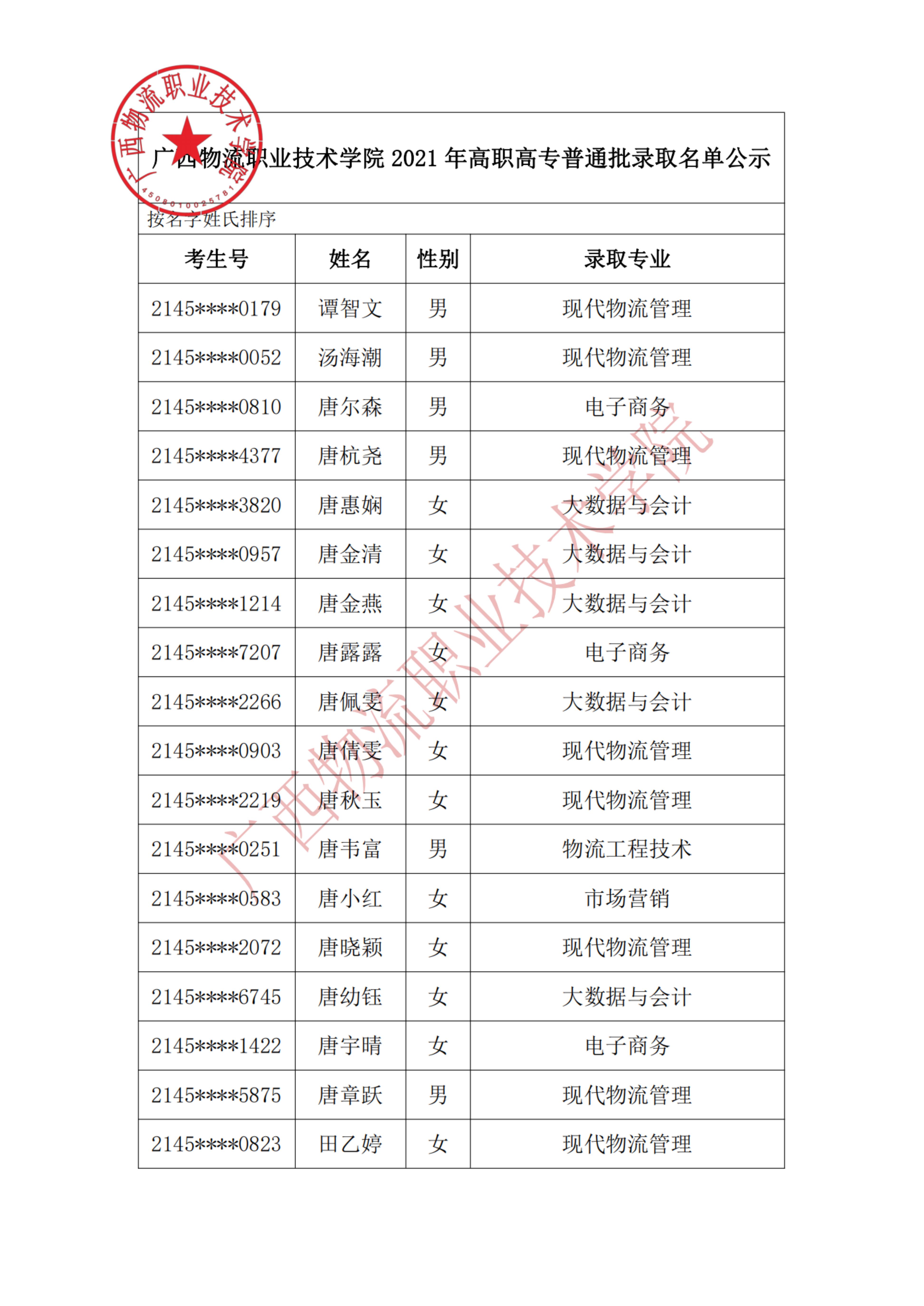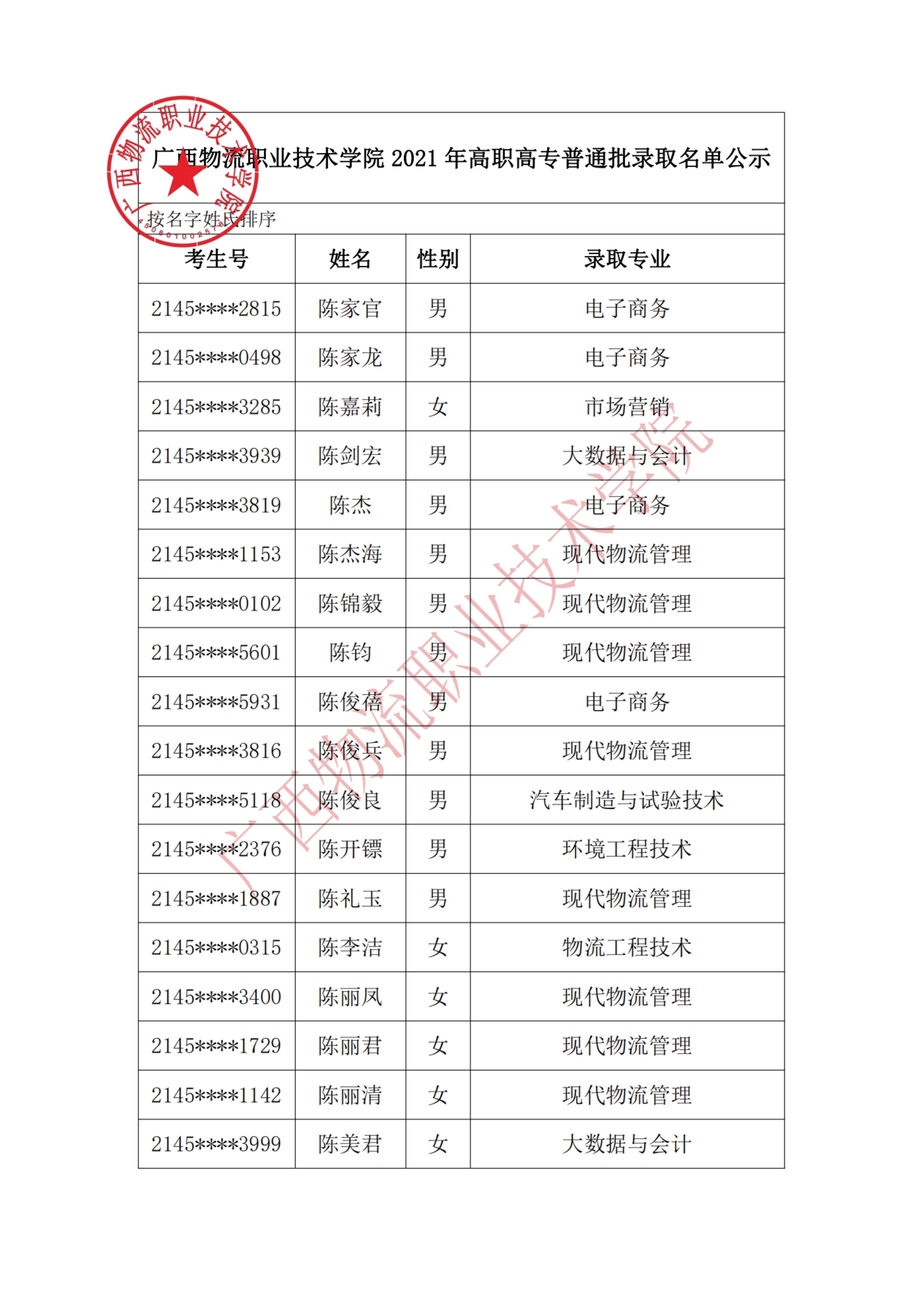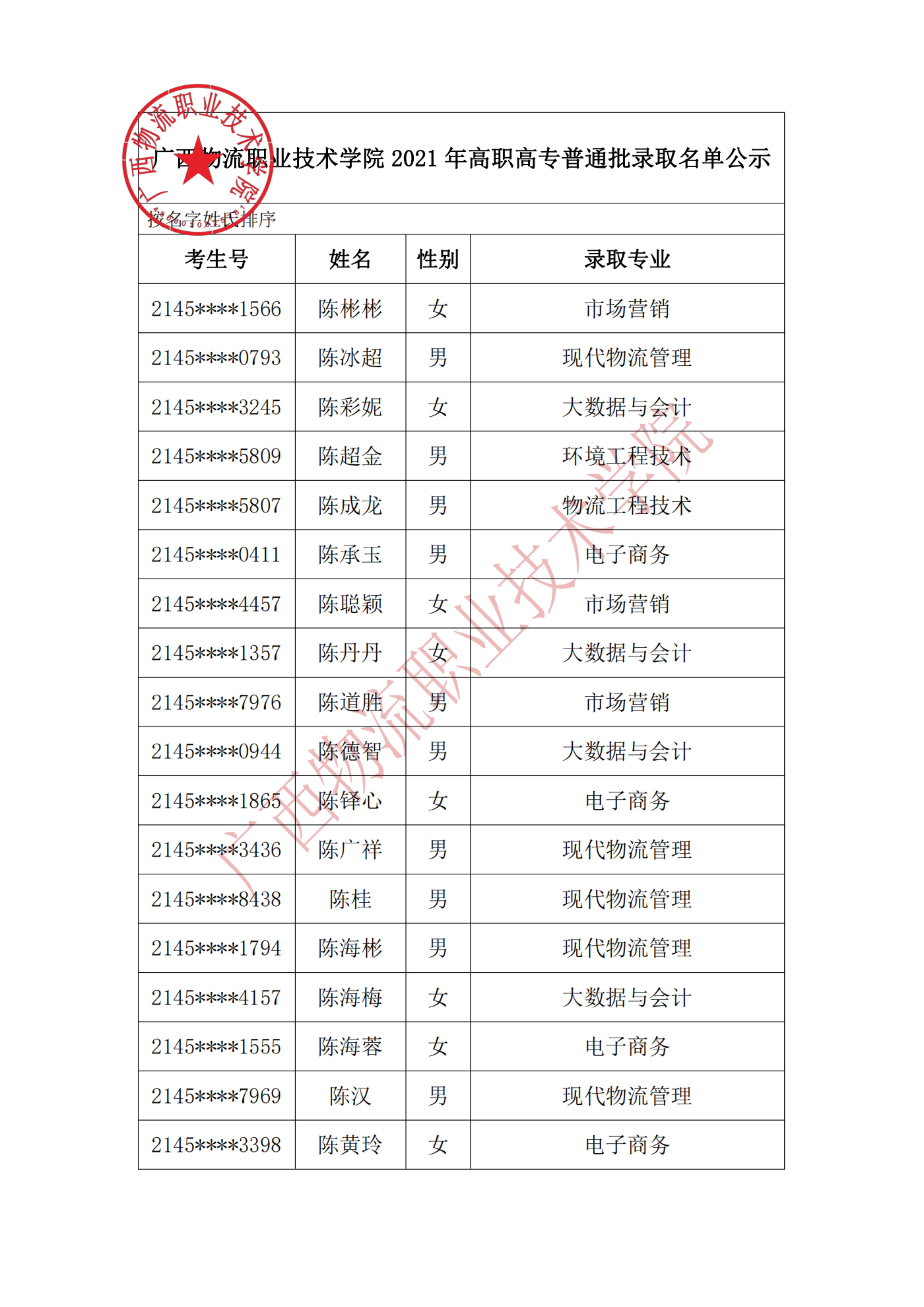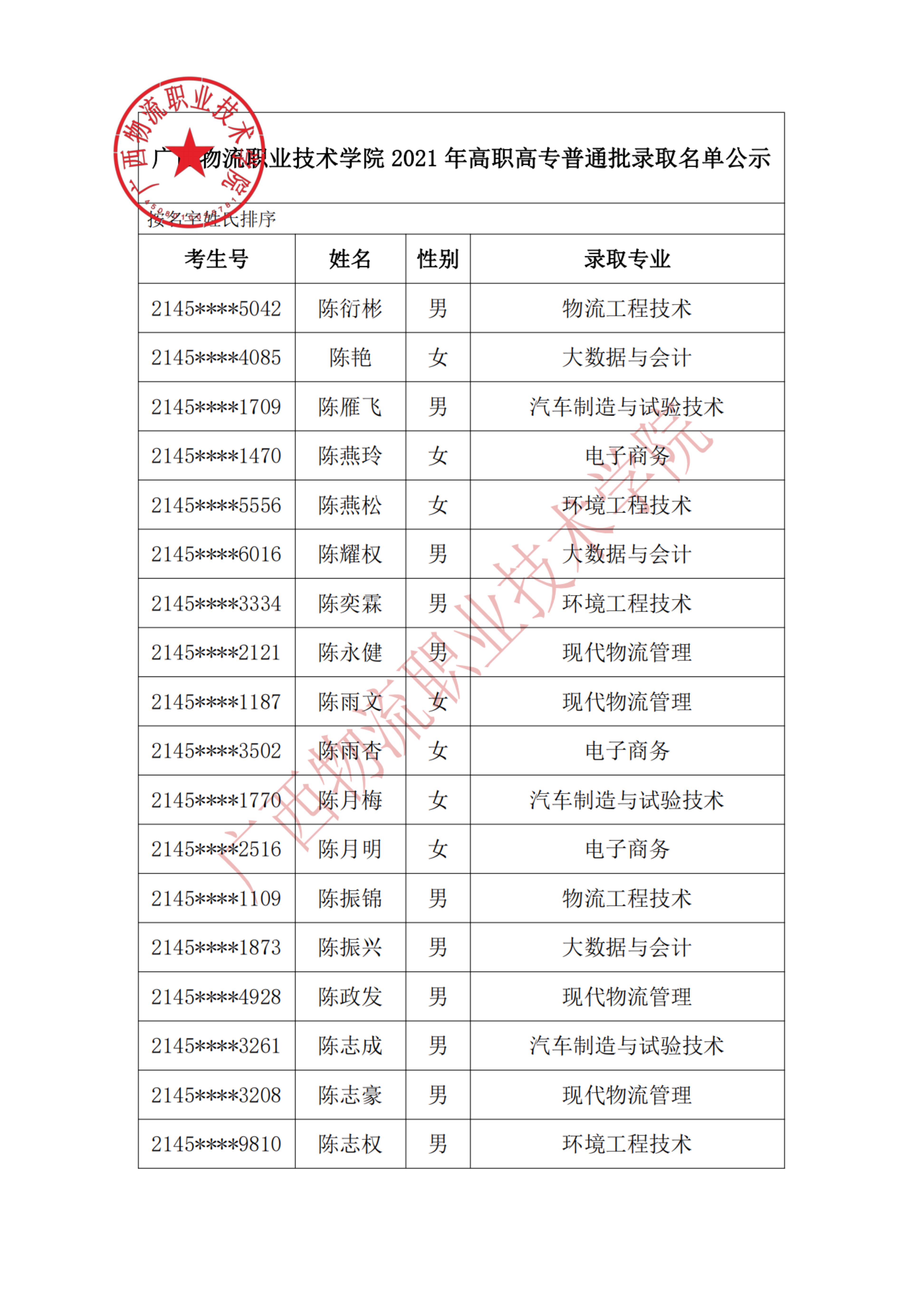 pp电子官方网站2021年高职高专普通批录取名单公示
