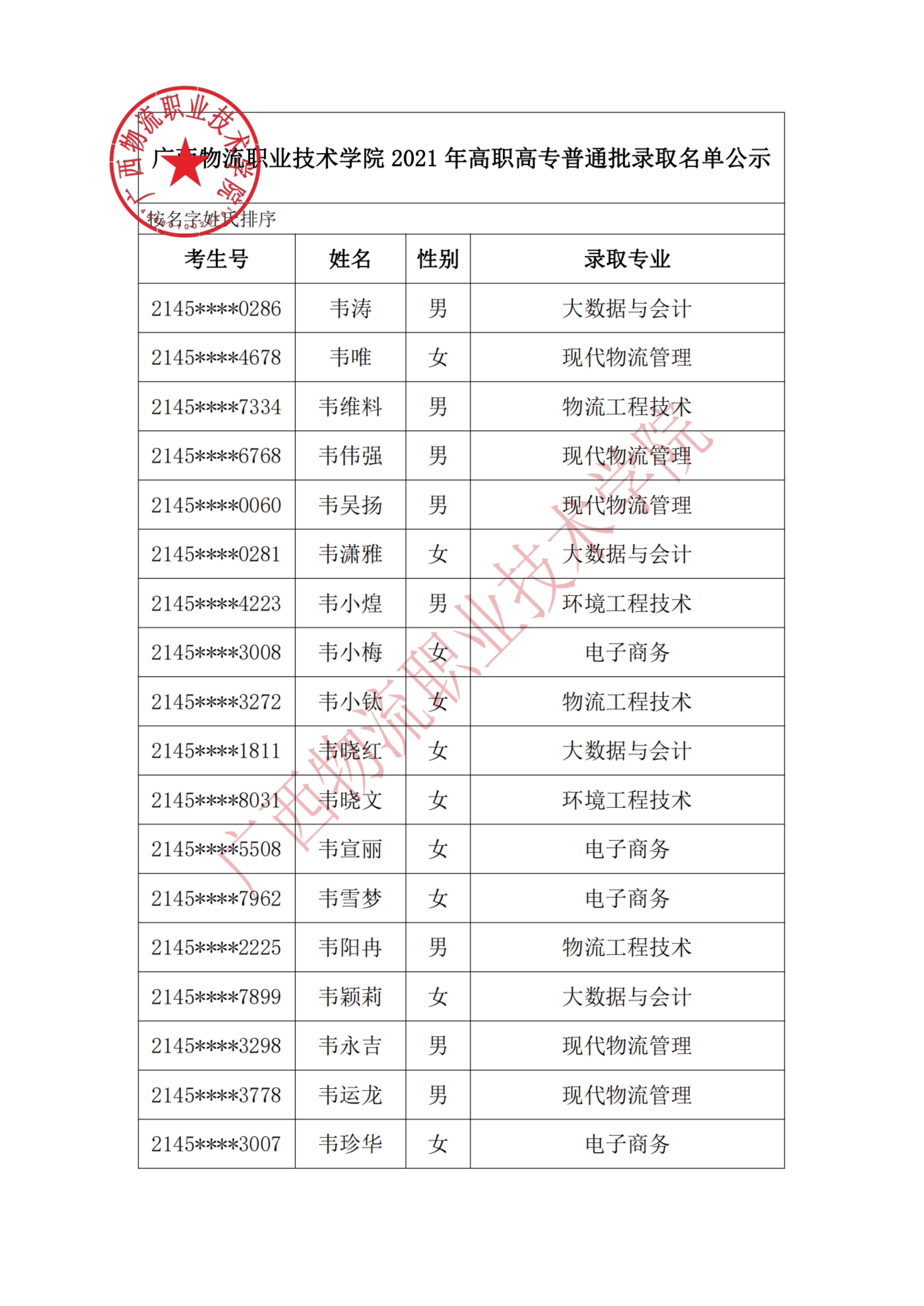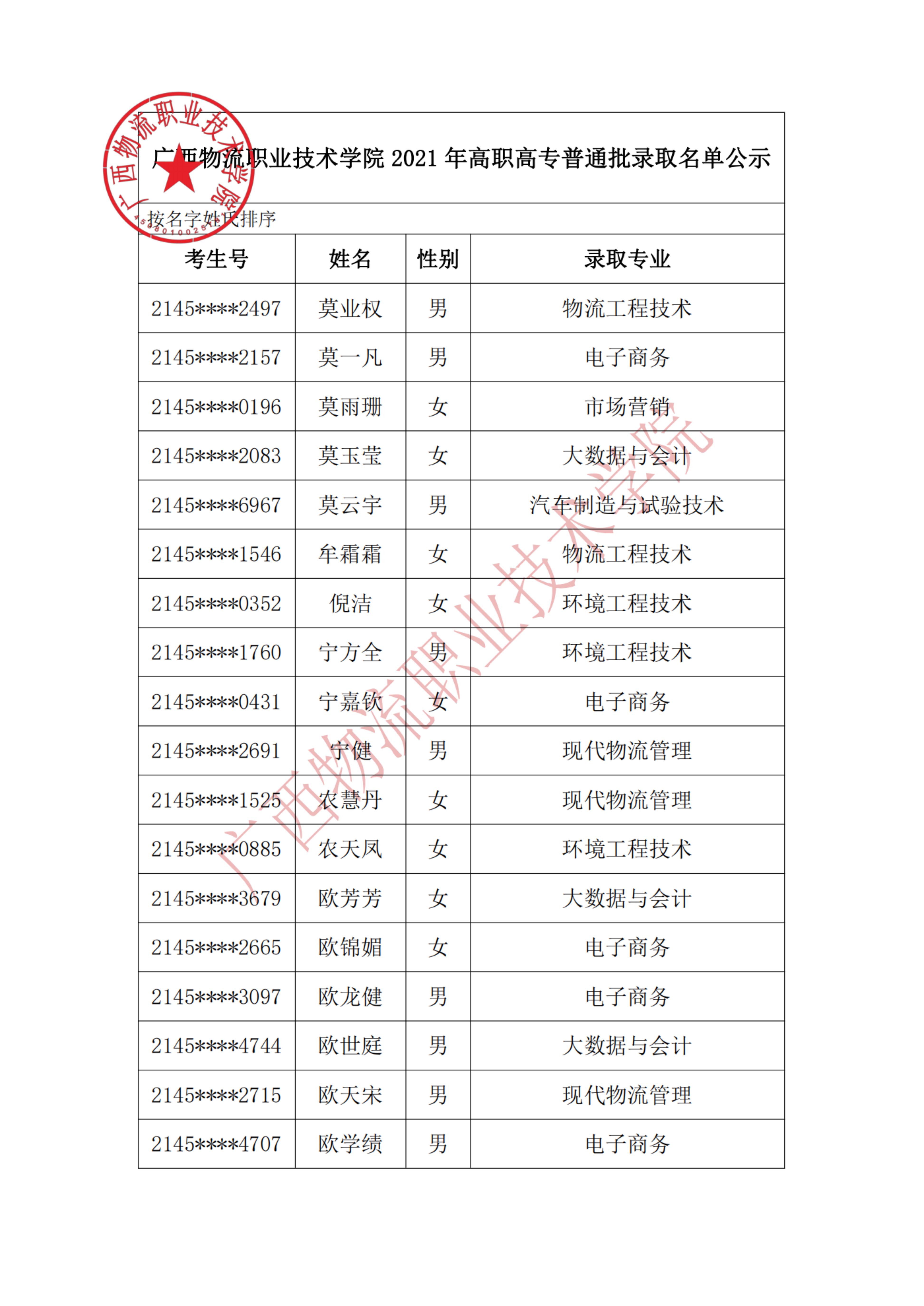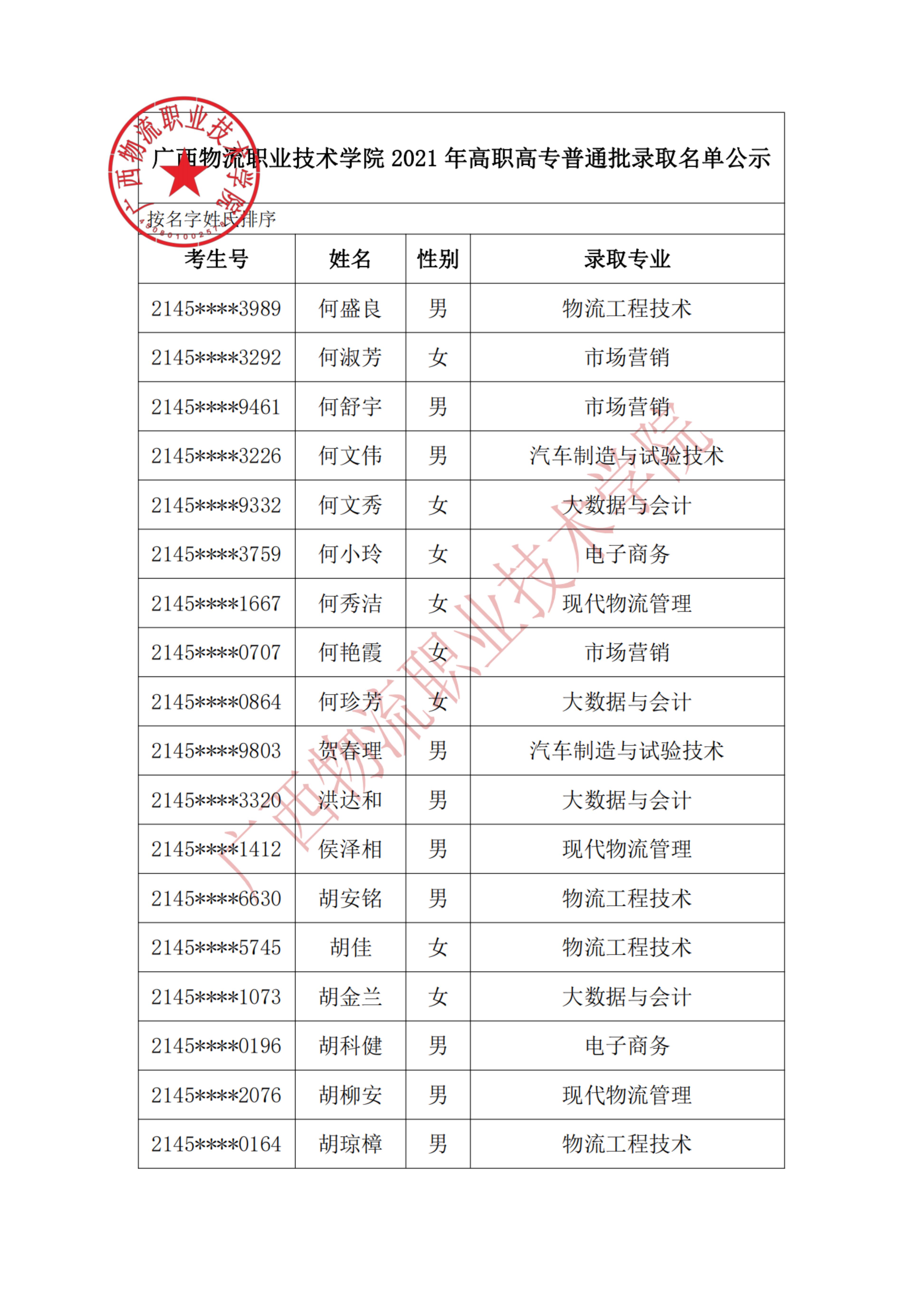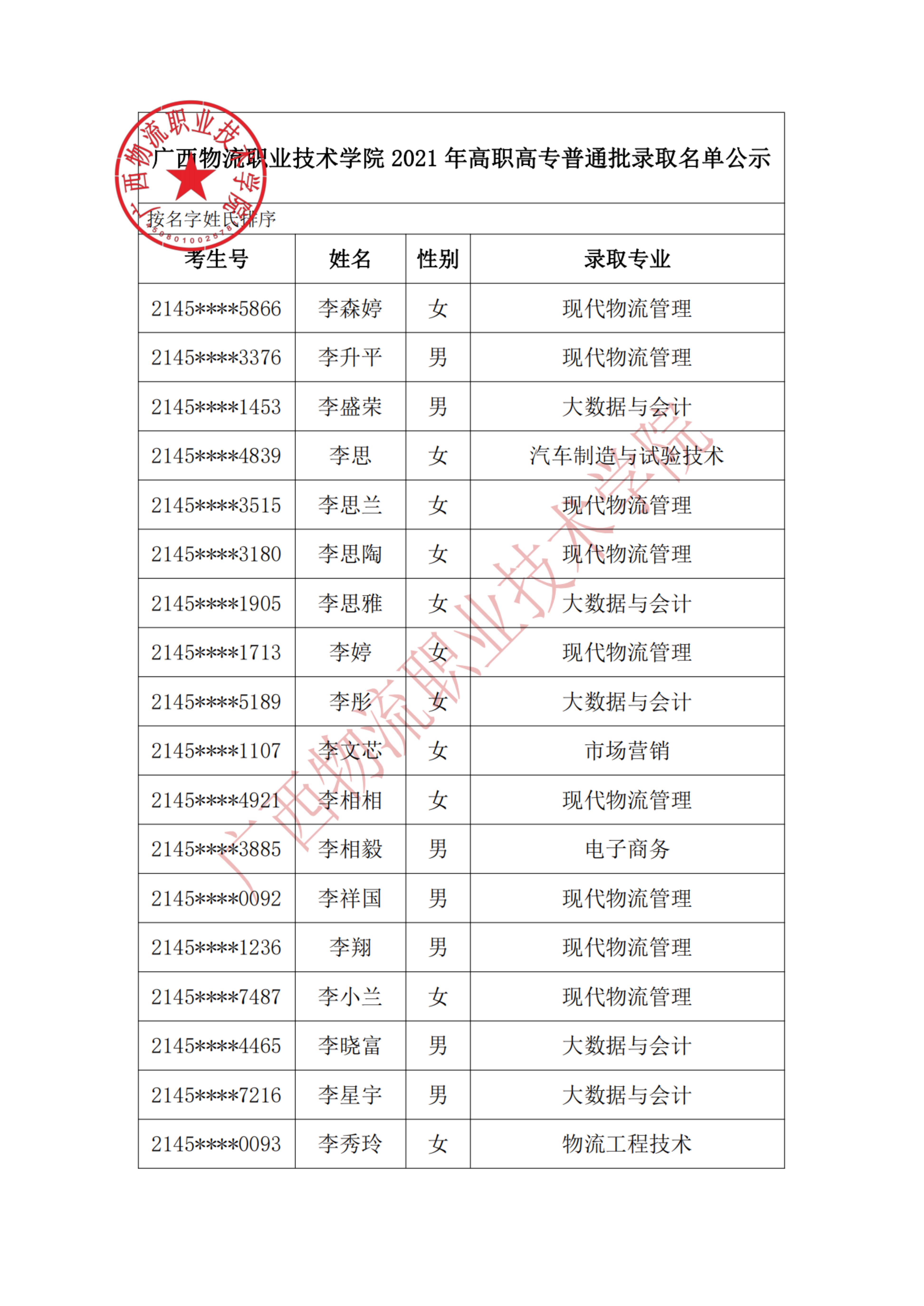 pp电子官方网站2021年高职高专普通批录取名单公示