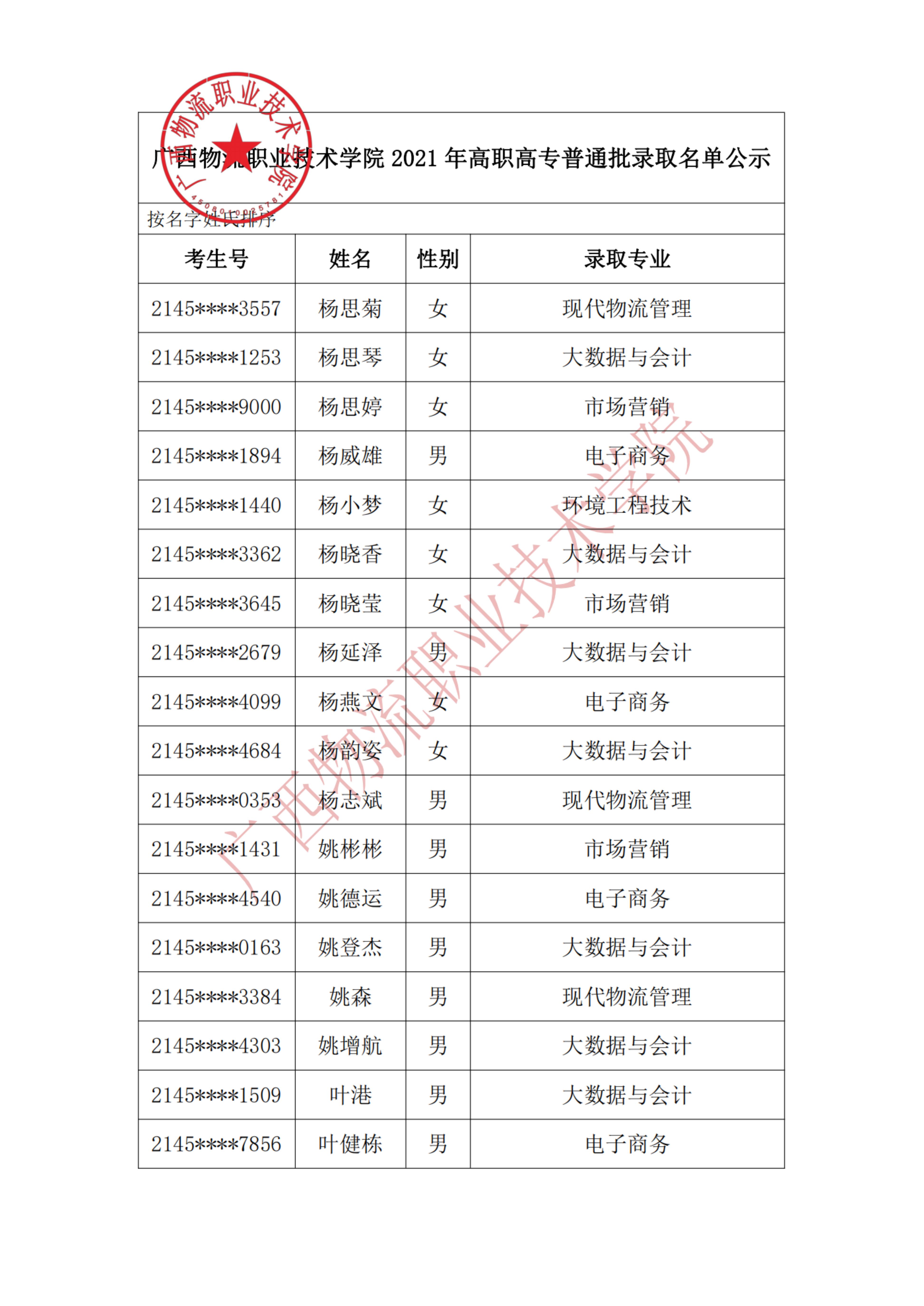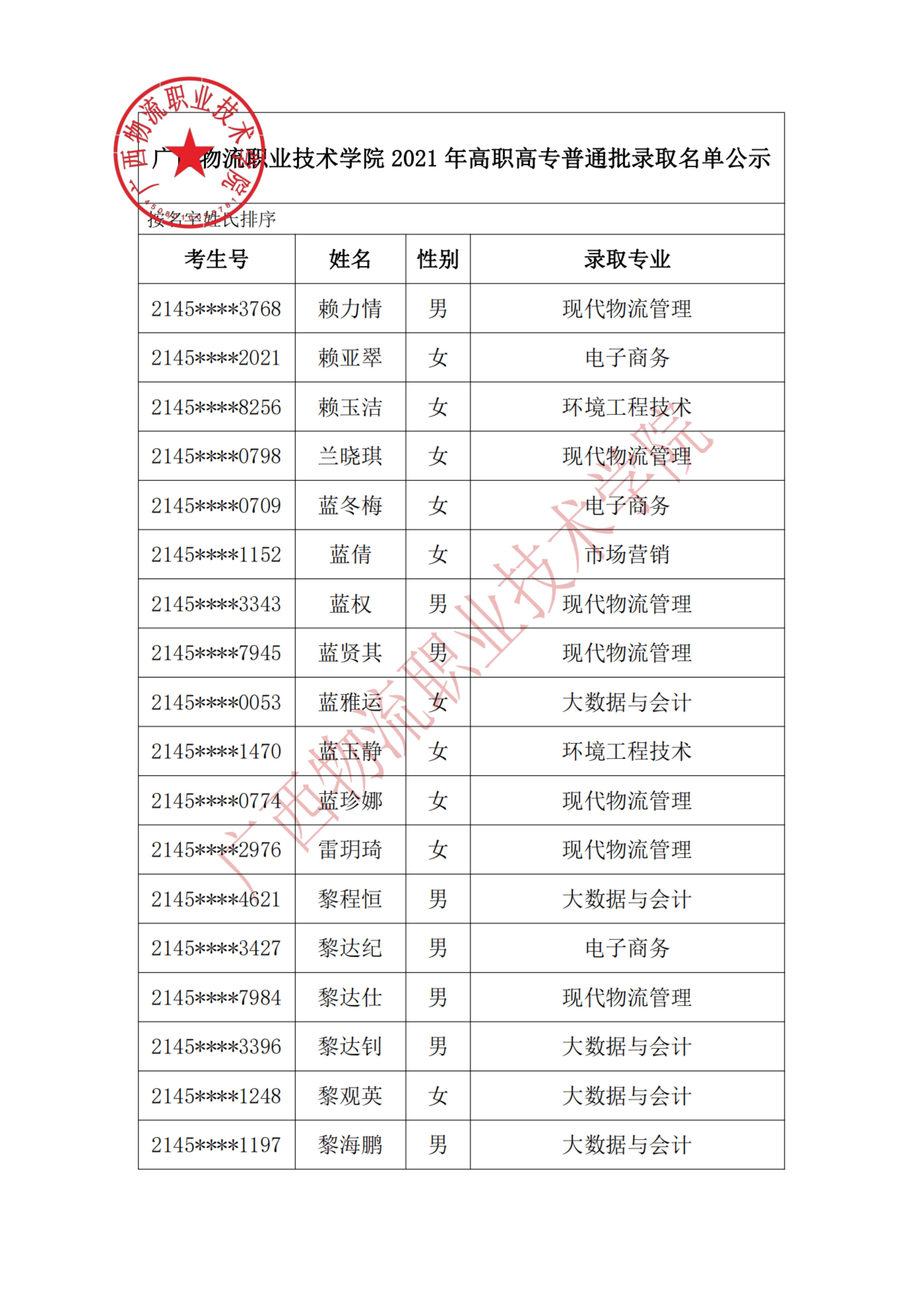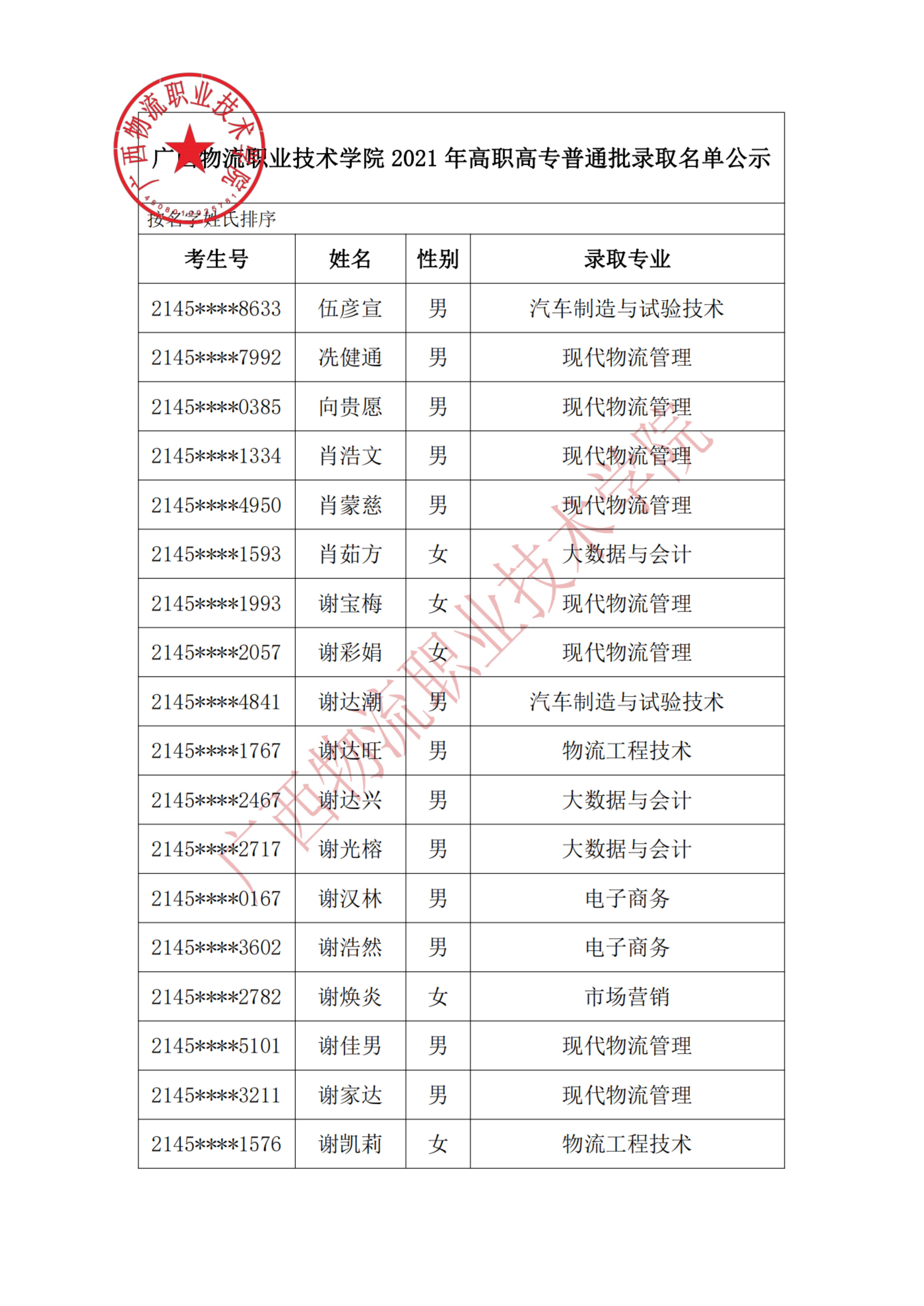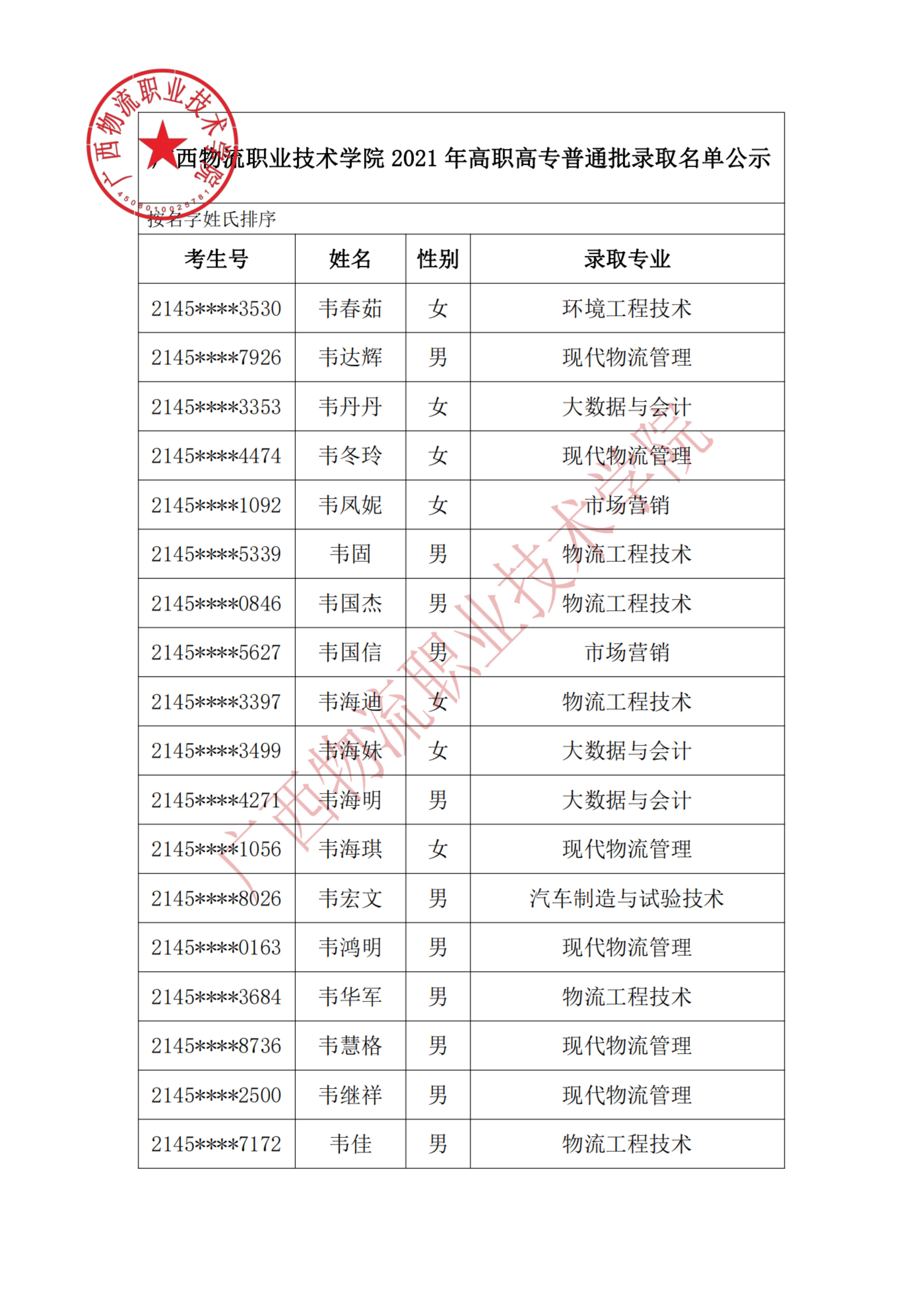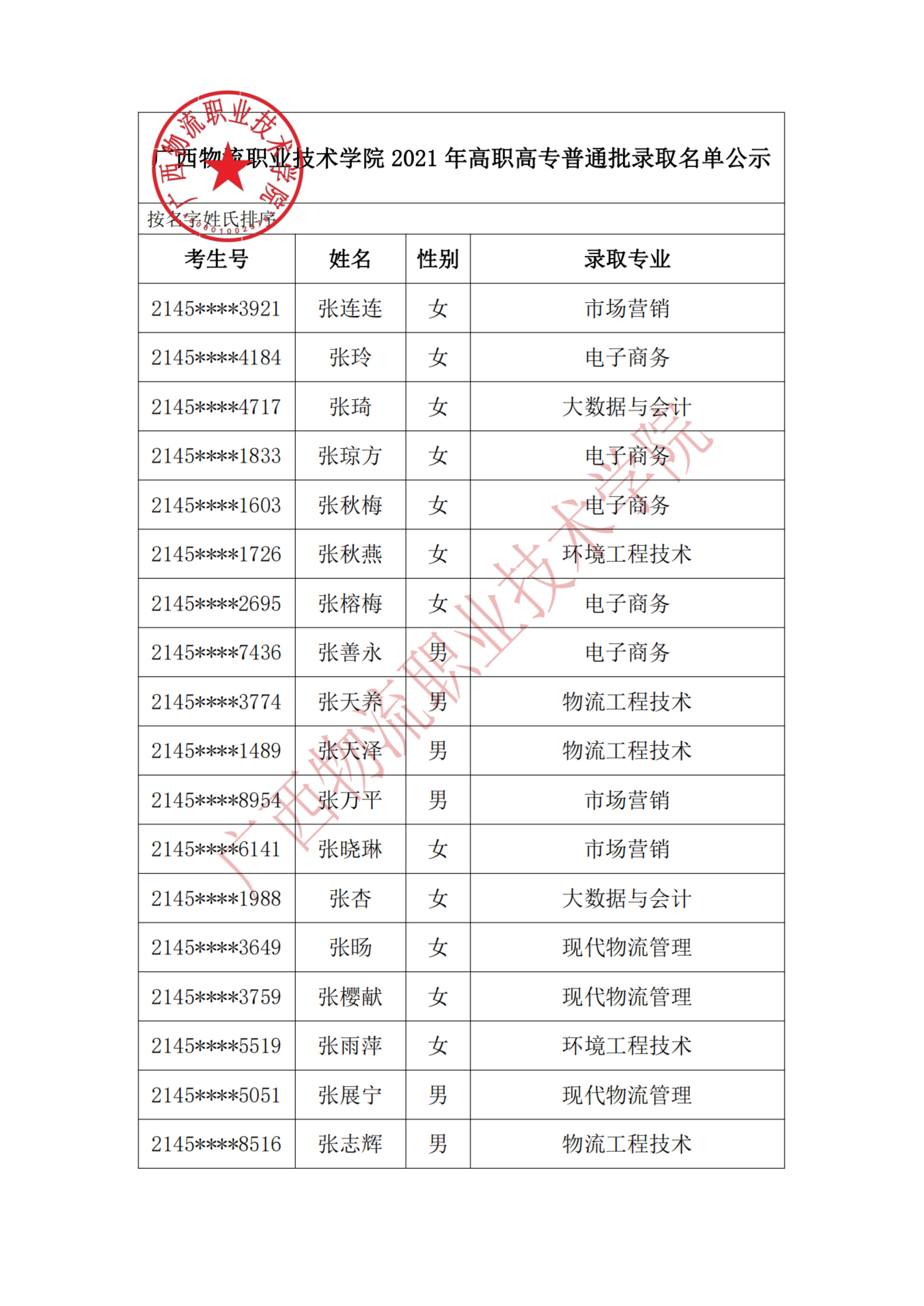 pp电子官方网站2021年高职高专普通批录取名单公示