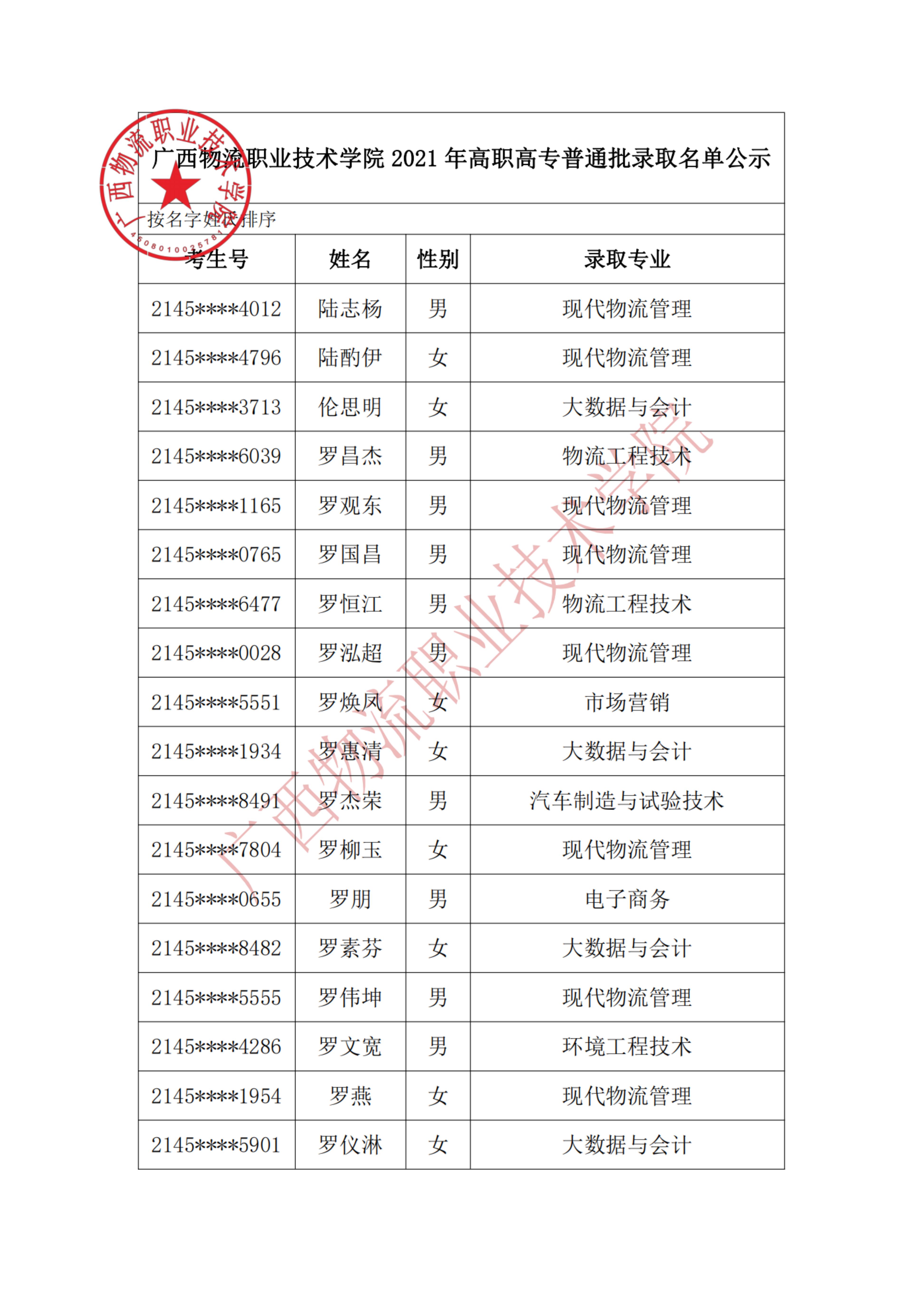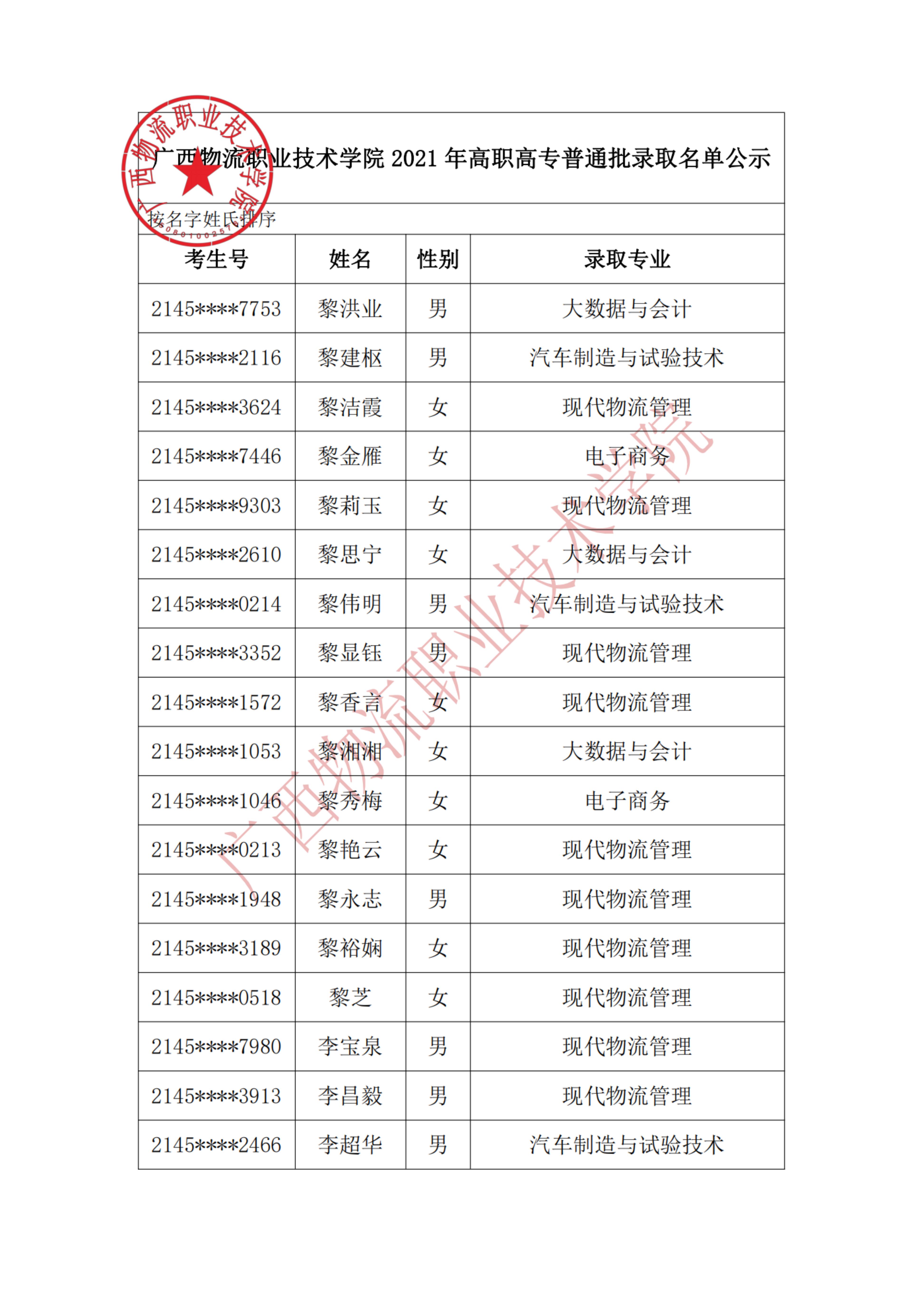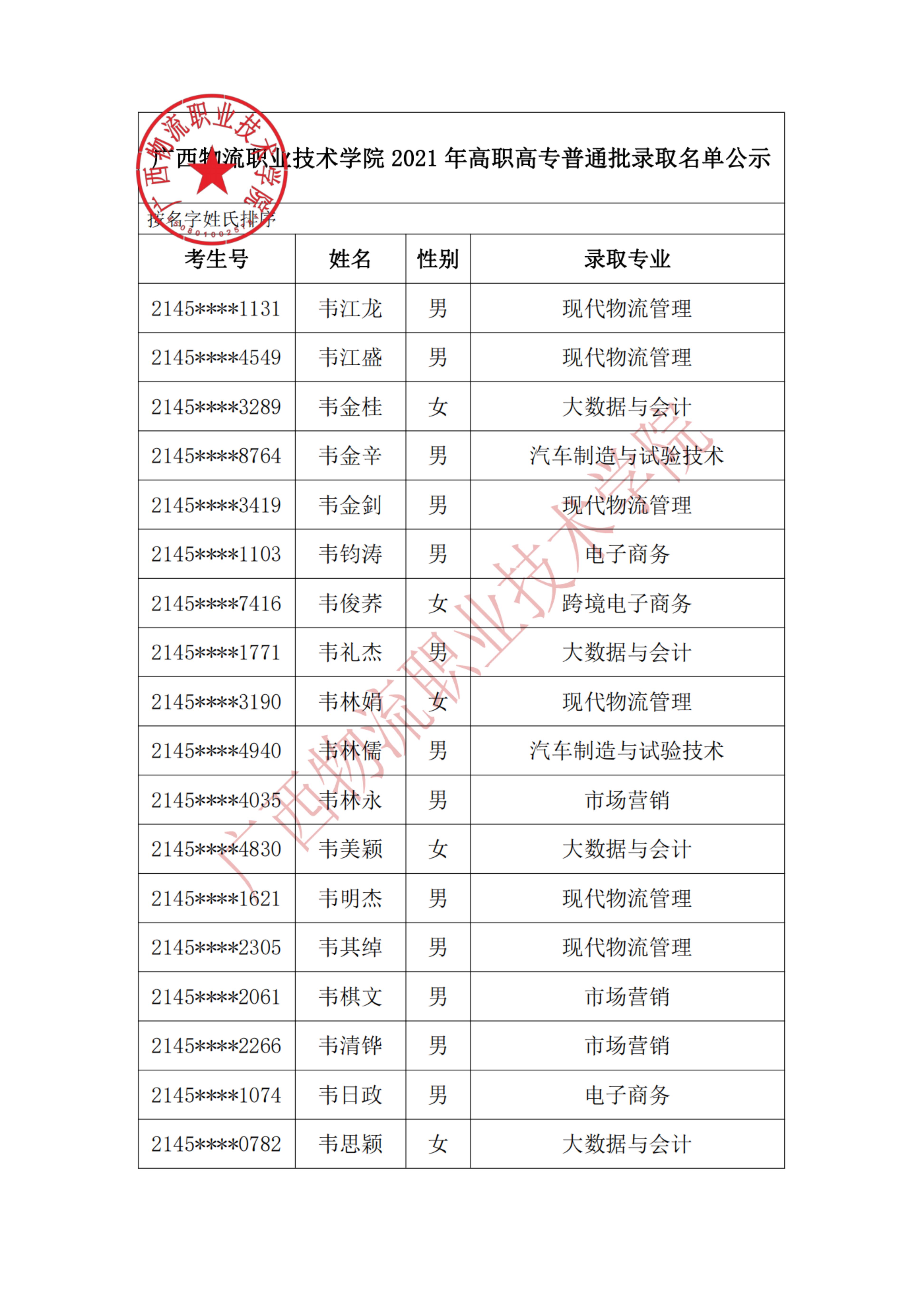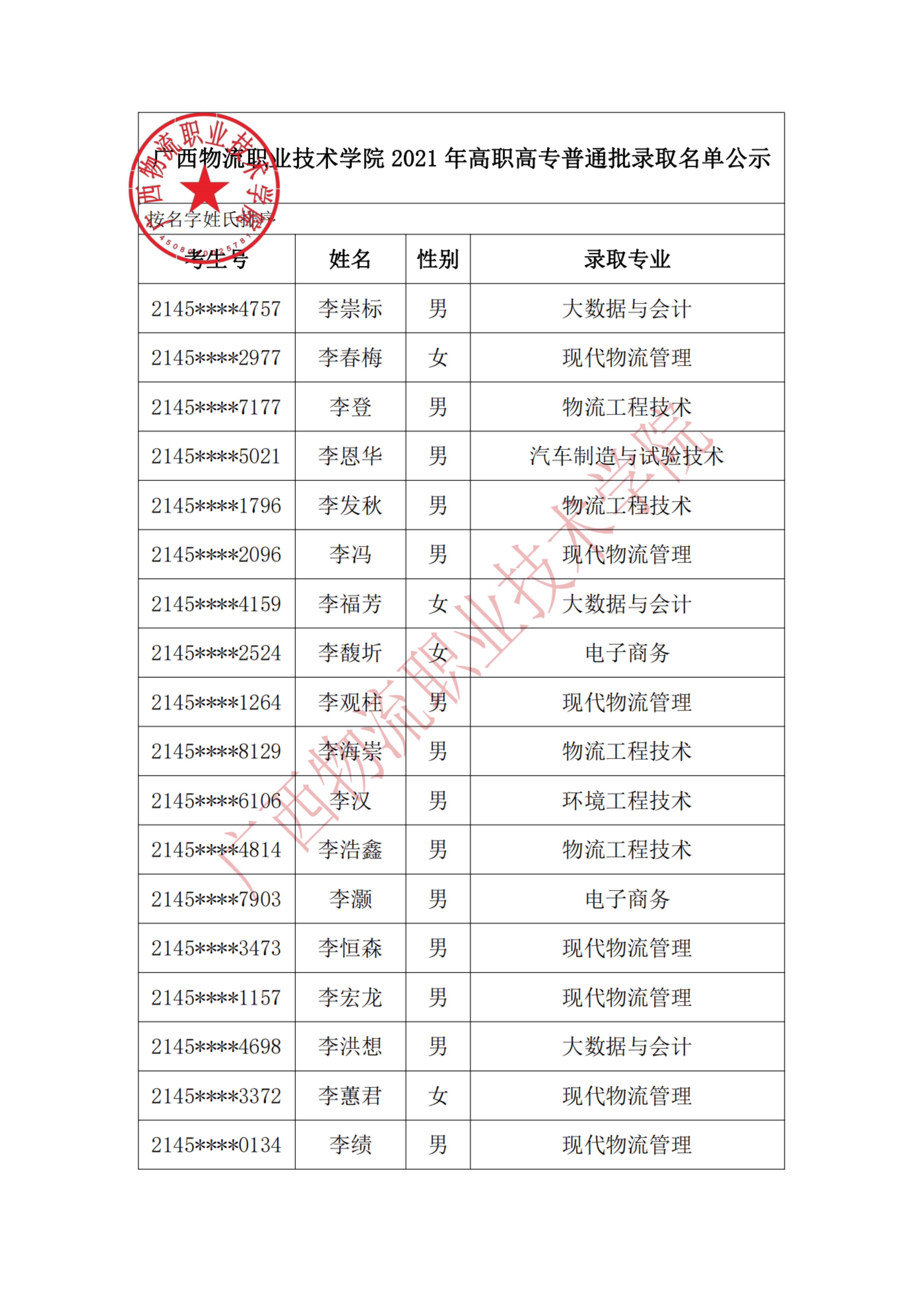 pp电子官方网站2021年高职高专普通批录取名单公示