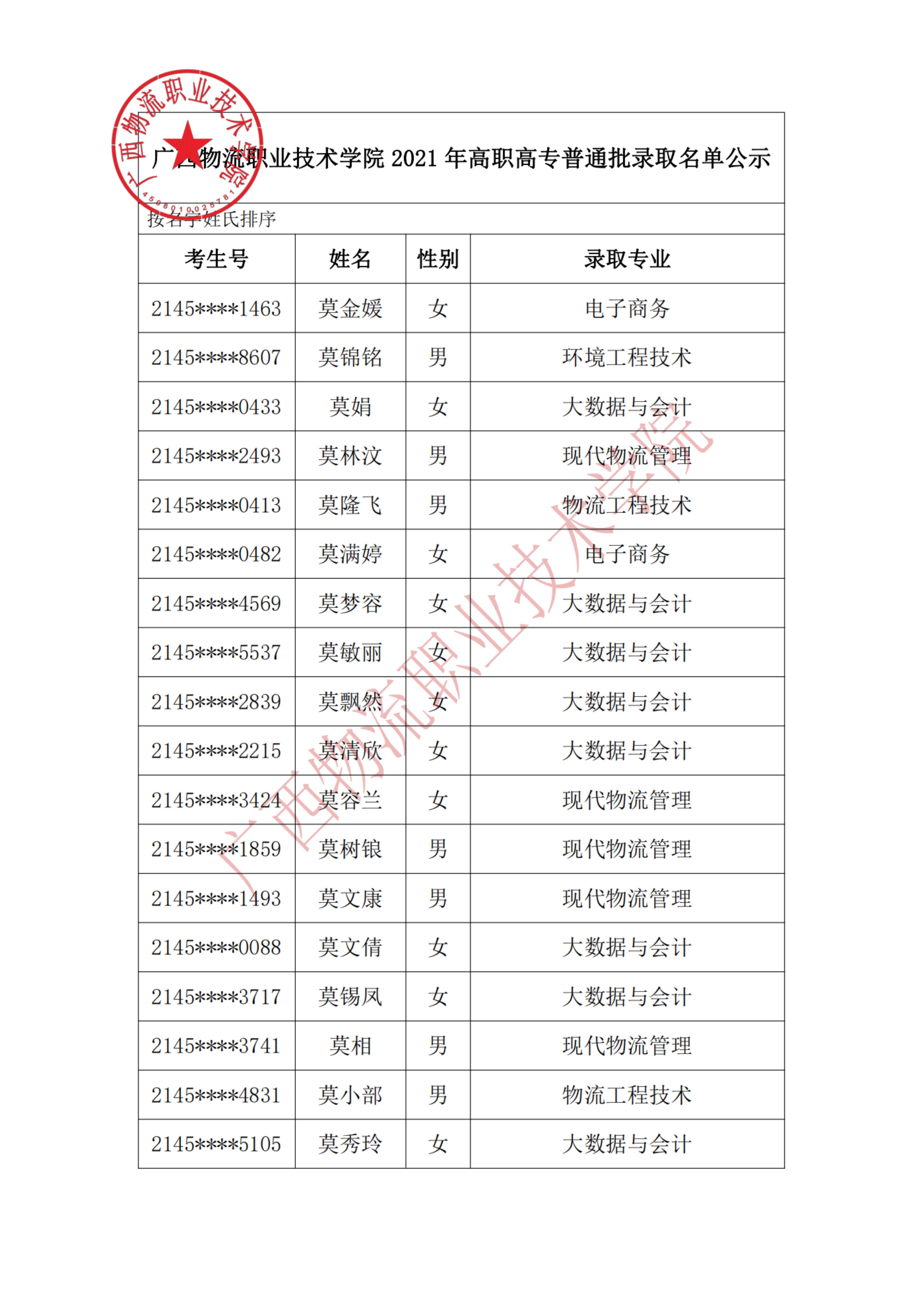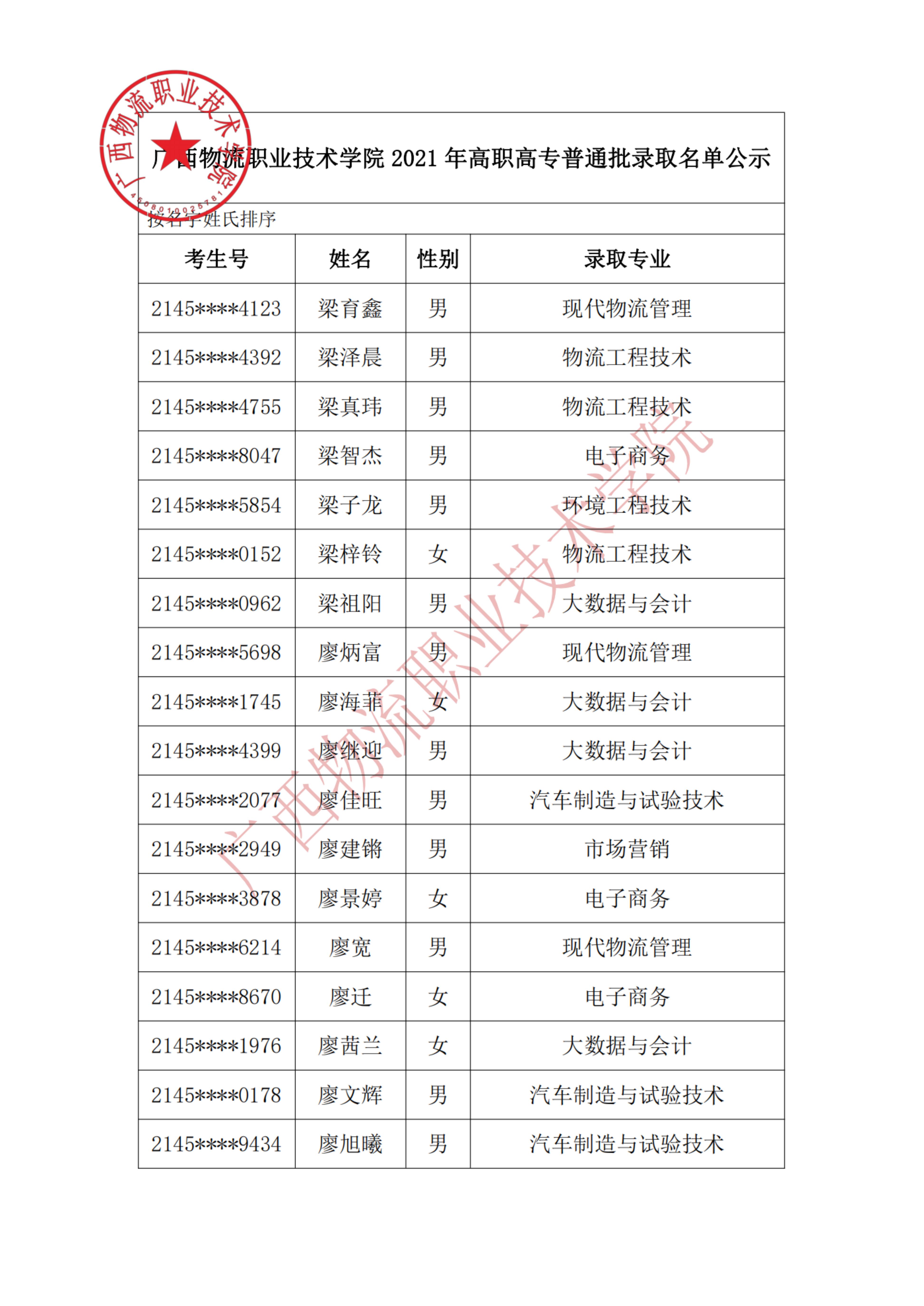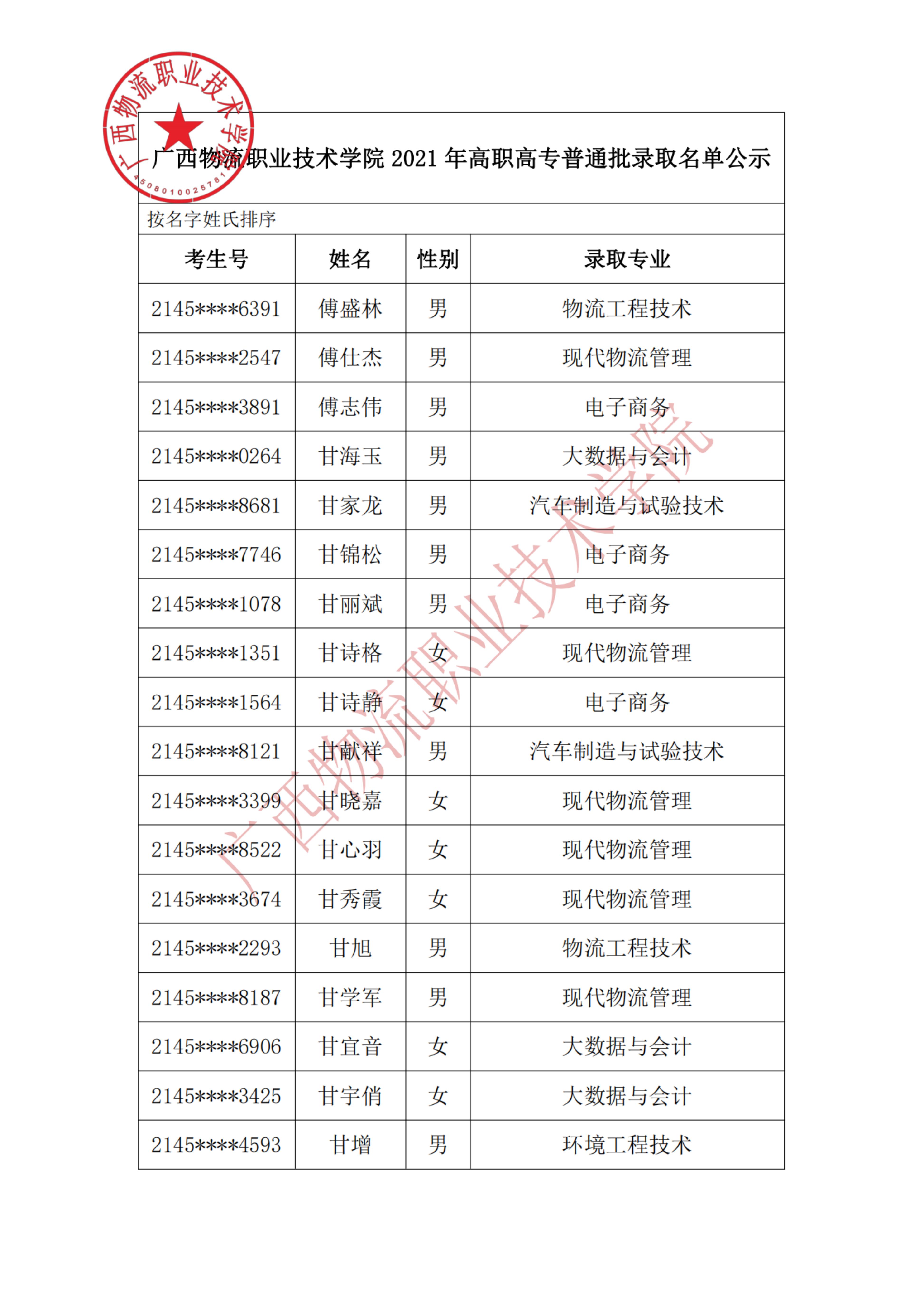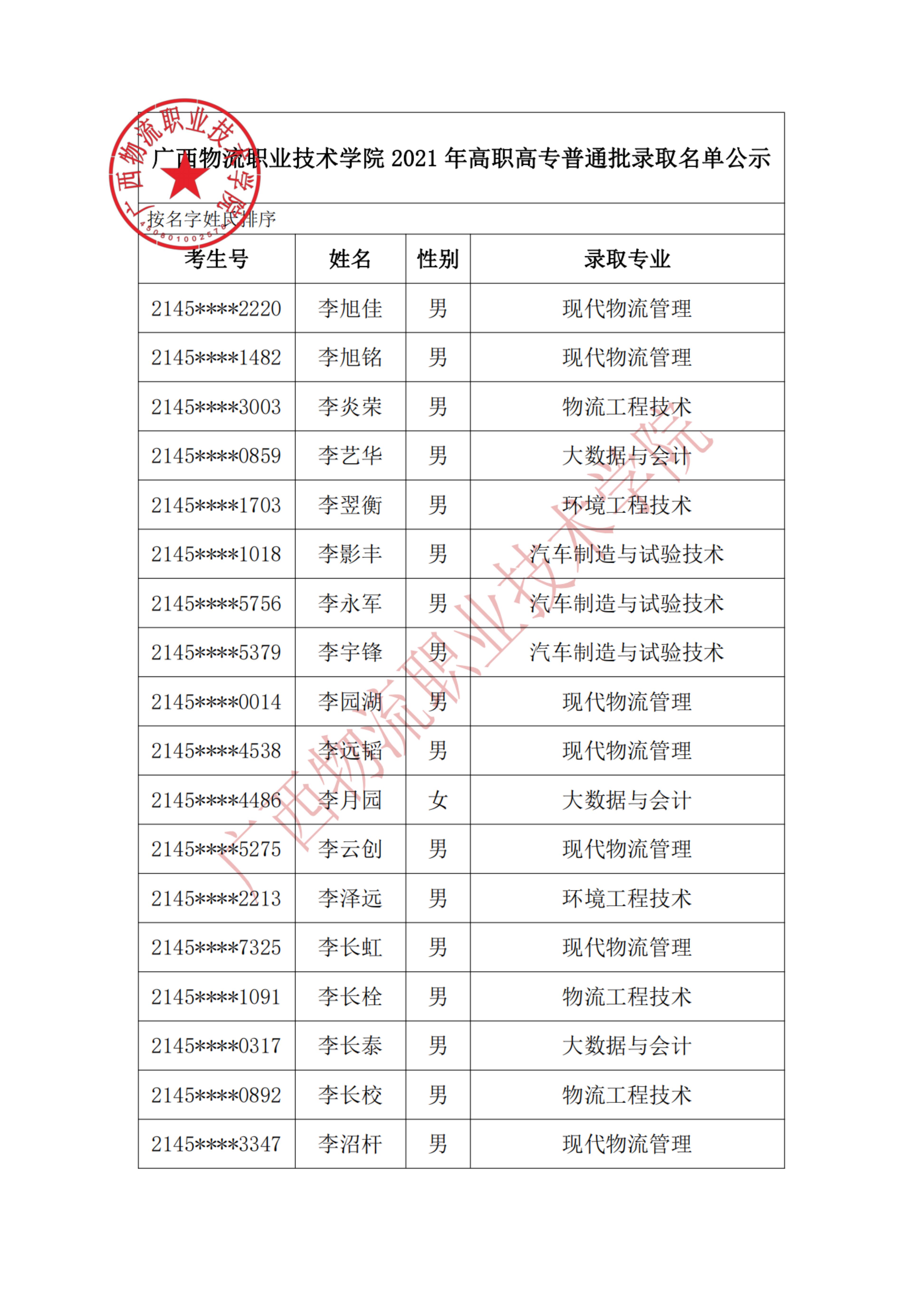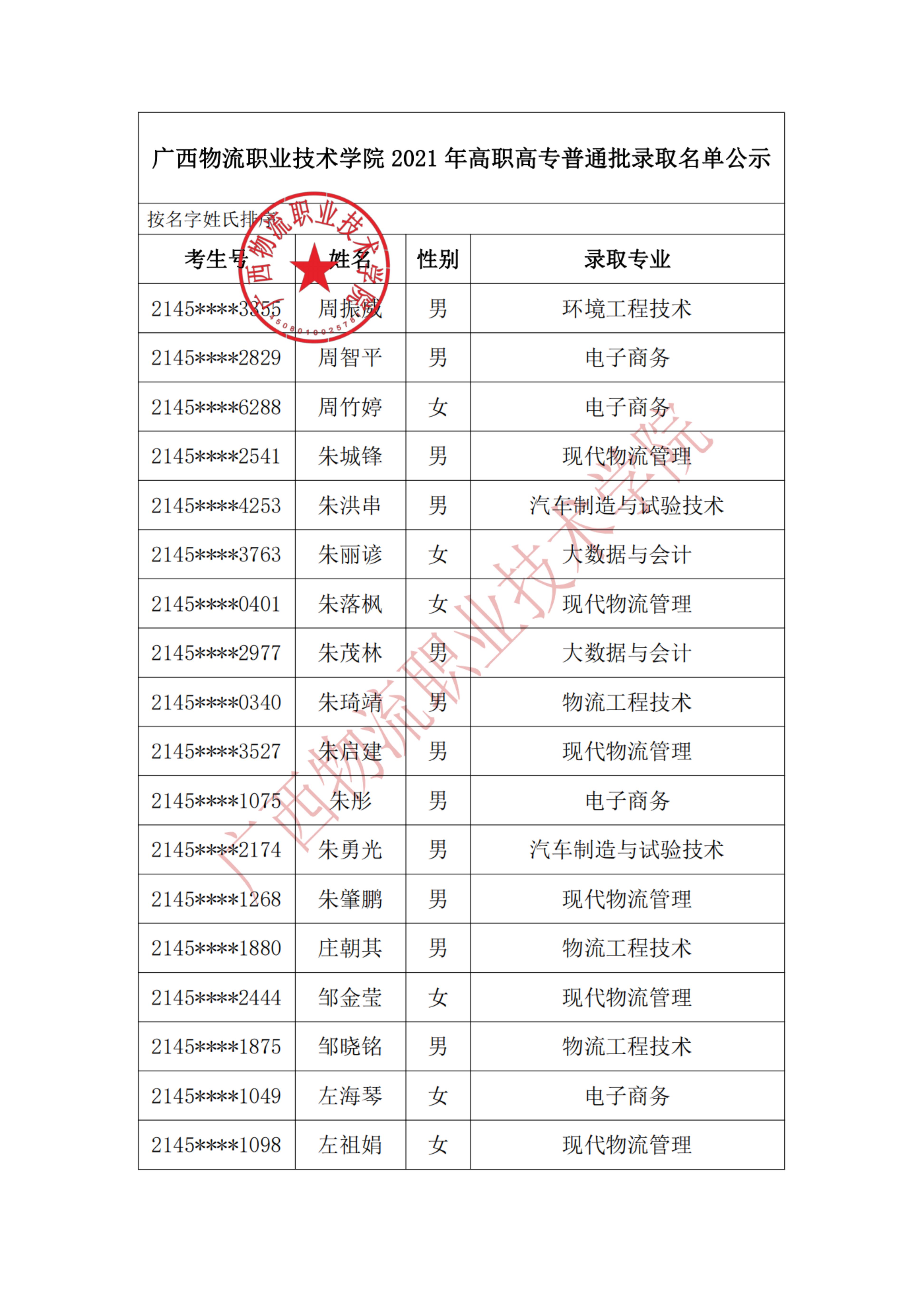 pp电子官方网站2021年高职高专普通批录取名单公示