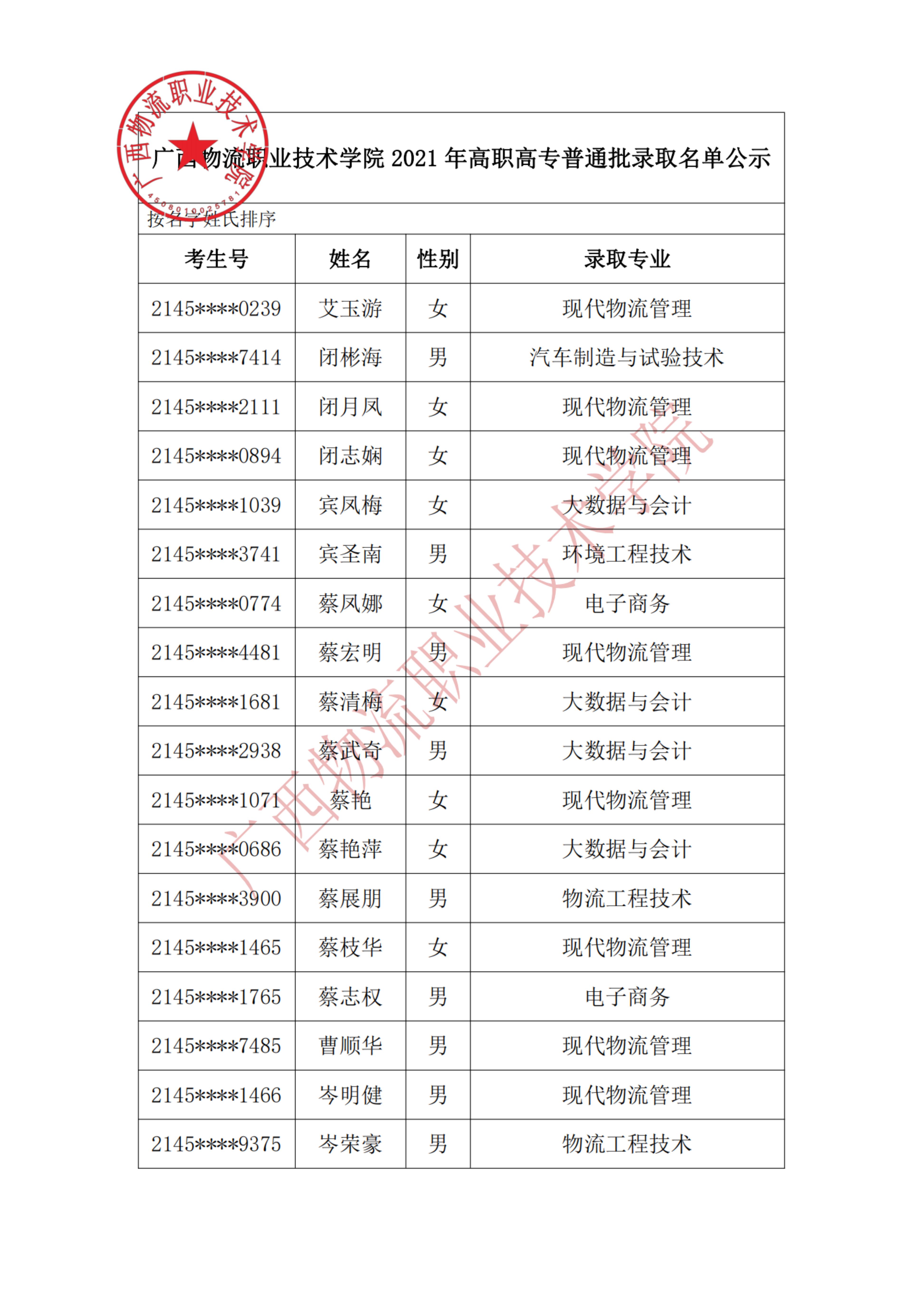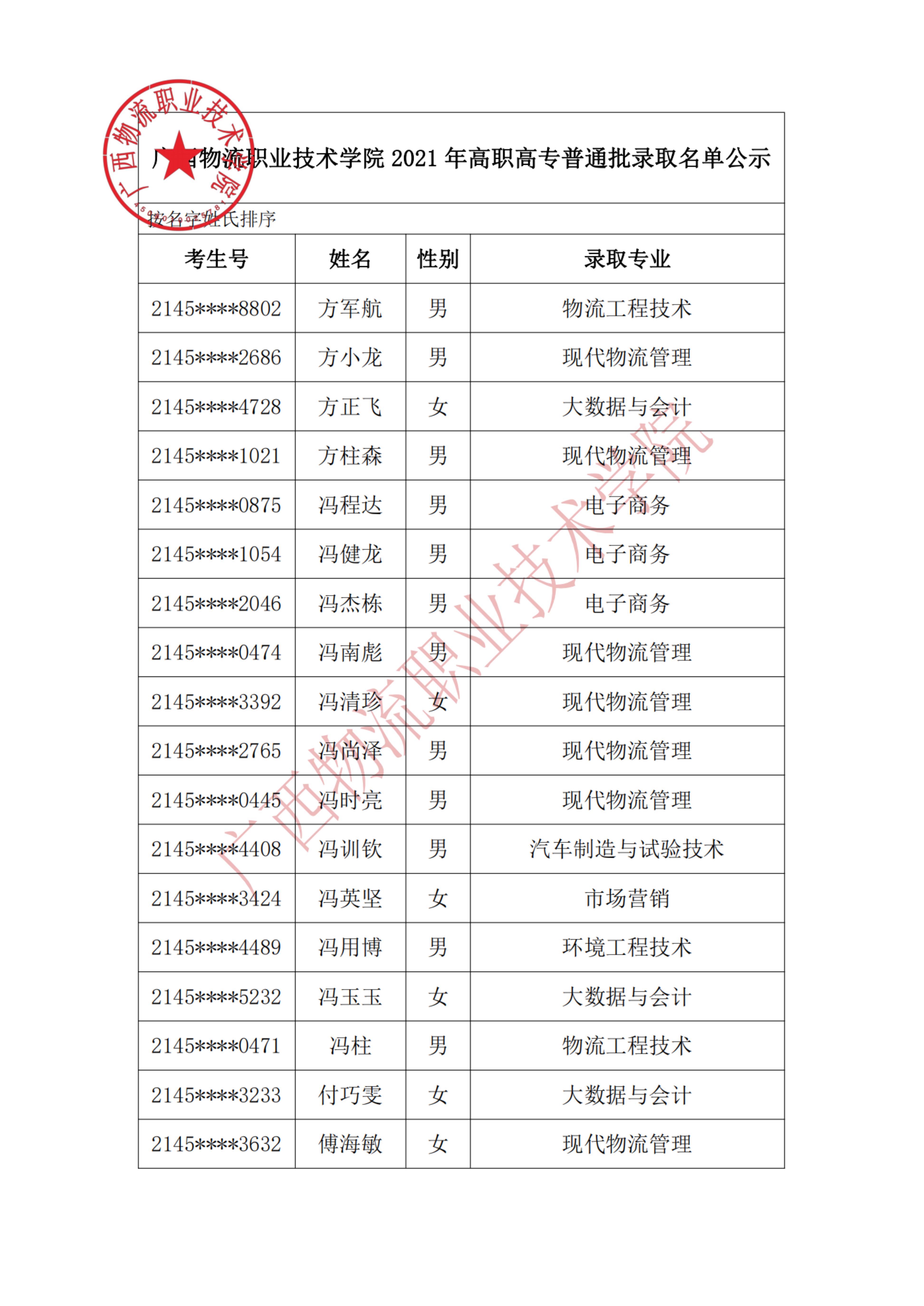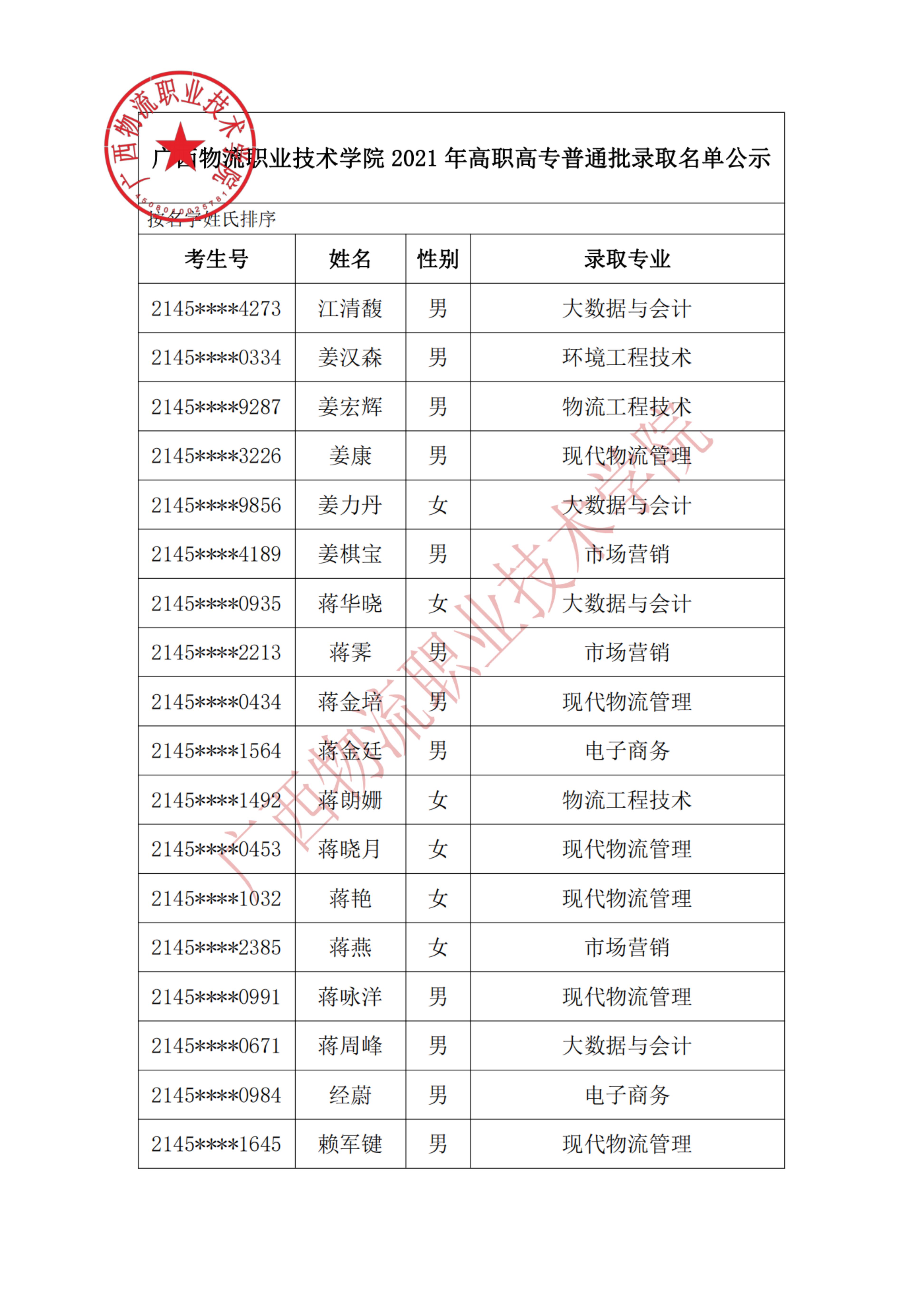 pp电子官方网站2021年高职高专普通批录取名单公示(源文链接)