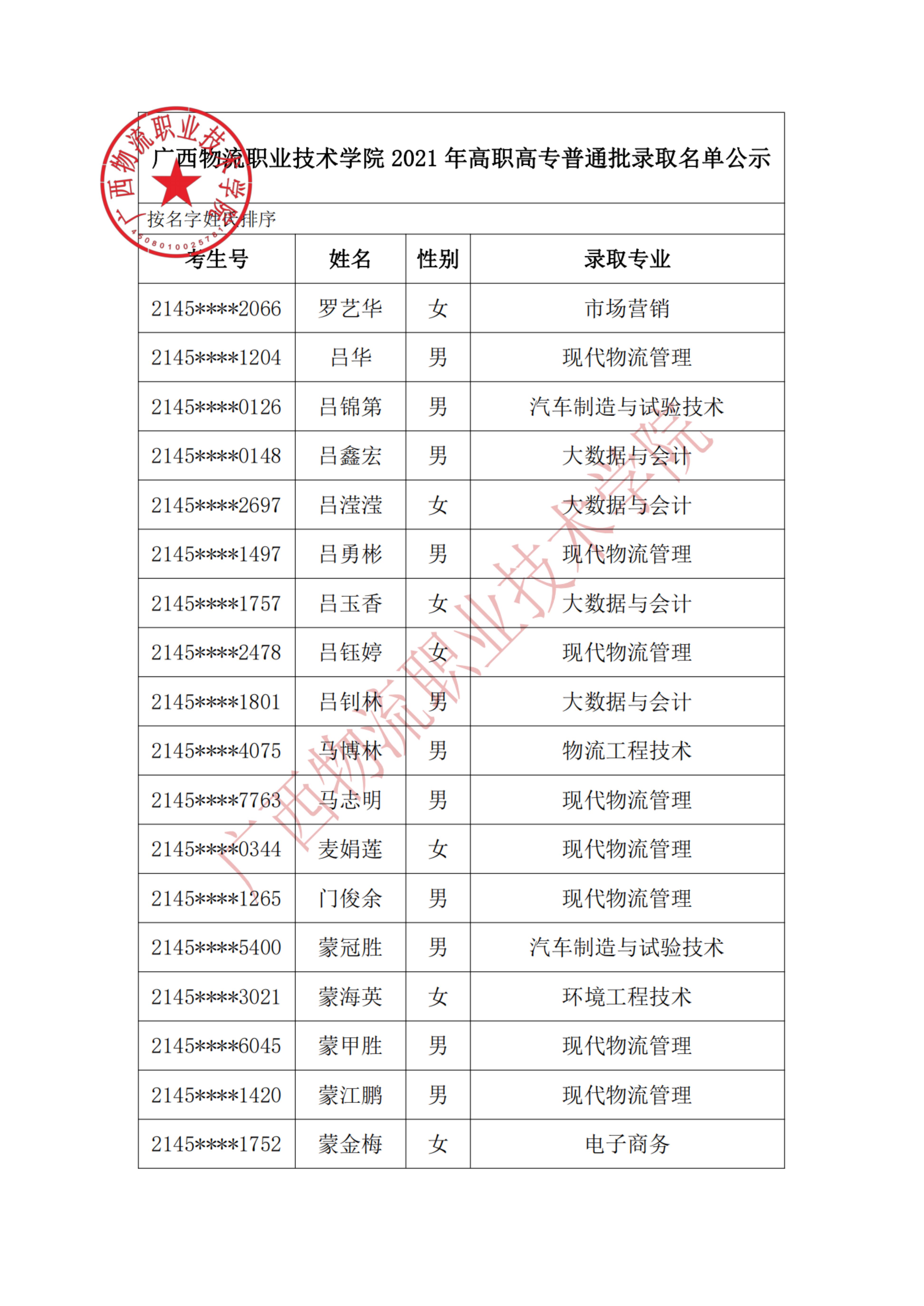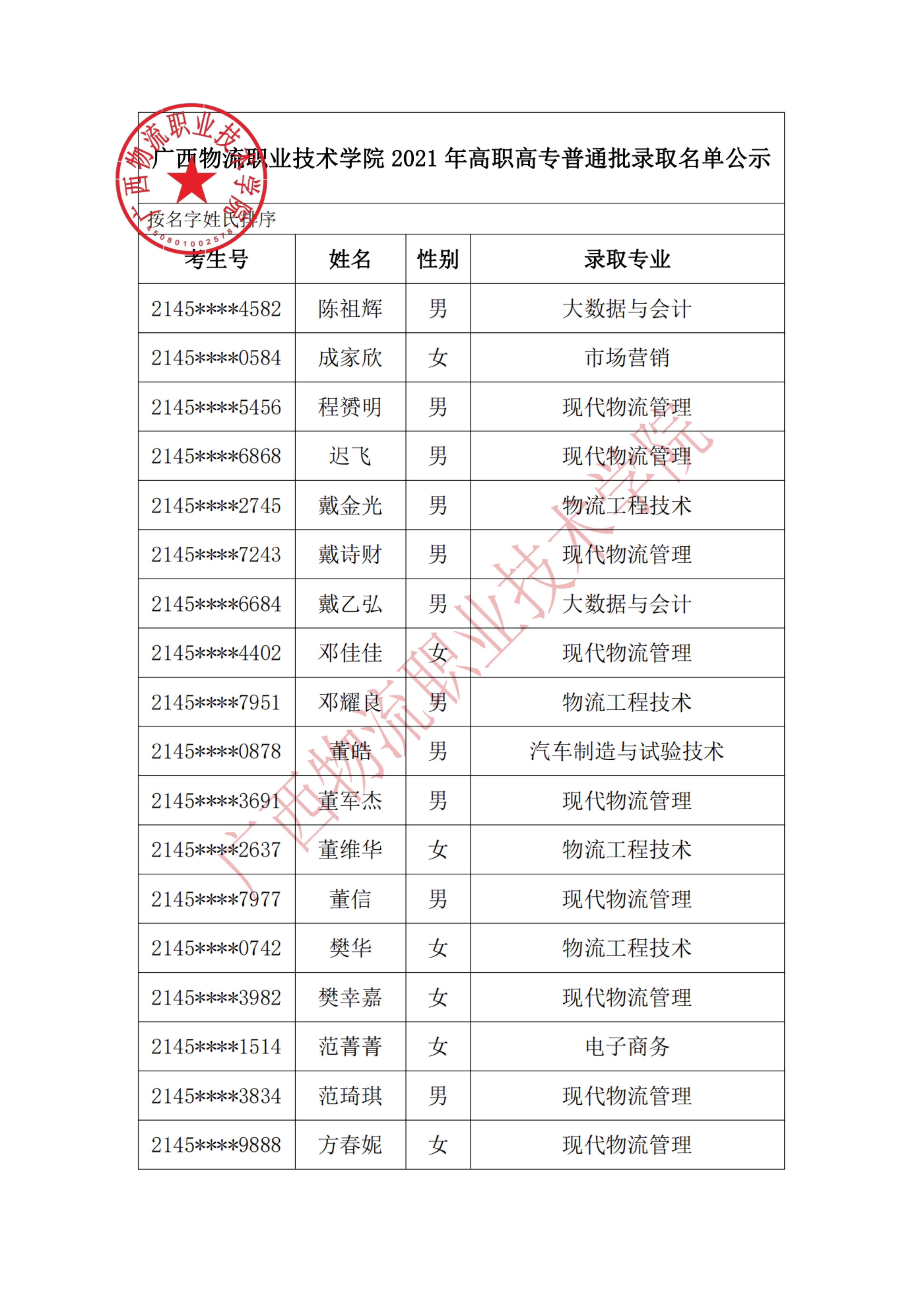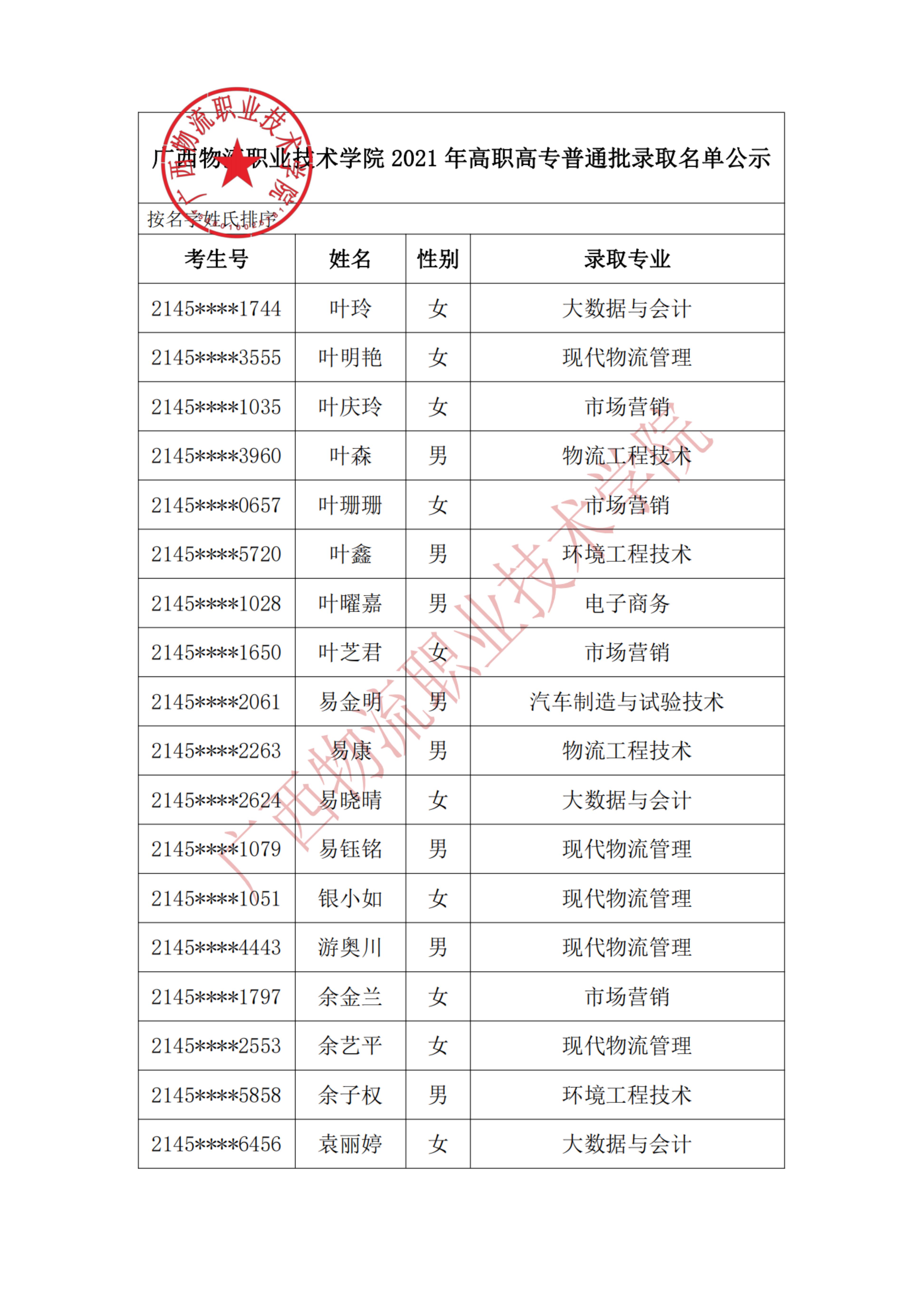 pp电子官方网站2021年高职高专普通批录取名单公示(源文链接)