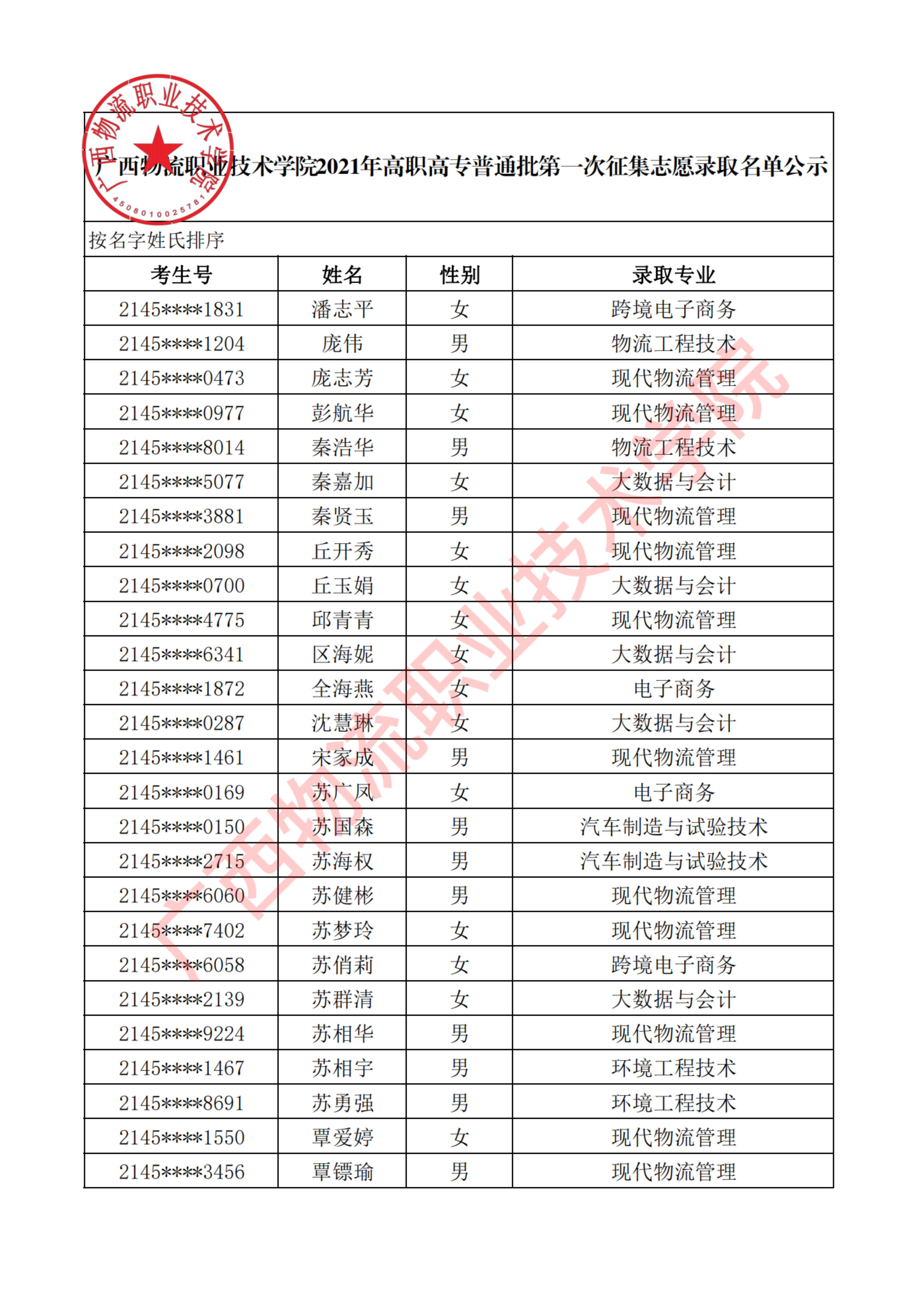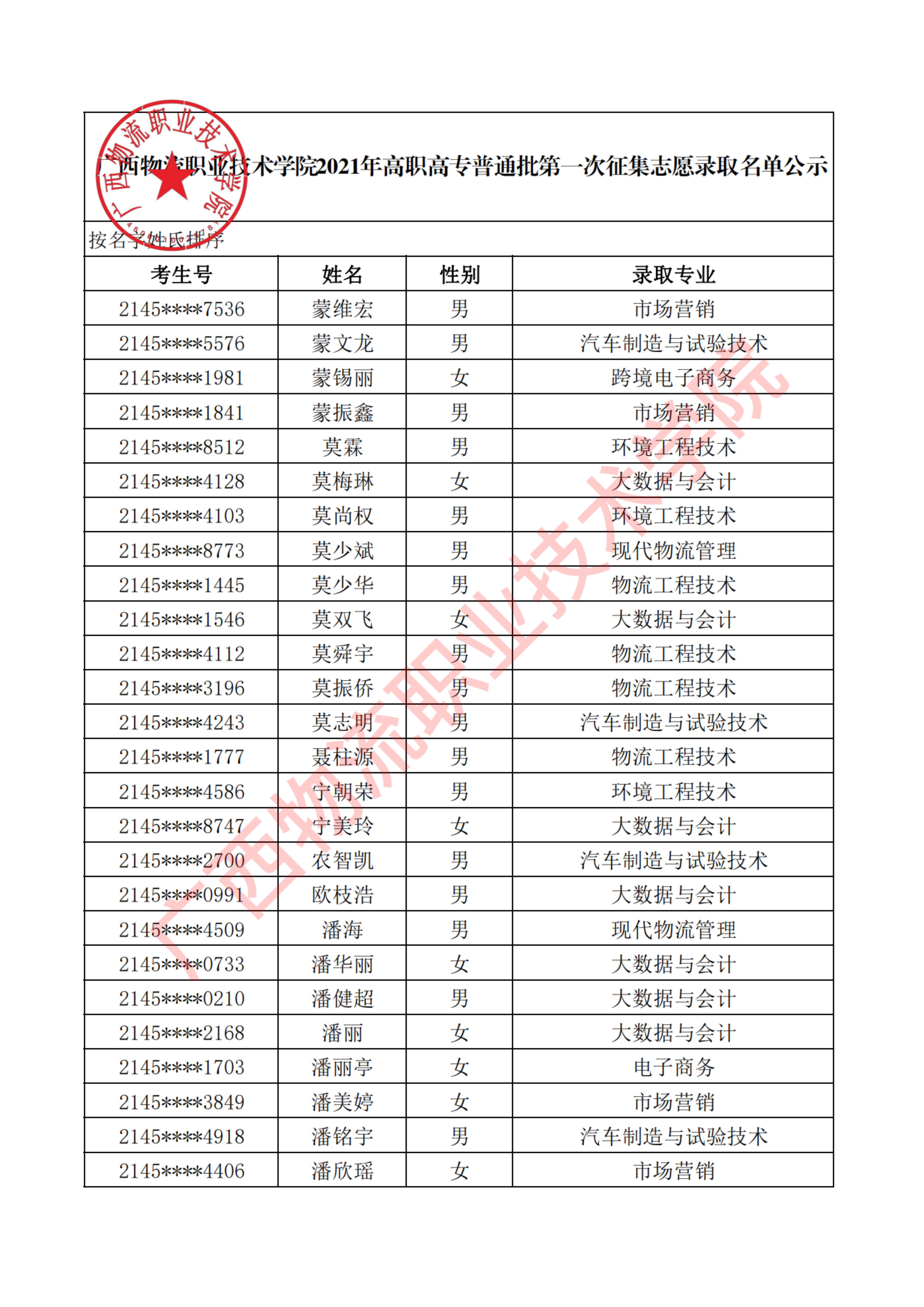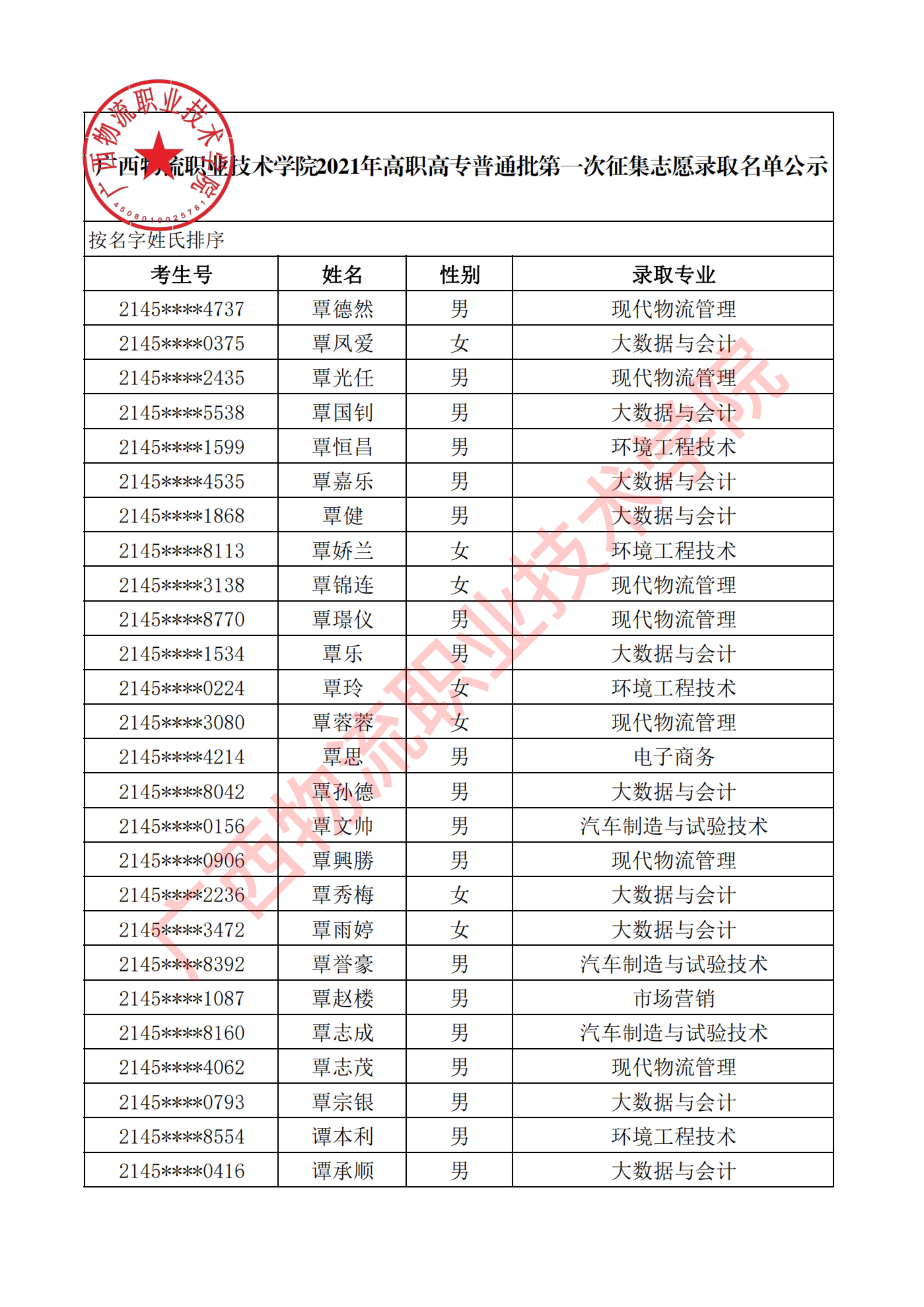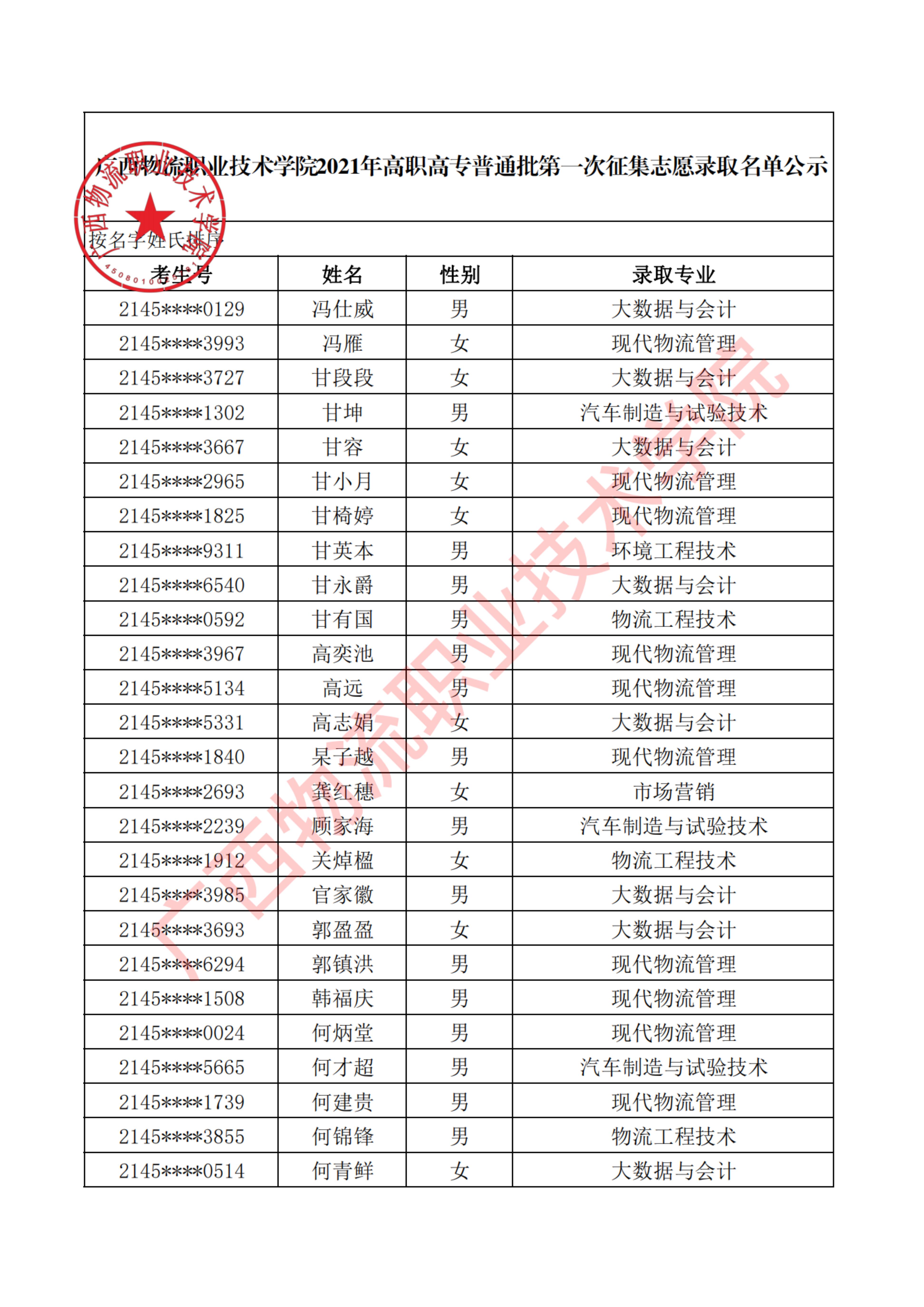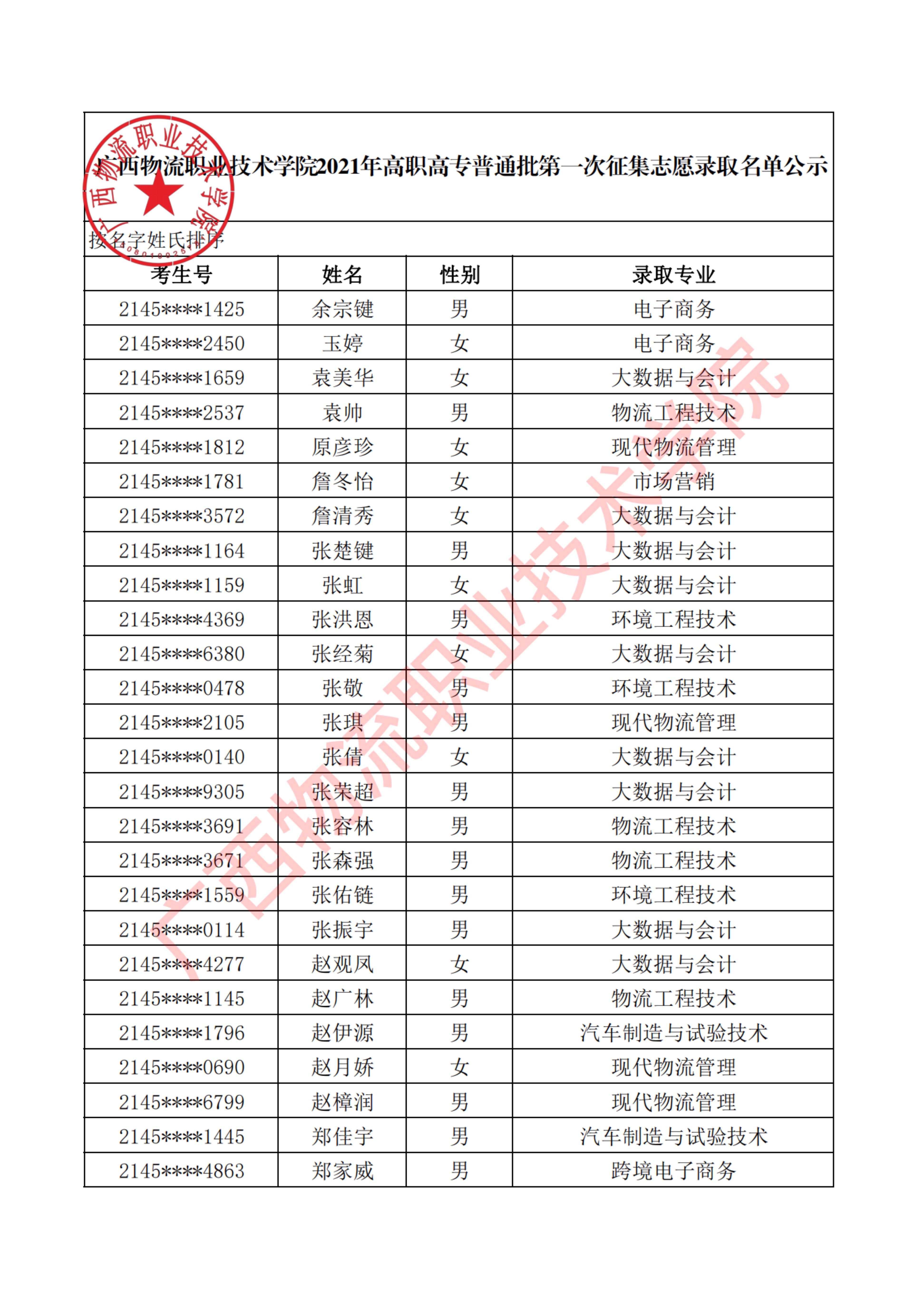 pp电子官方网站2021年高职高专普通批第一次征集志愿录取名单公示