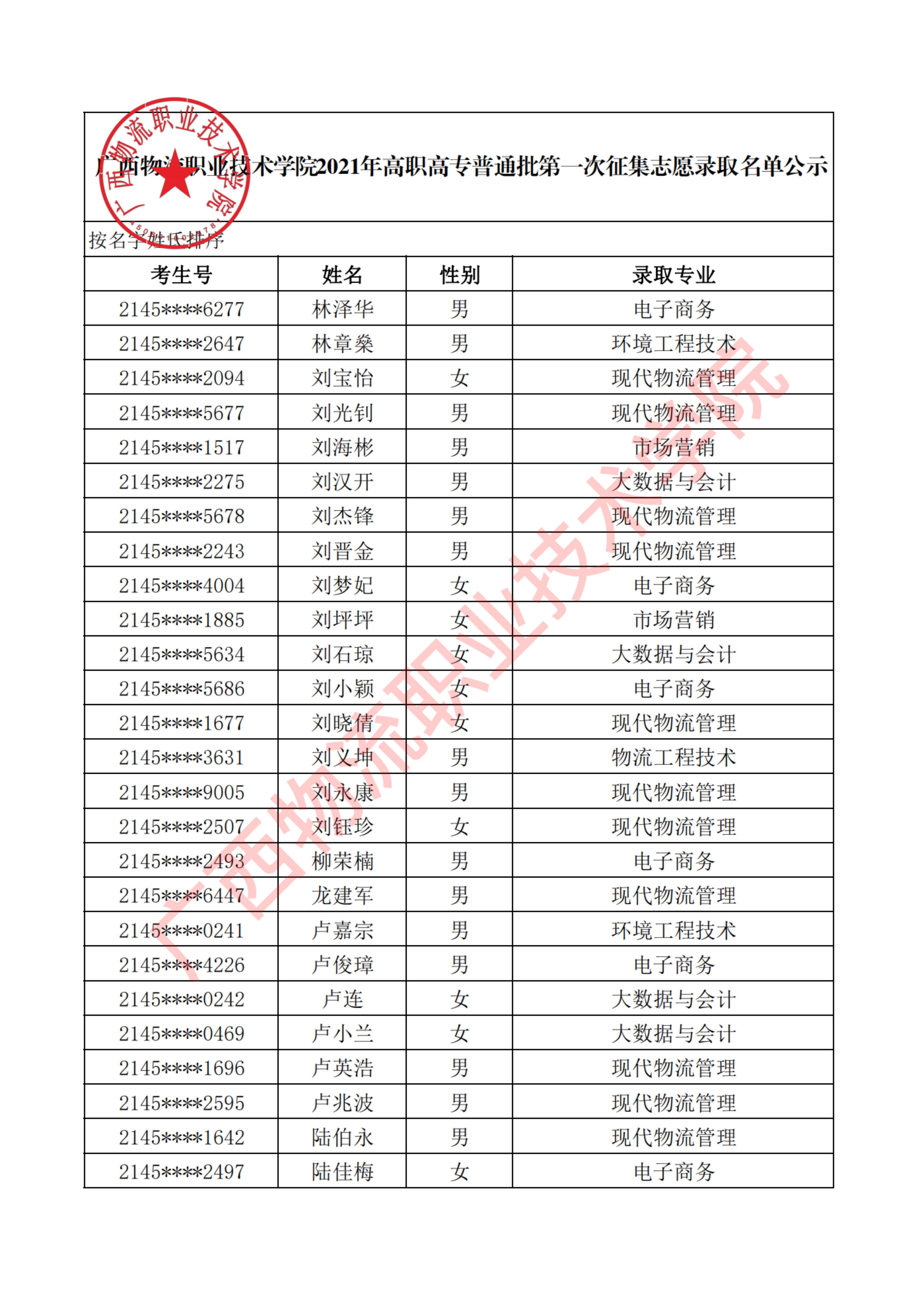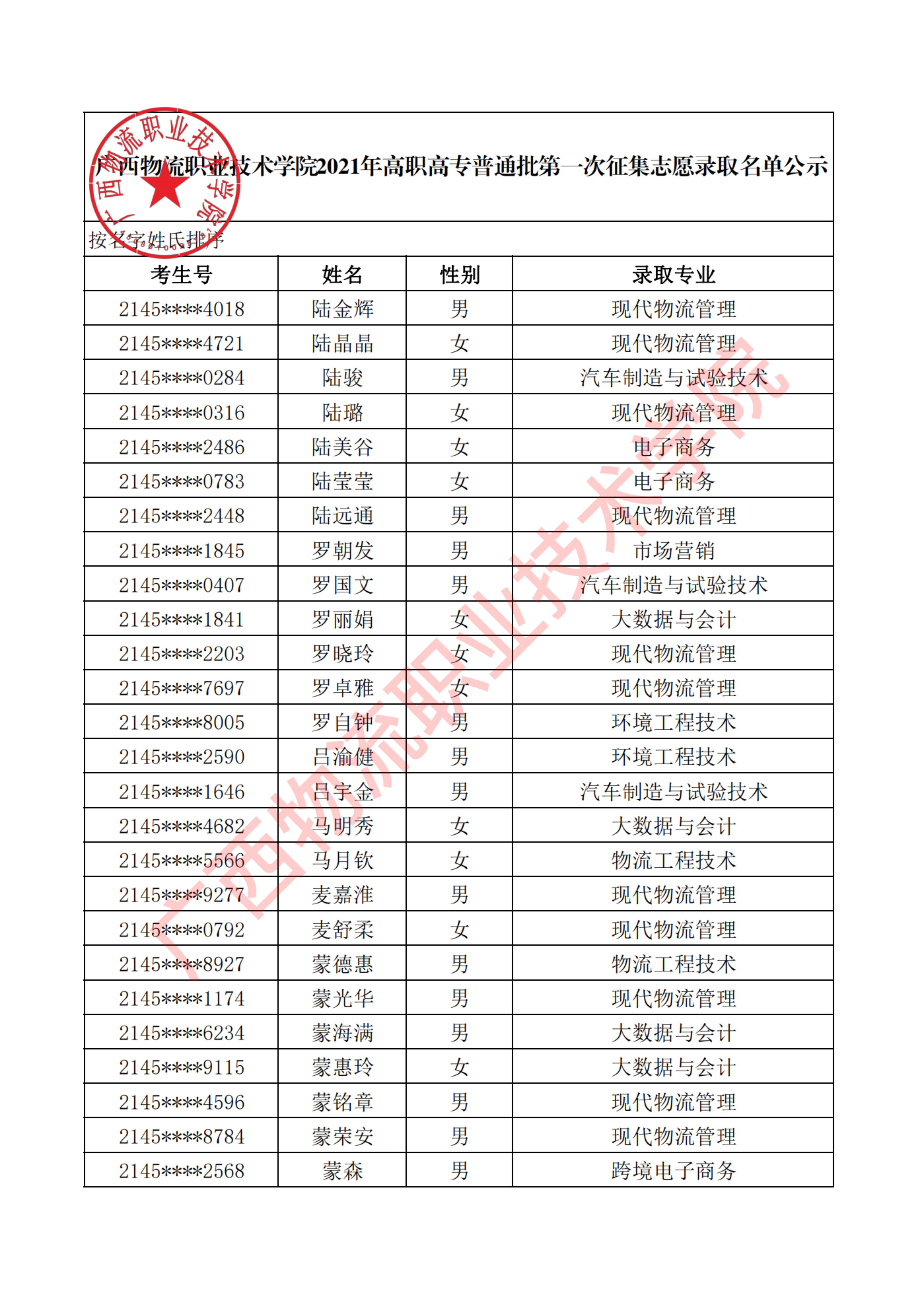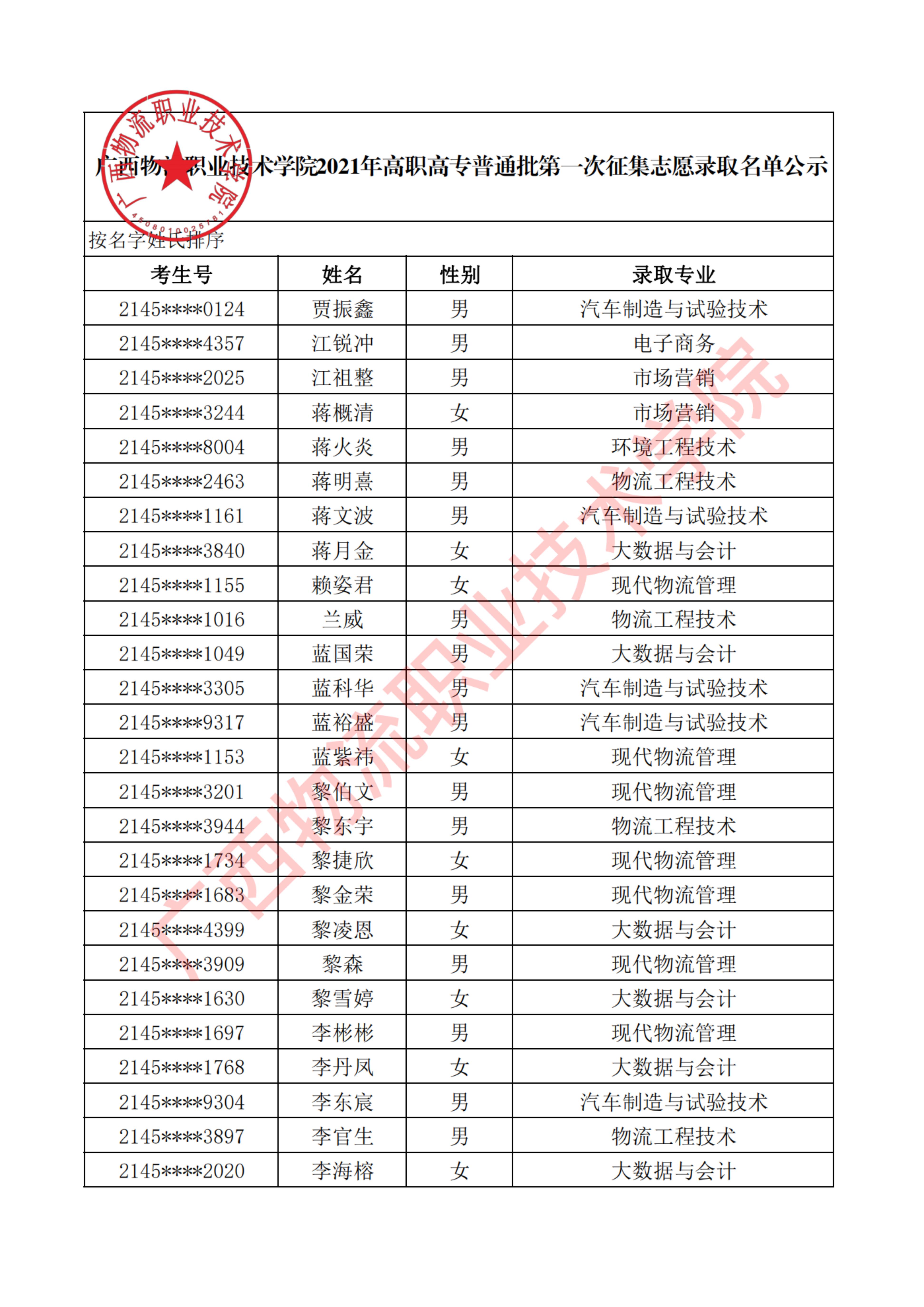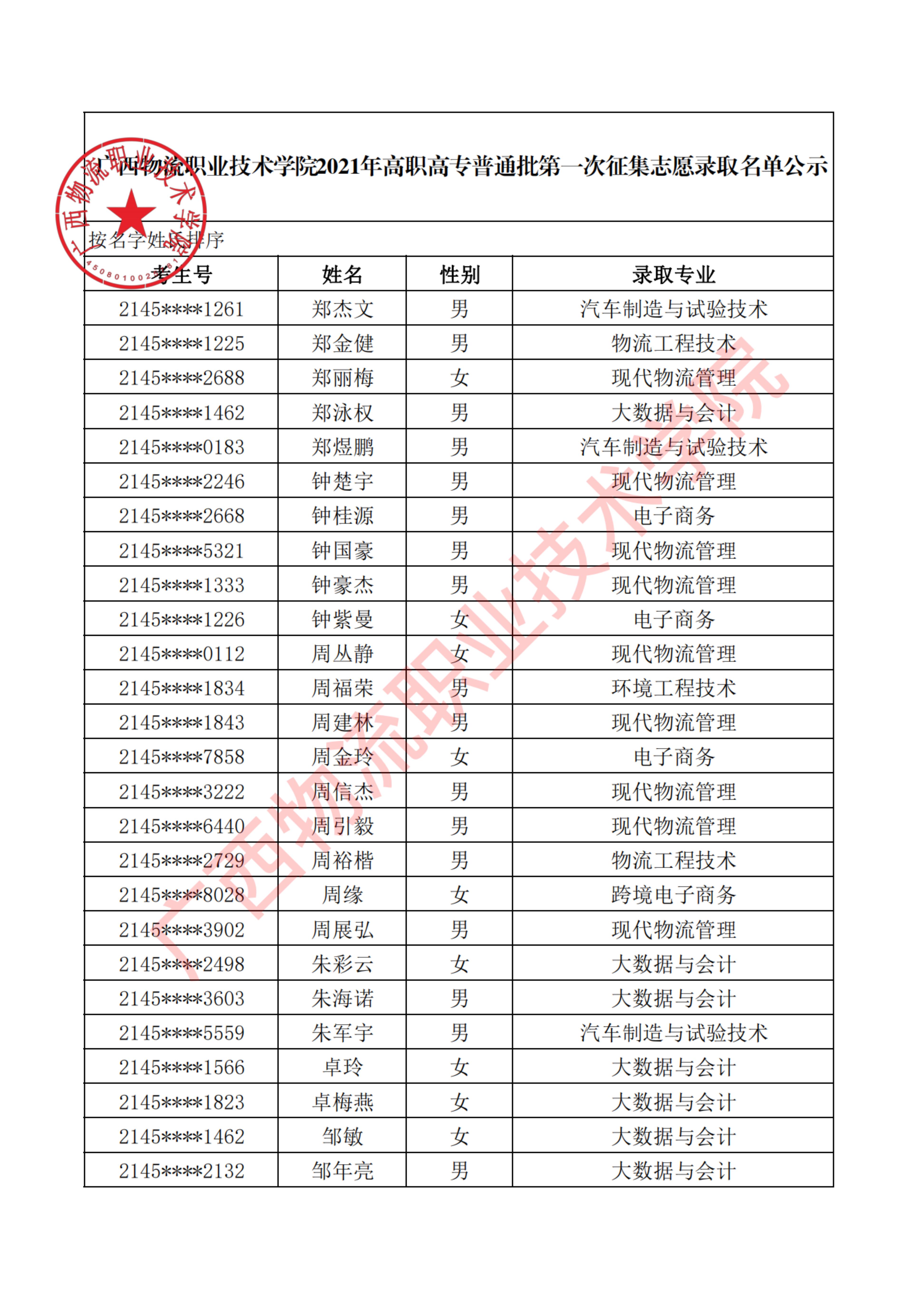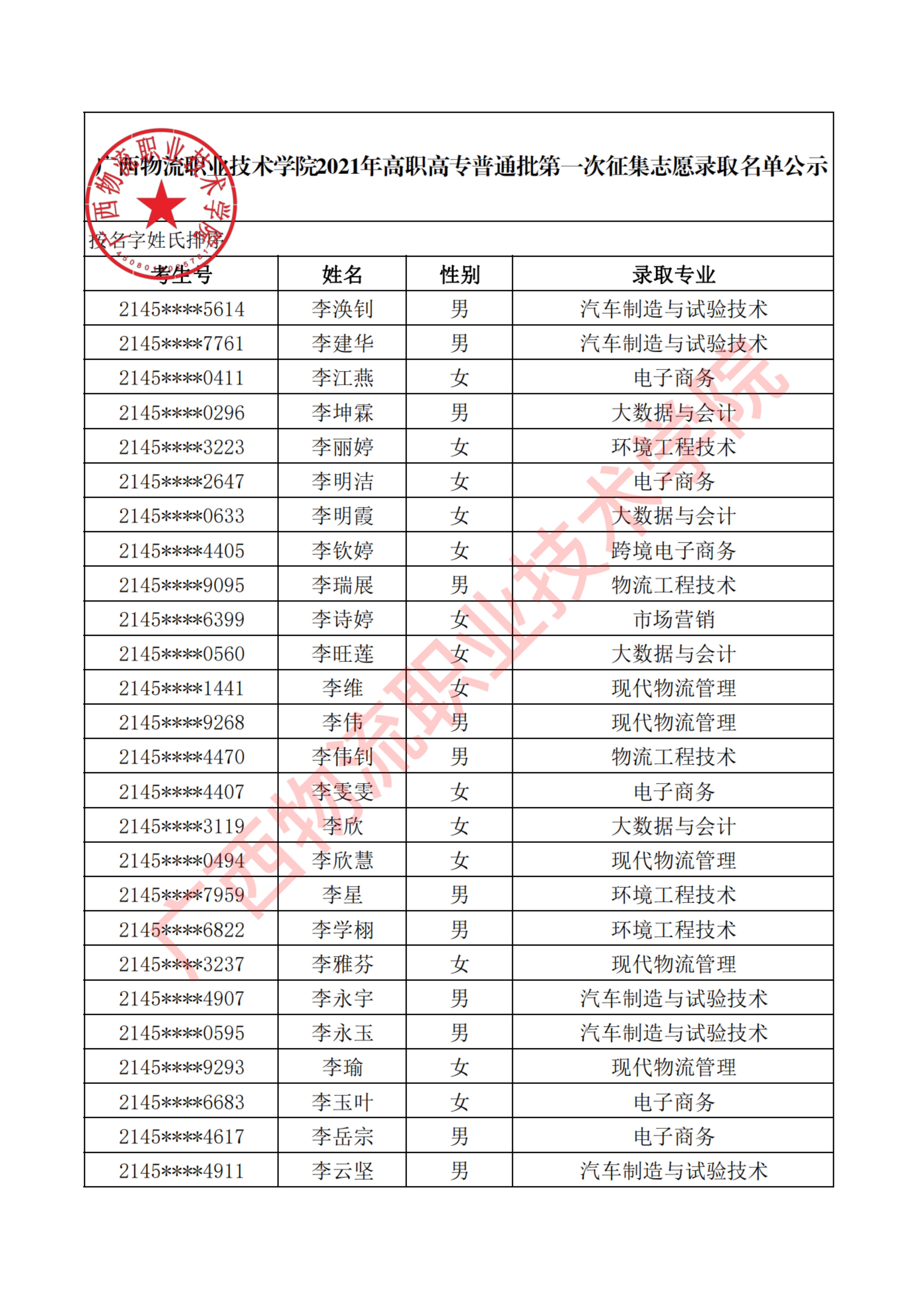 pp电子官方网站2021年高职高专普通批第一次征集志愿录取名单公示