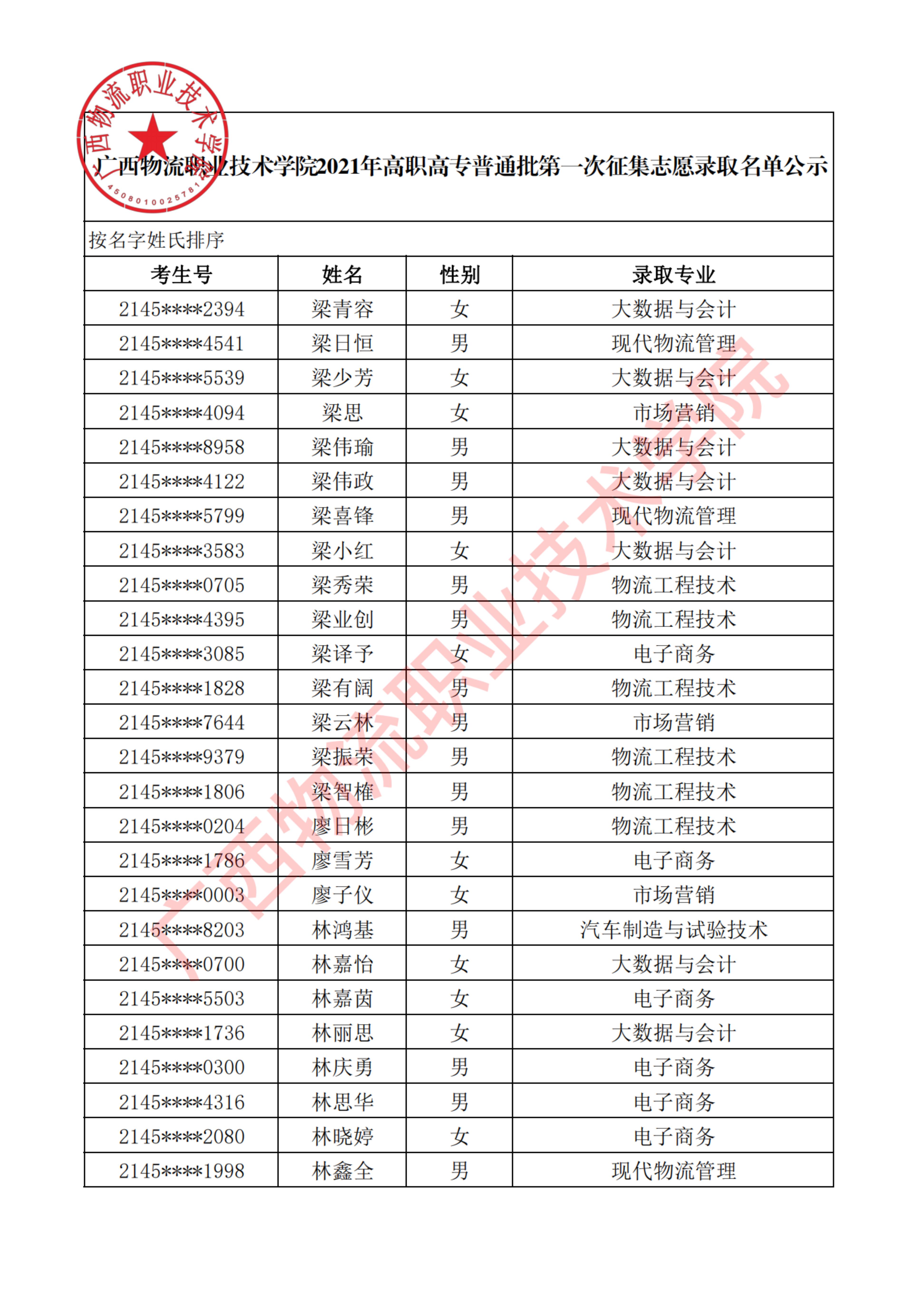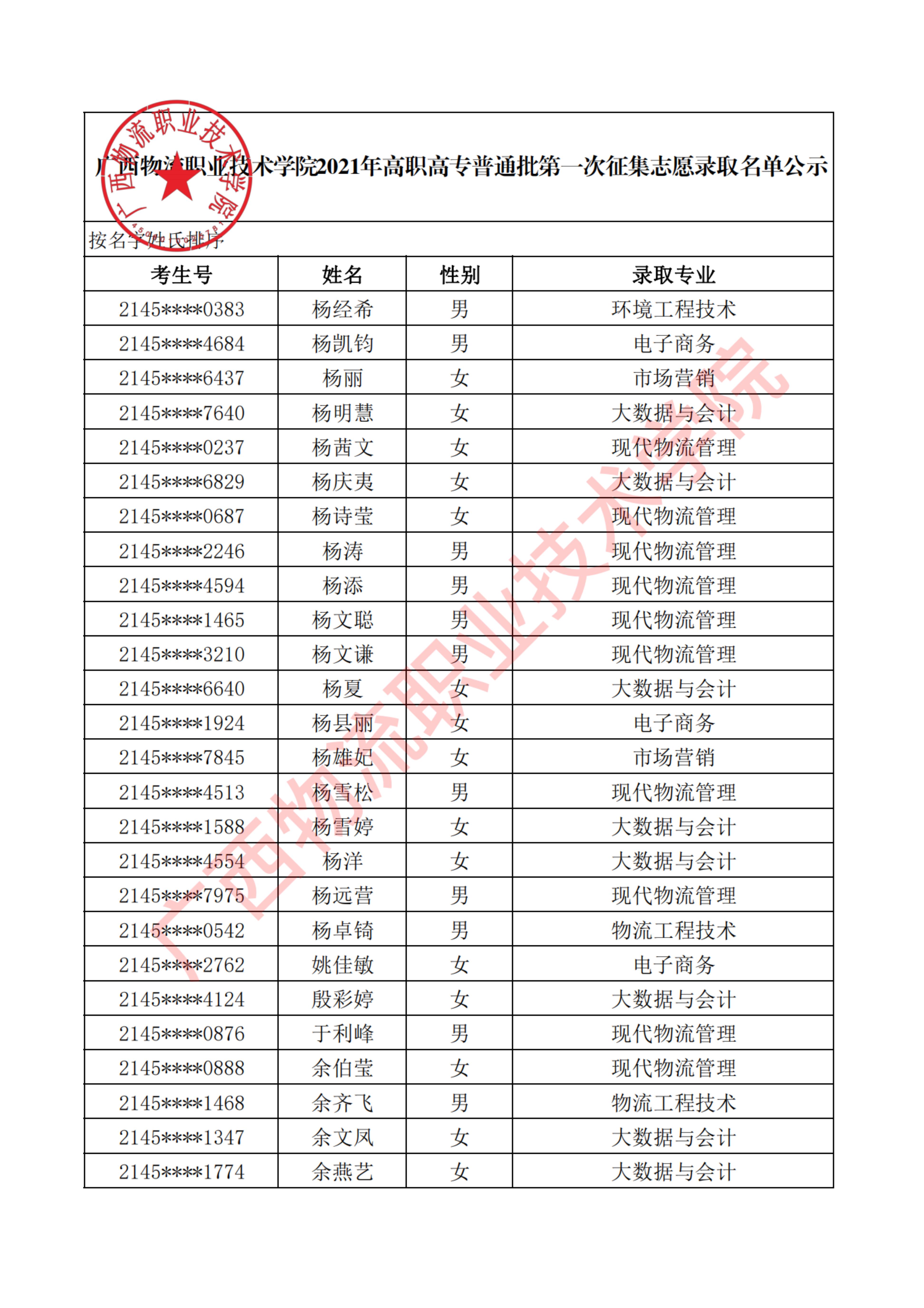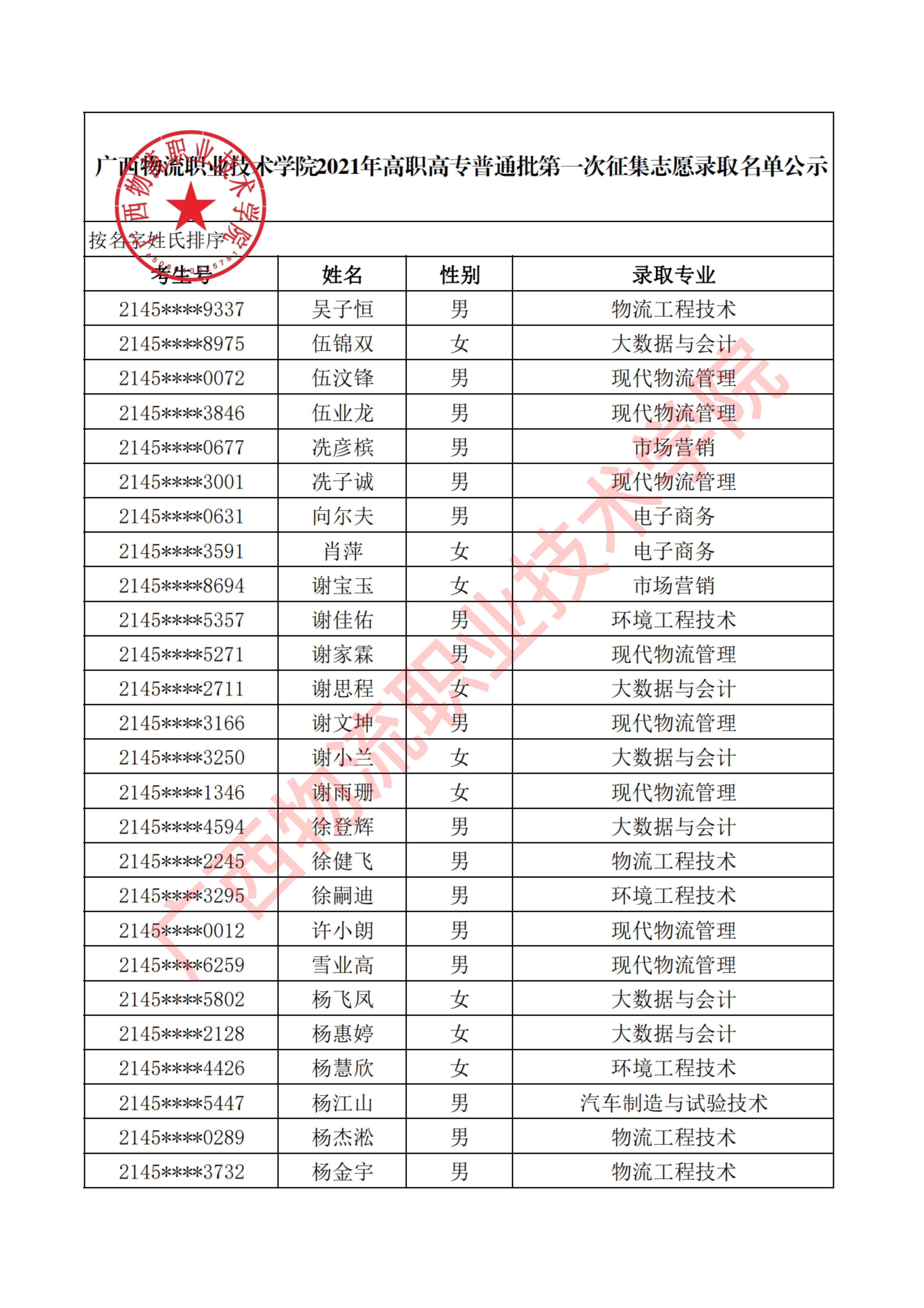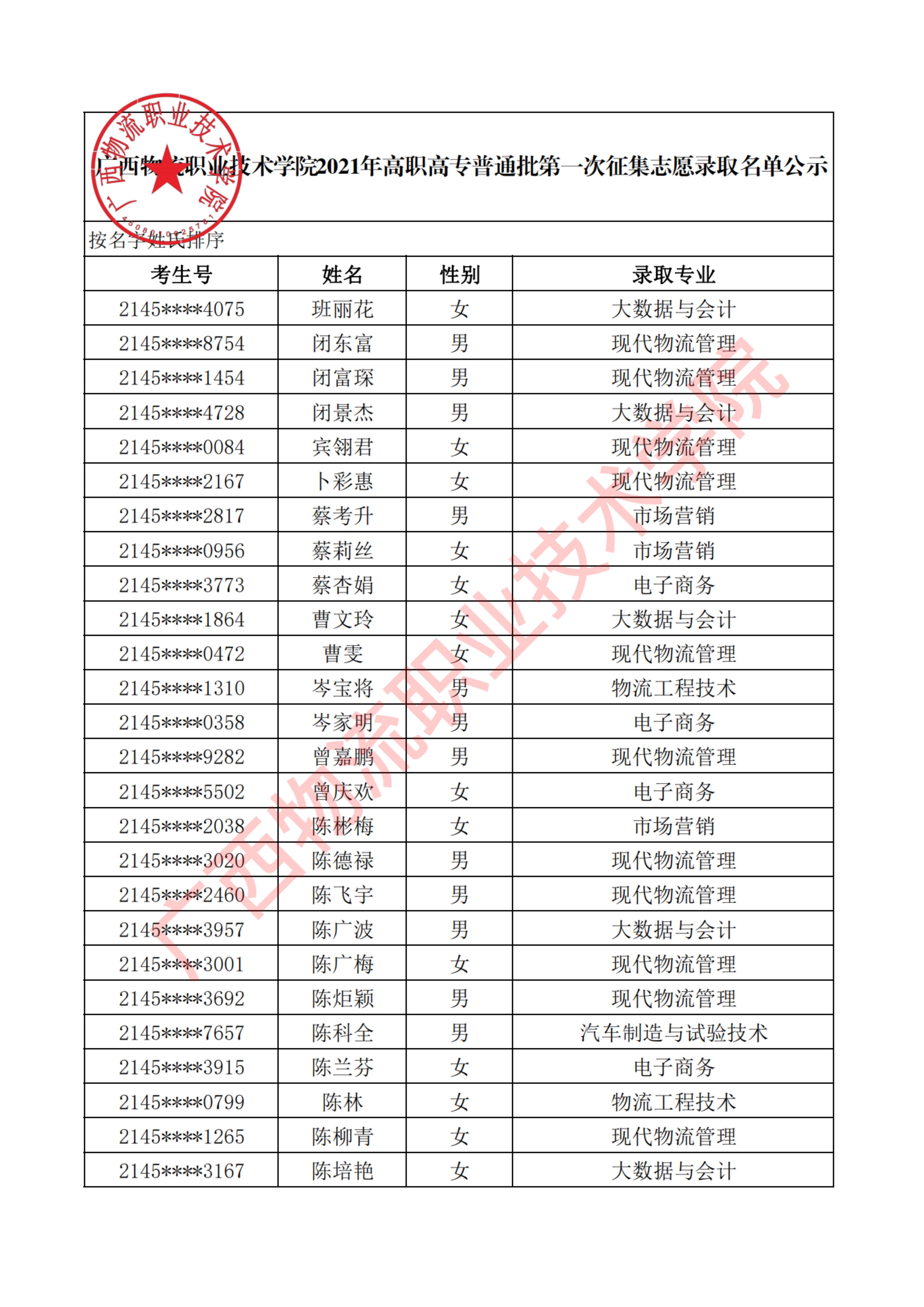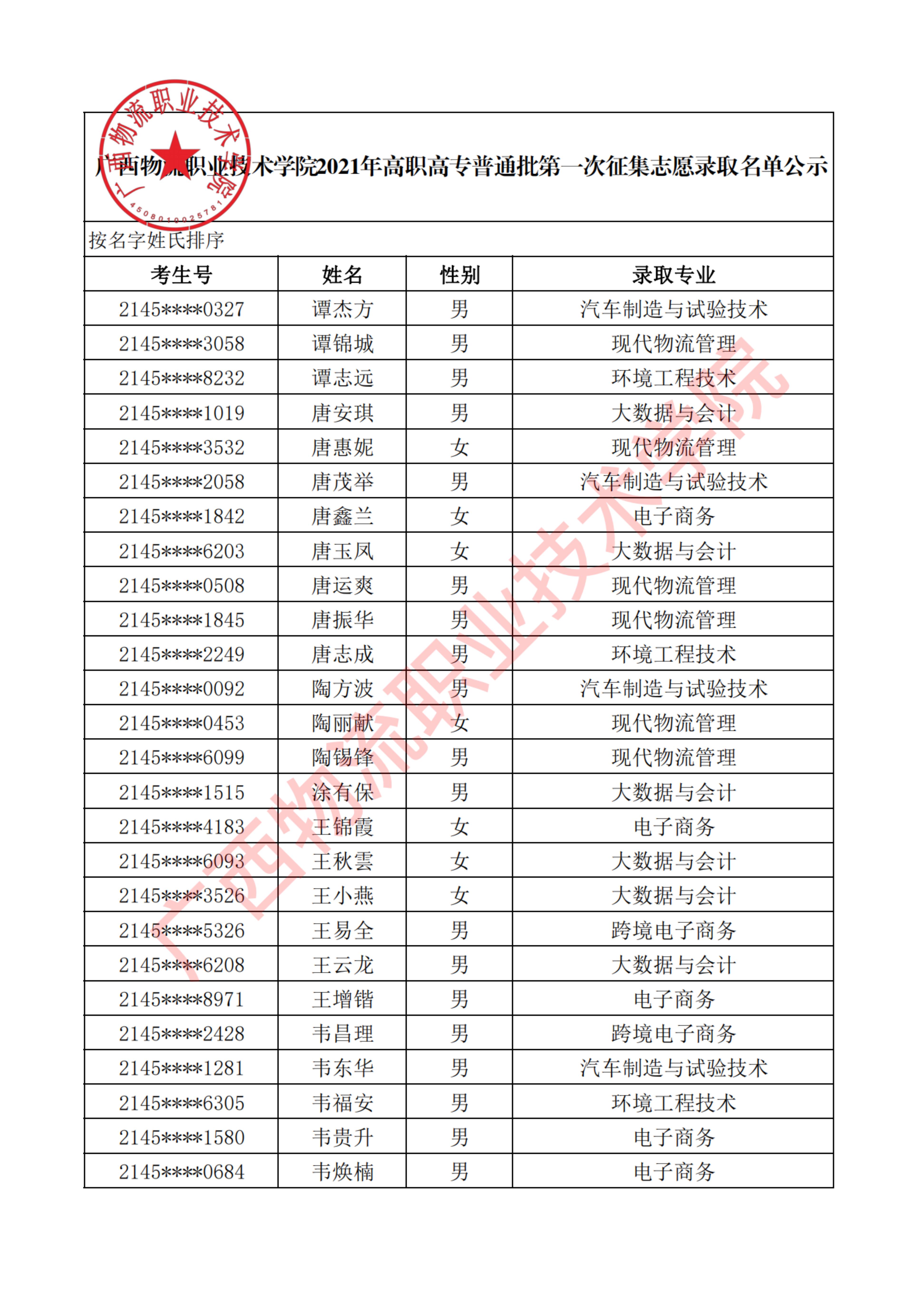 pp电子官方网站2021年高职高专普通批第一次征集志愿录取名单公示