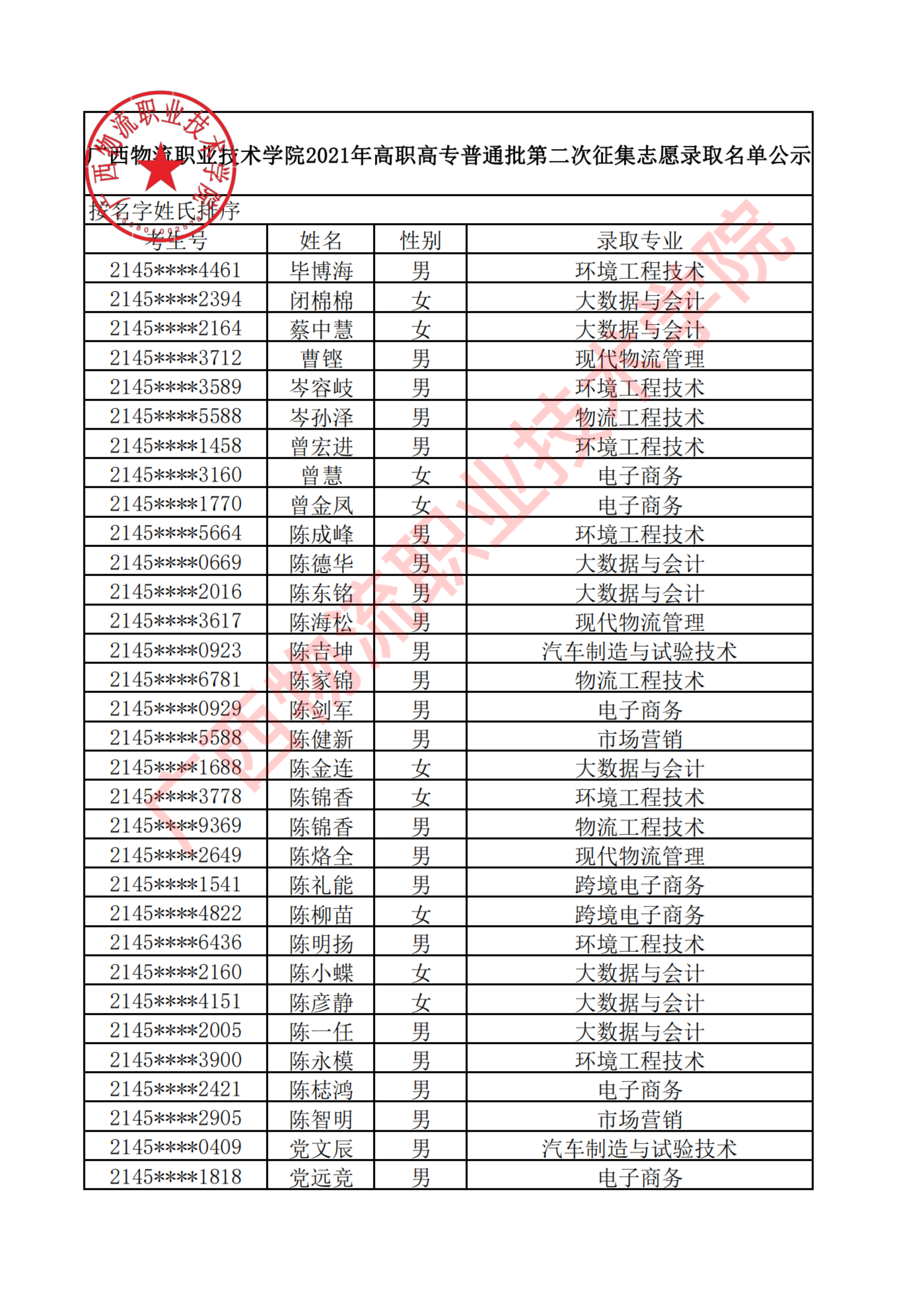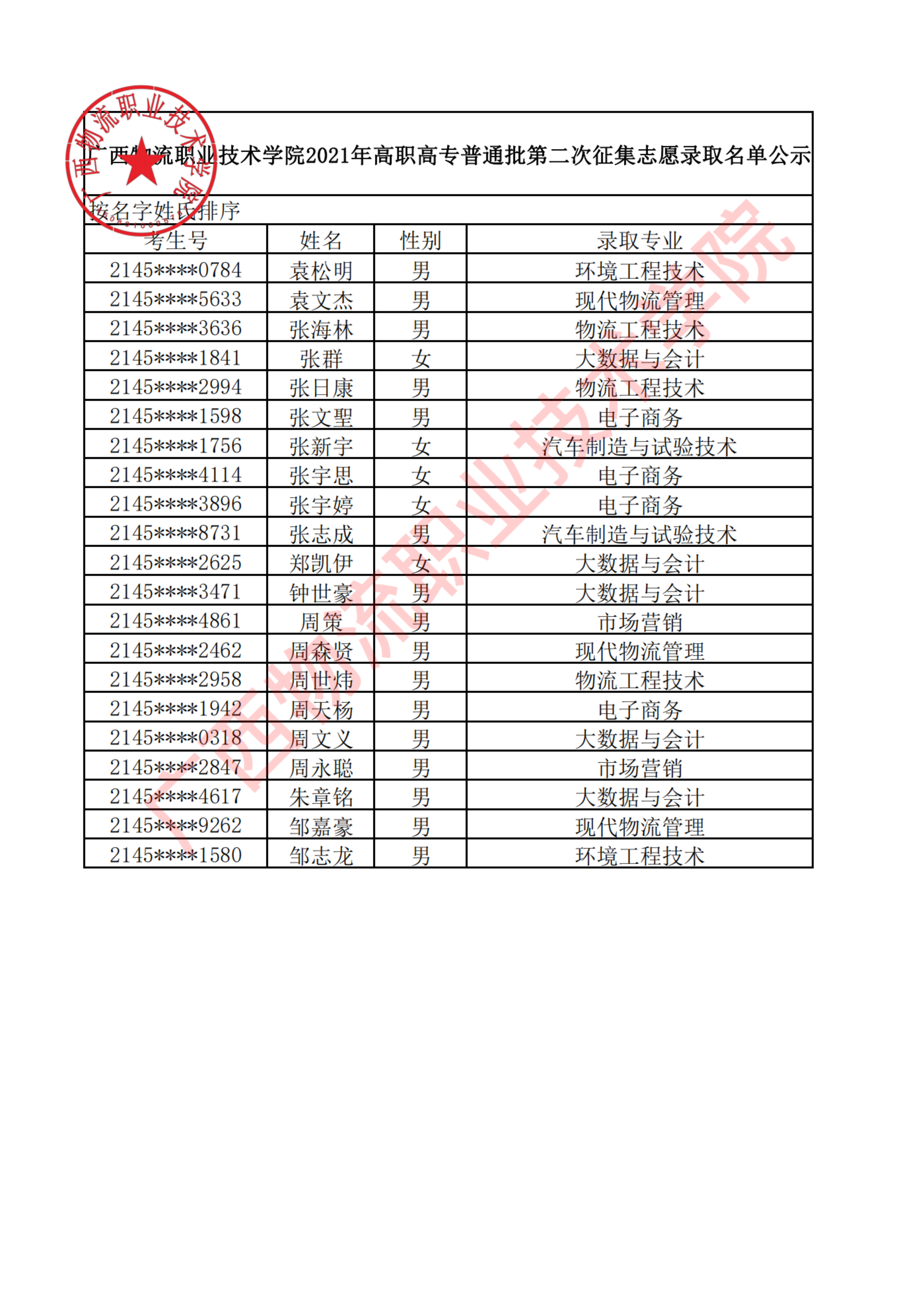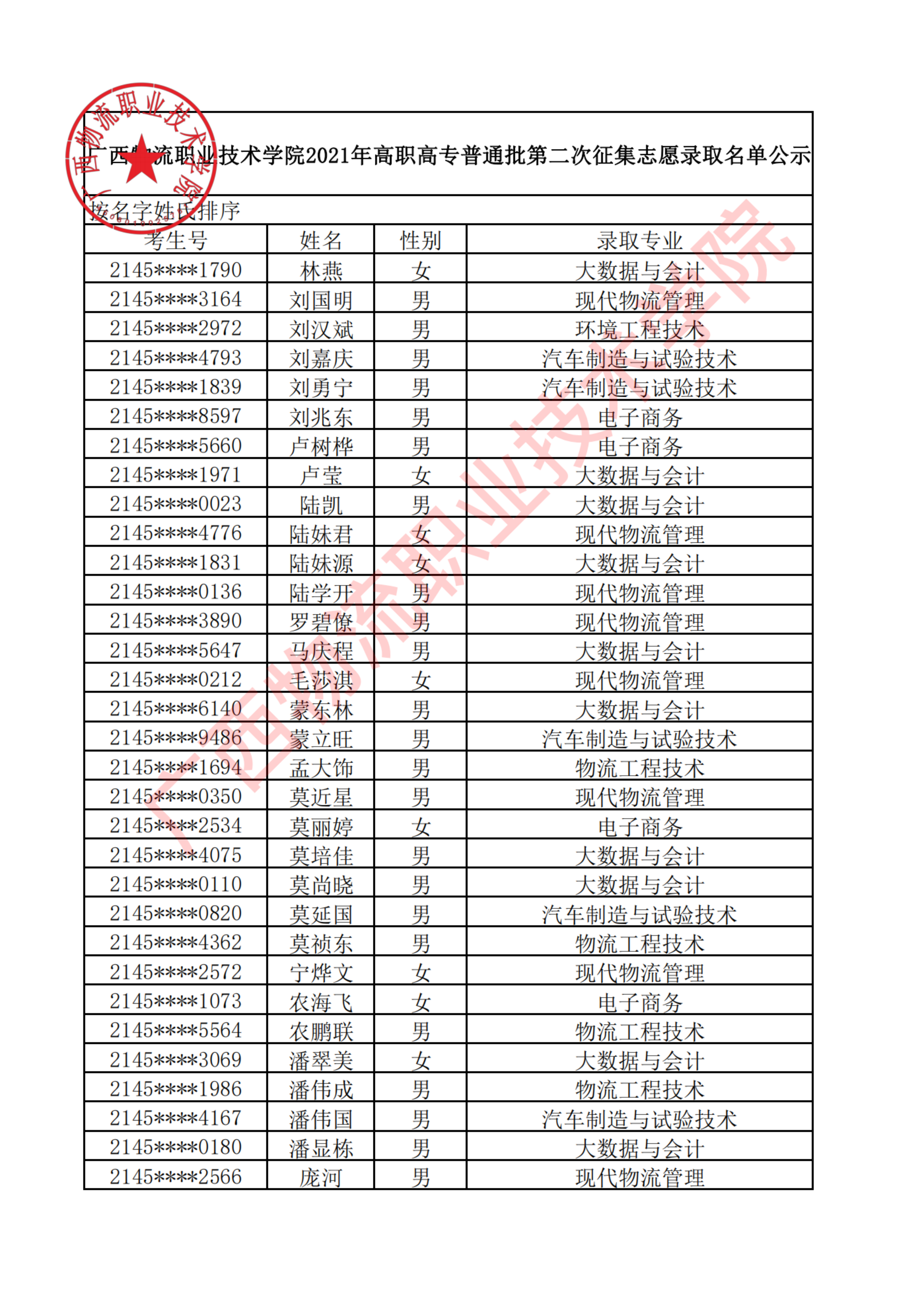 pp电子官方网站2021年高职高专普通批第二次征集志愿录取名单公示