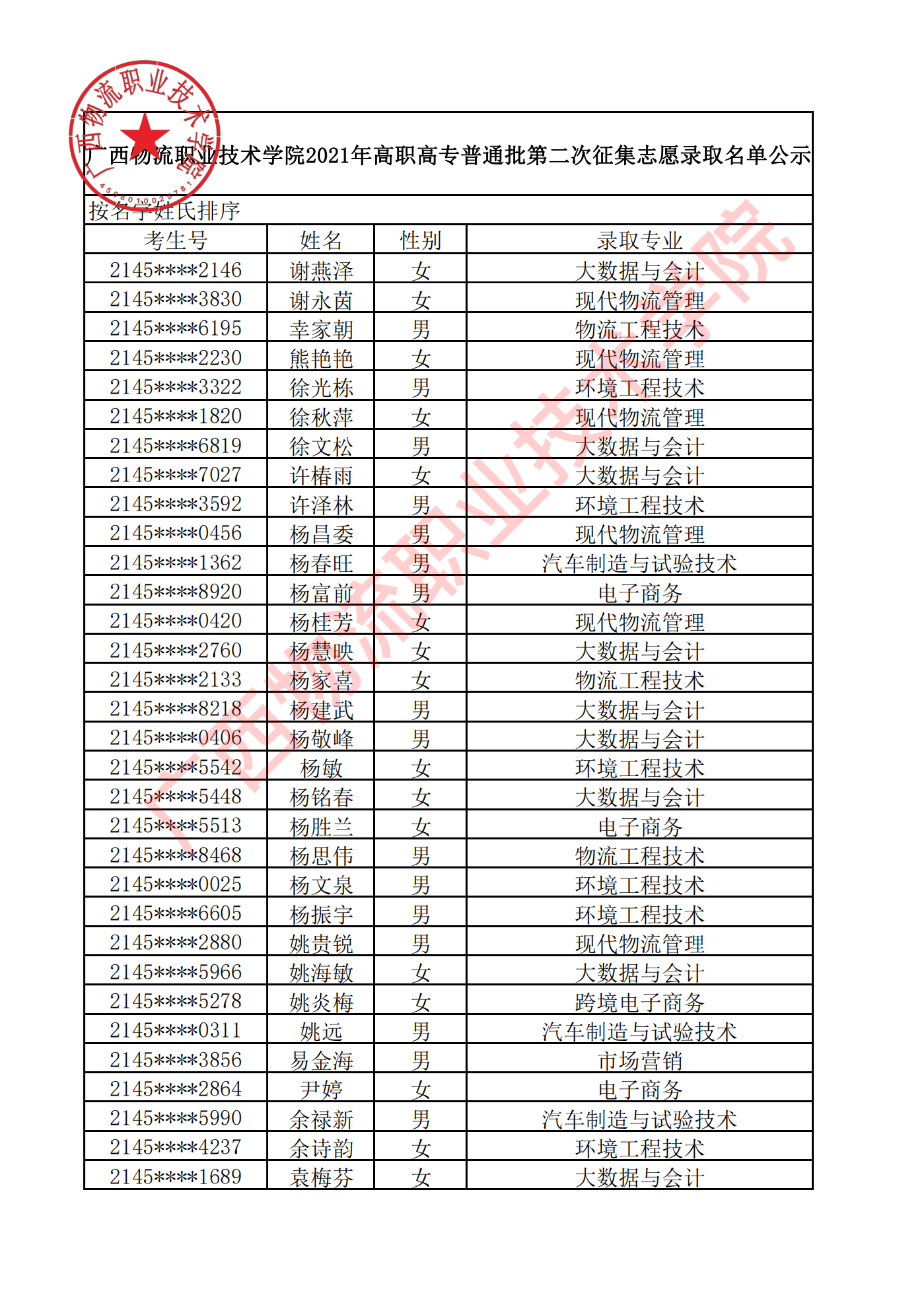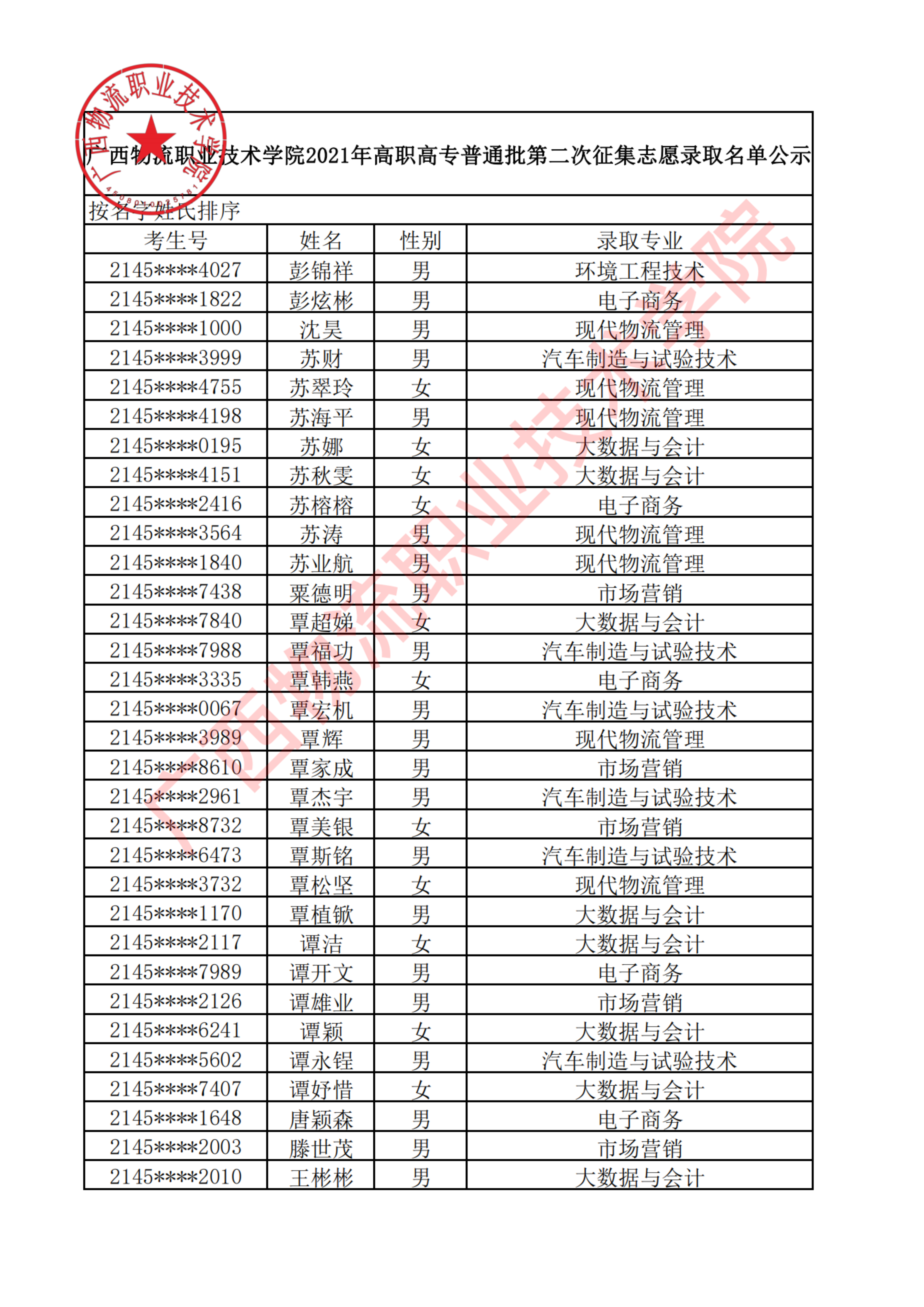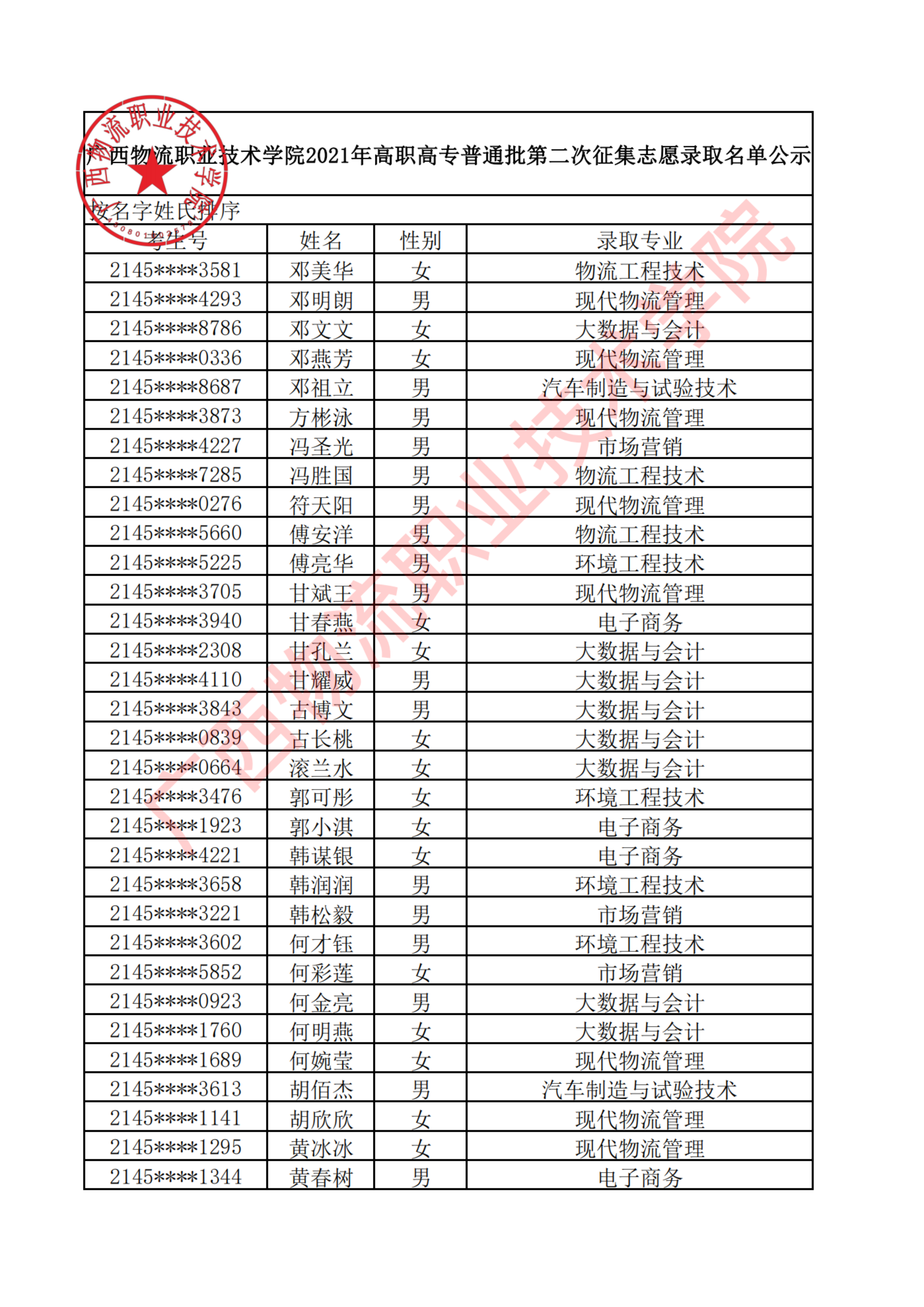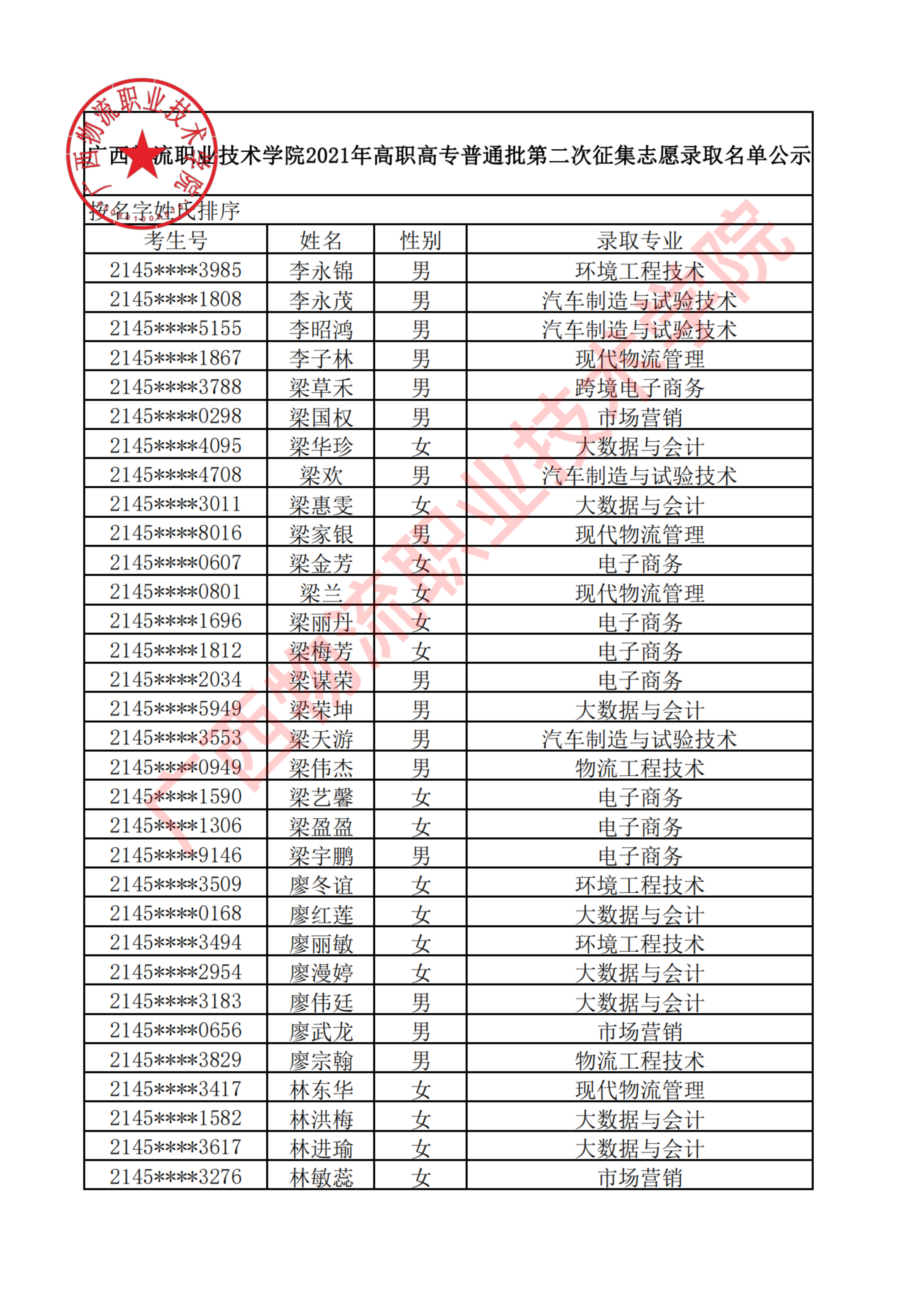 pp电子官方网站2021年高职高专普通批第二次征集志愿录取名单公示