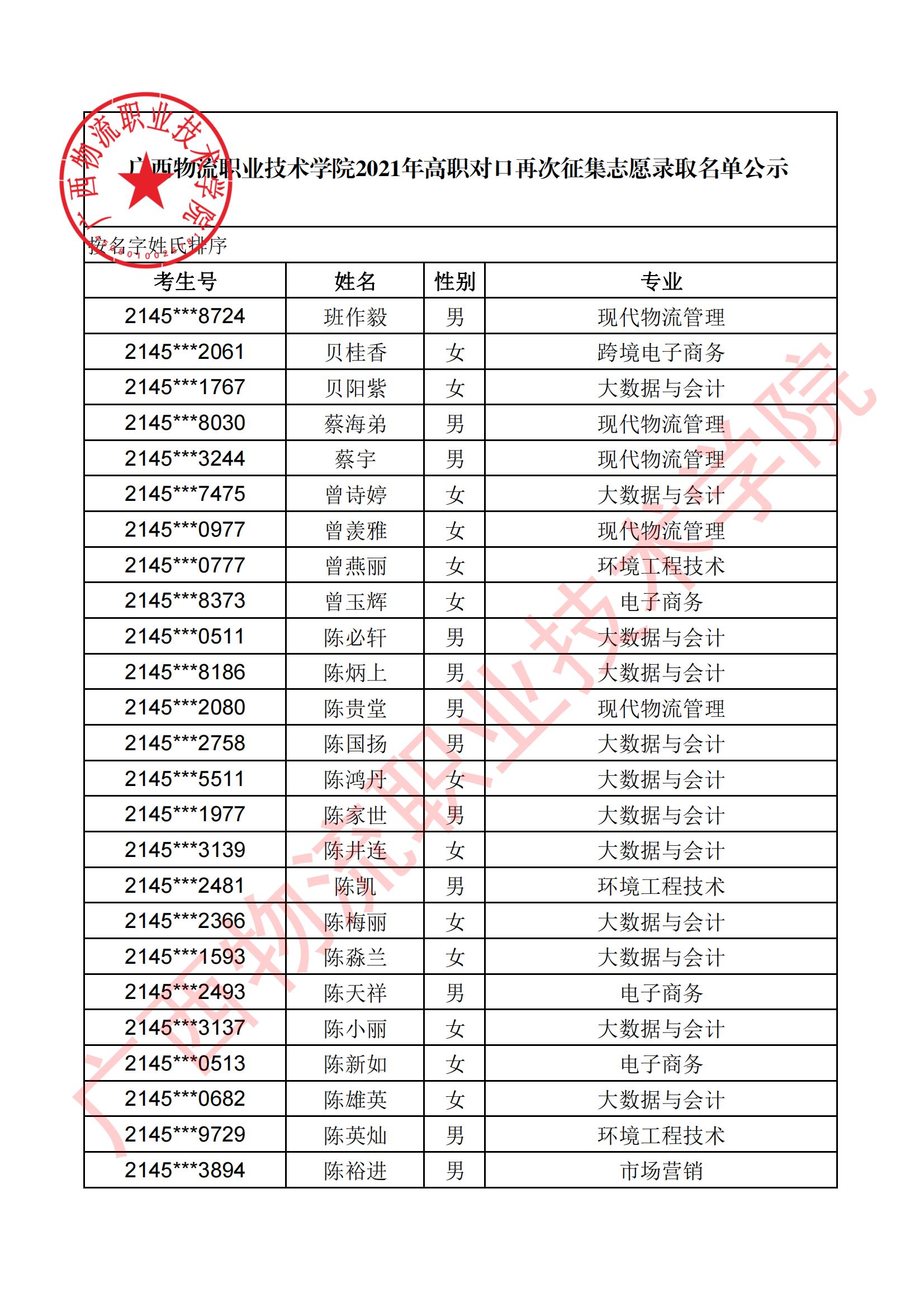 pp电子官方网站2021年高职对口再次征集志愿录取名单公示