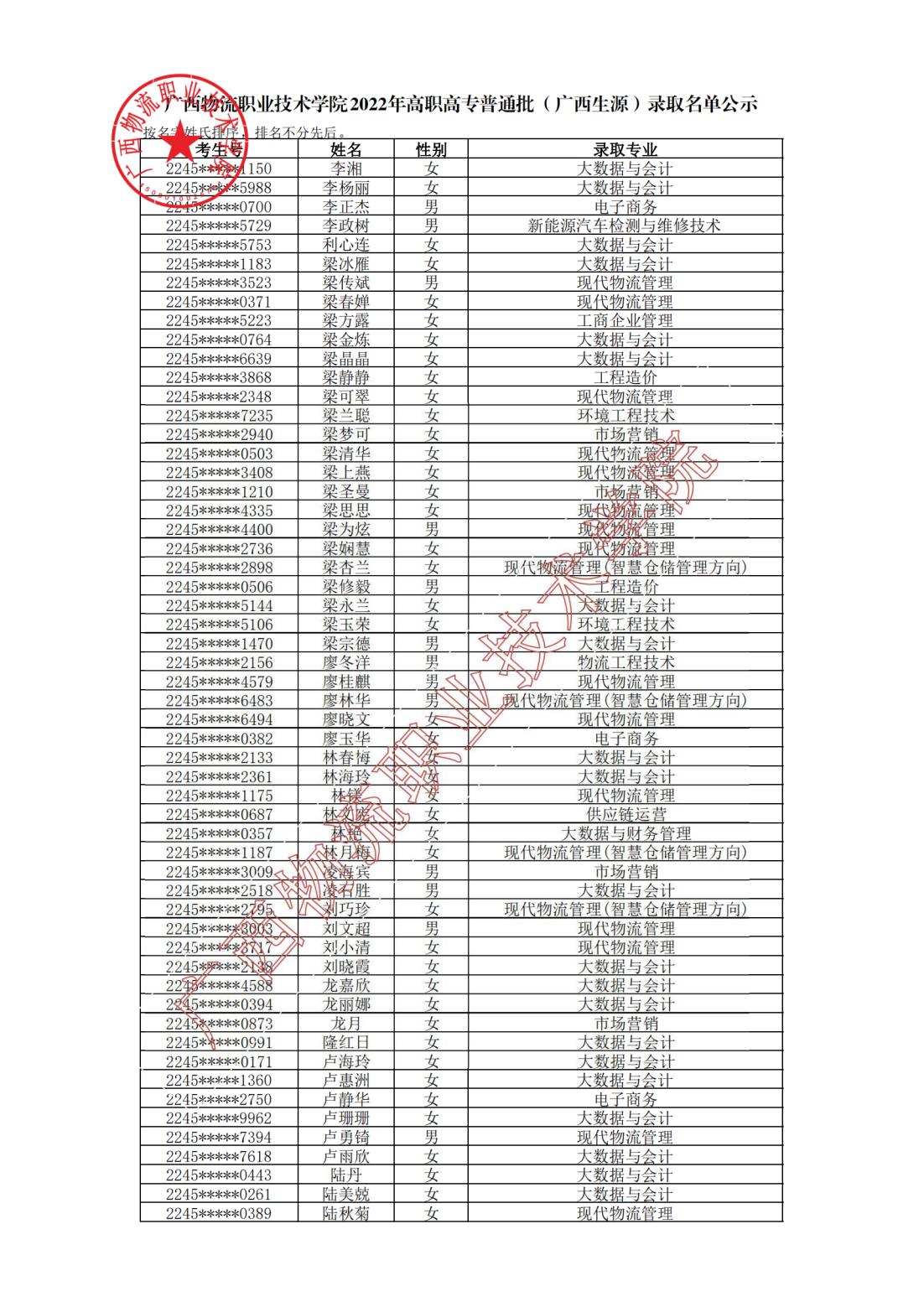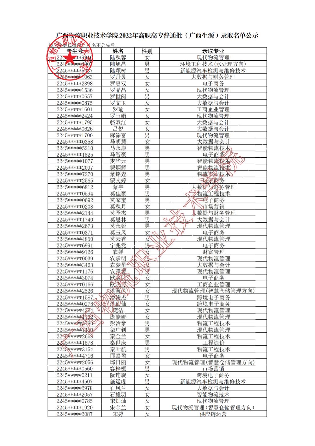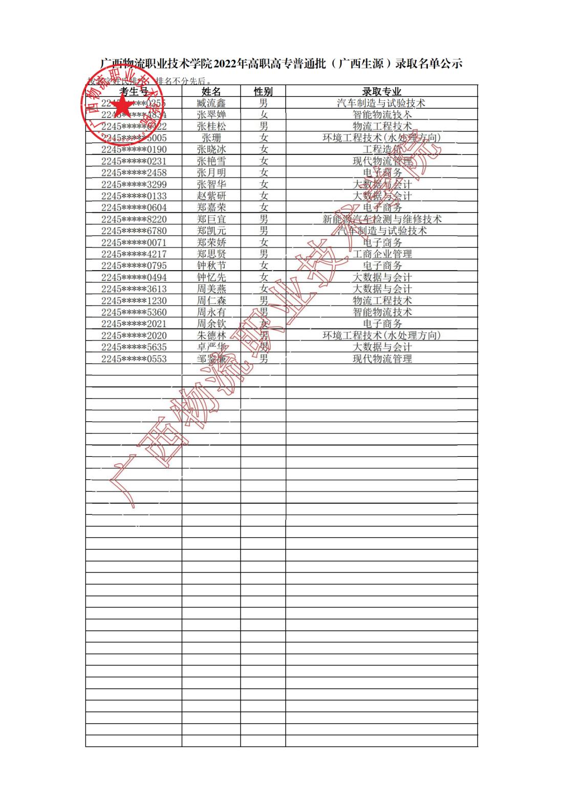 pp电子官方网站2022年高职高专普通批(广西生源)录取名单公示