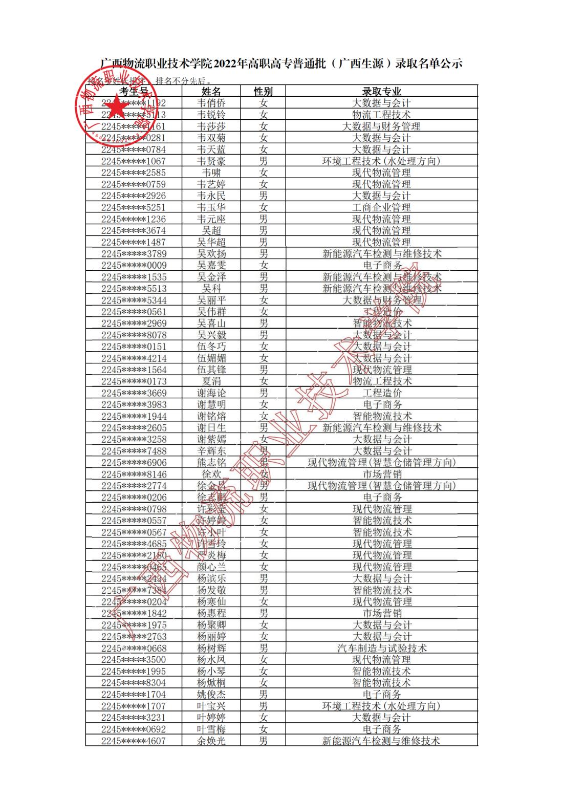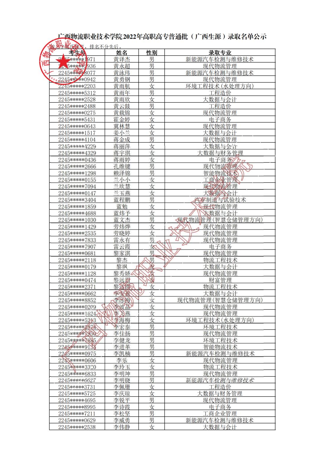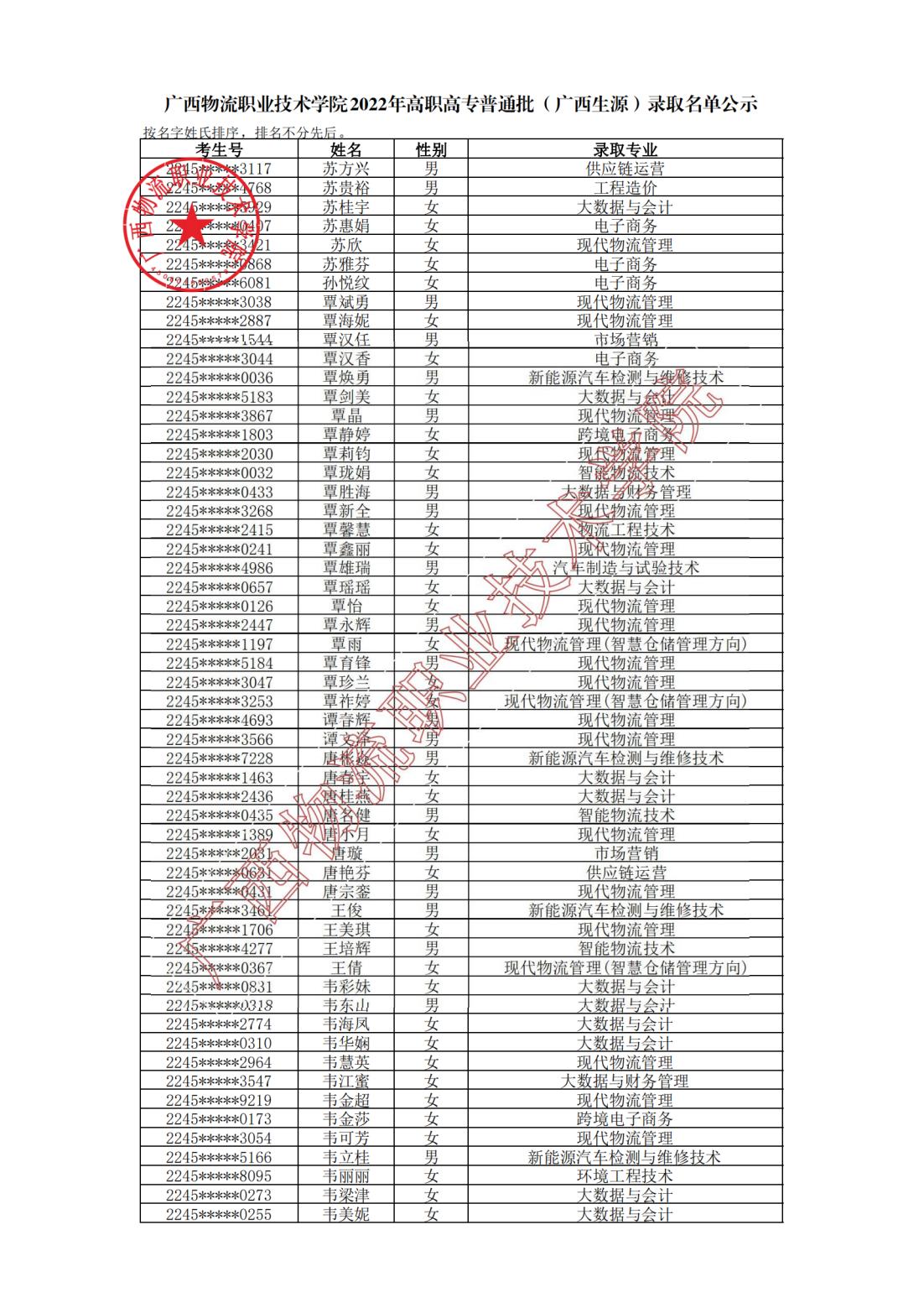 pp电子官方网站2022年高职高专普通批(广西生源)录取名单公示
