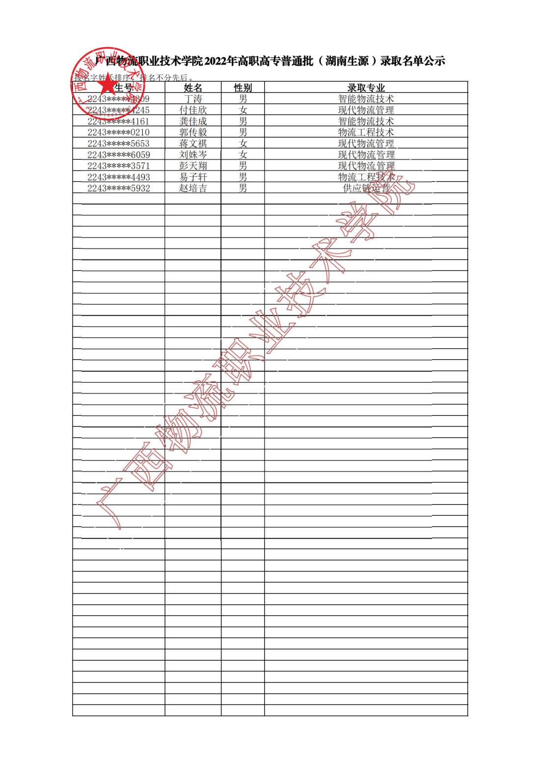 pp电子官方网站2022年高职高专普通批(湖南生源)录取名单公示