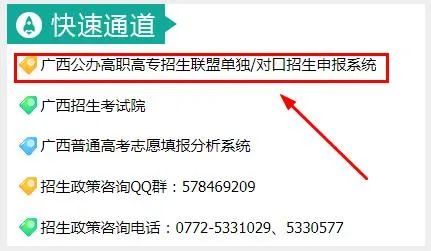 方法三:查找招生联盟院校网站,从院校网站进入广西高职高专招生网,点击进入“广西公办高职高专招生联盟单独/对口招生申报系统”,按申报系统要求填写申报信息。
