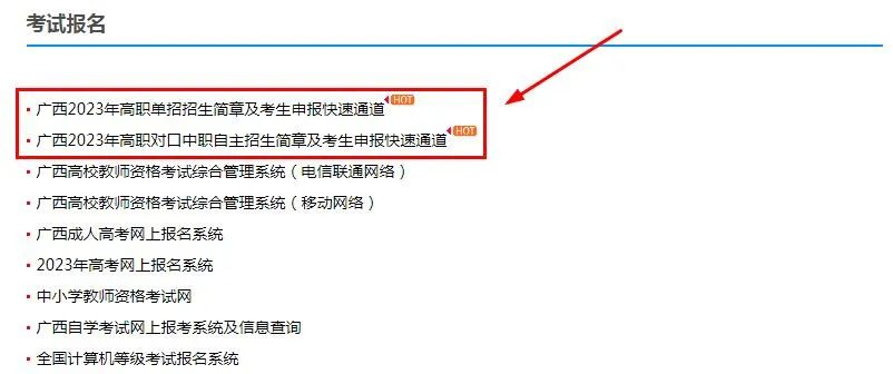 志愿填报系统从广西招生考试院网站“系统导航-志愿填报-2023年普通高校招生志愿填报系统(高职单招/高职对口志愿填报)”进入。