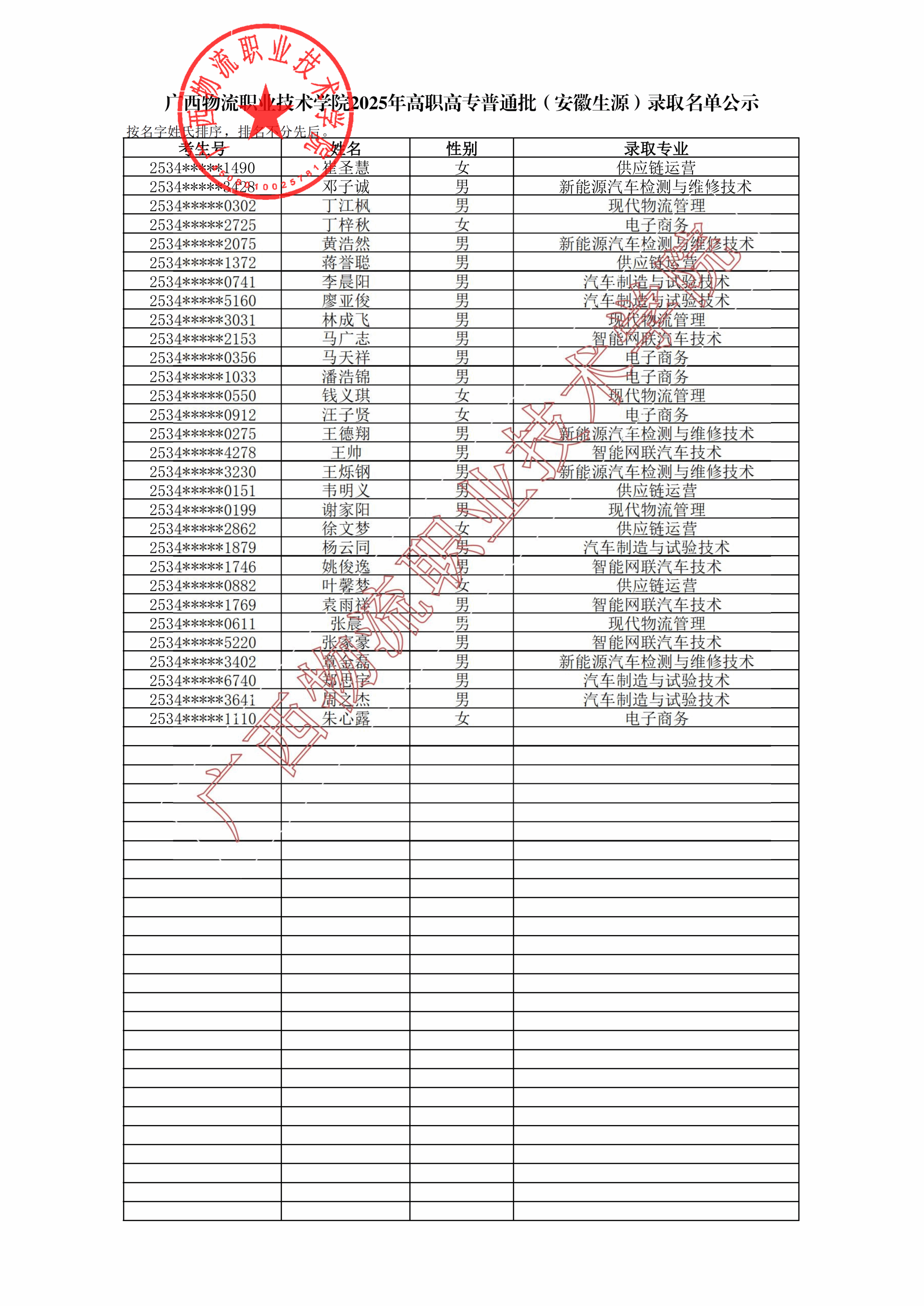 pp电子官方网站2025年高职高专普通批(安徽生源)录取名单公示