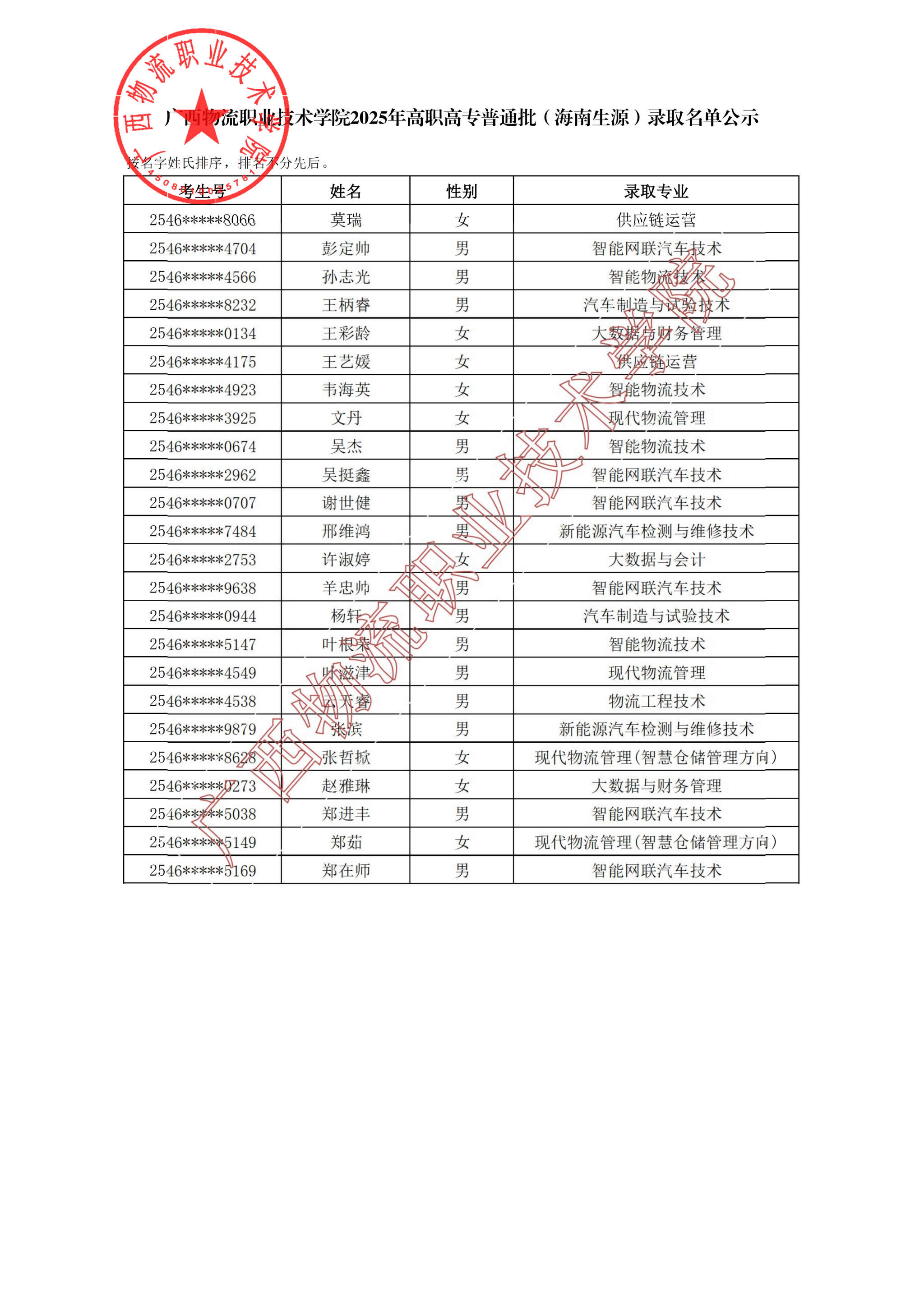 pp电子官方网站2025年高职高专普通批(海南生源)录取名单公示