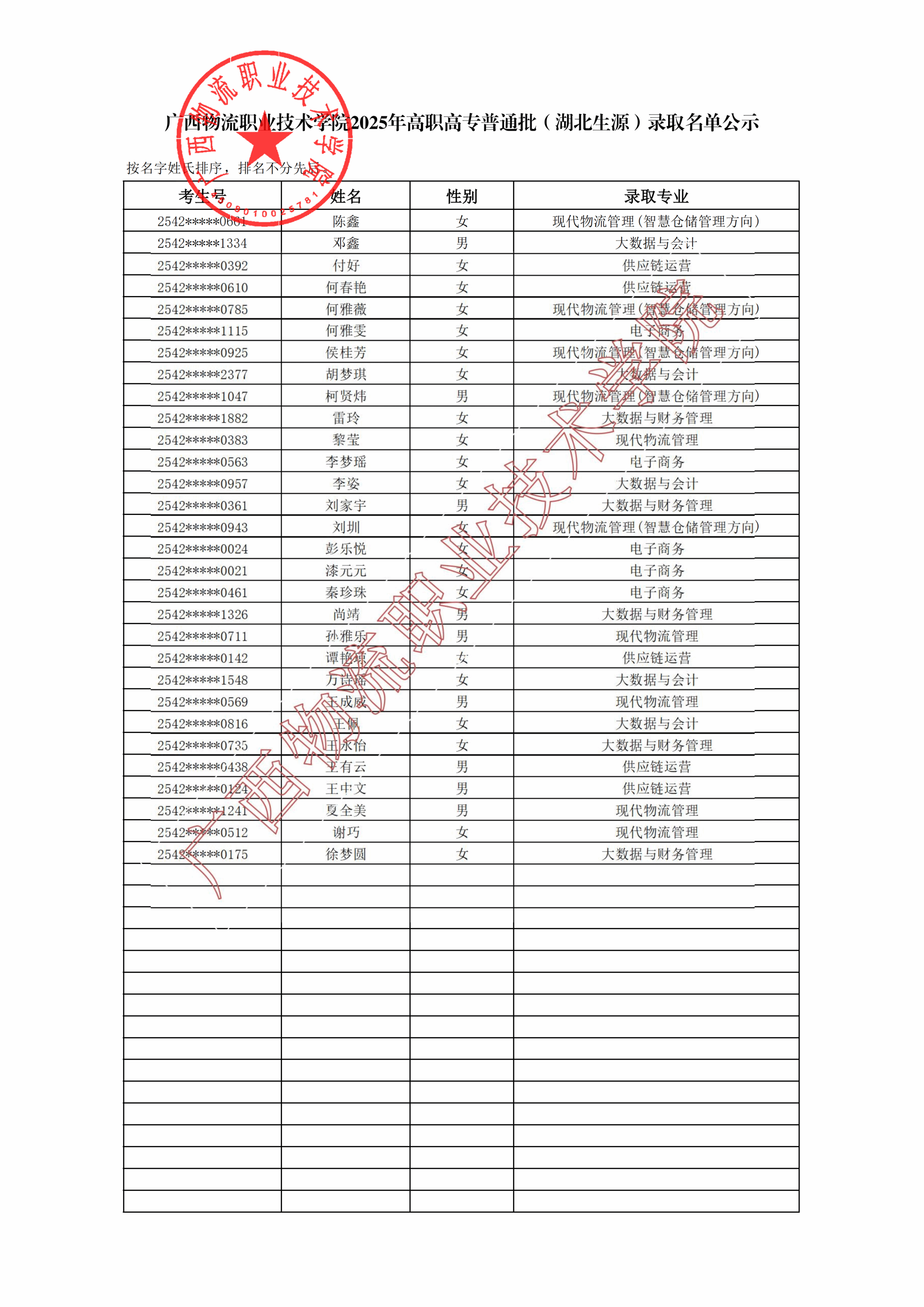 pp电子官方网站2025年高职高专普通批(湖北生源)录取名单公示