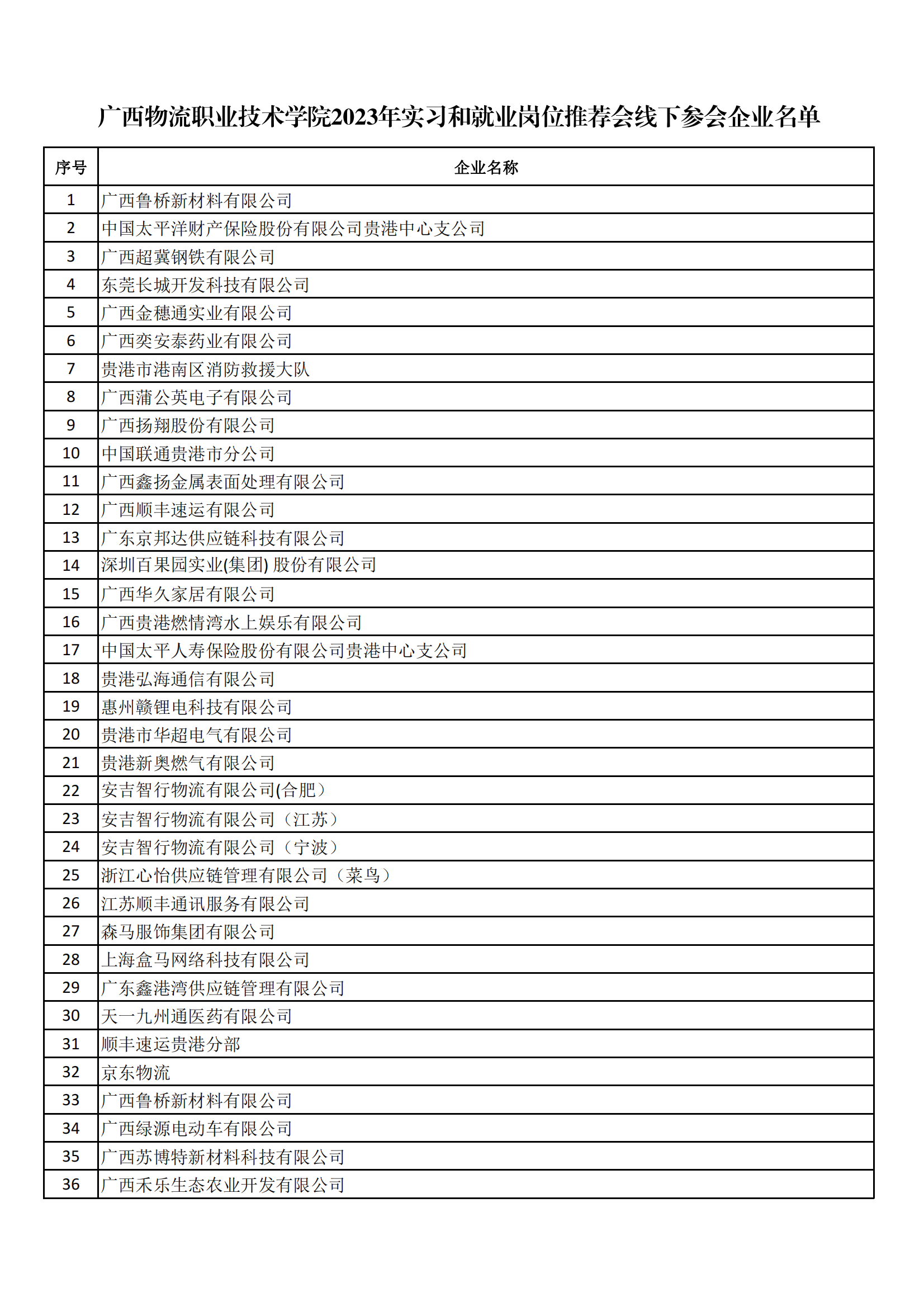 pp电子官方网站2023年实习和就业岗位推荐会线下参会企业名单