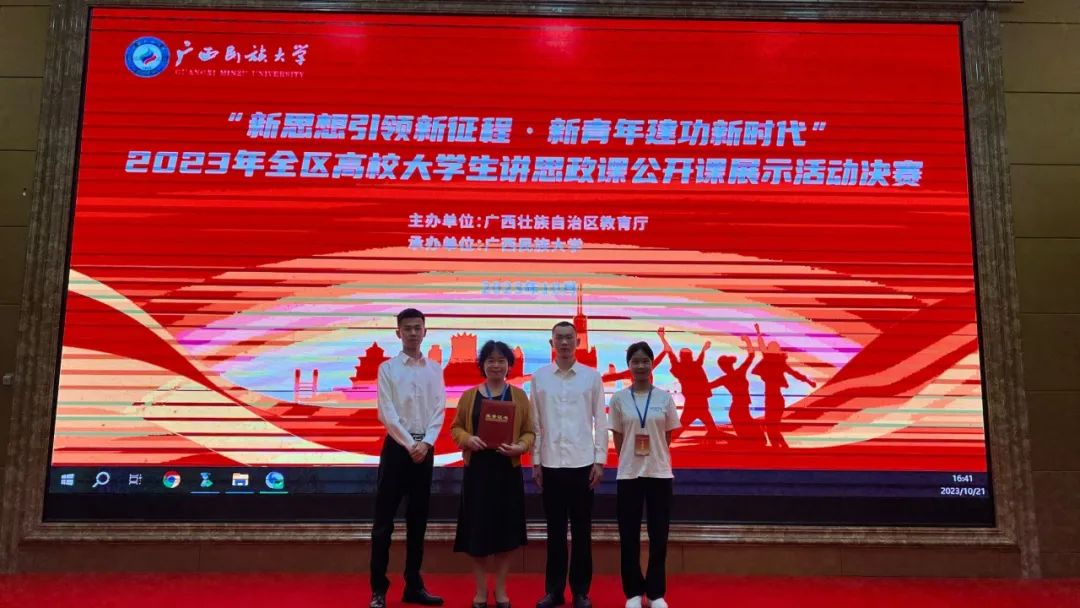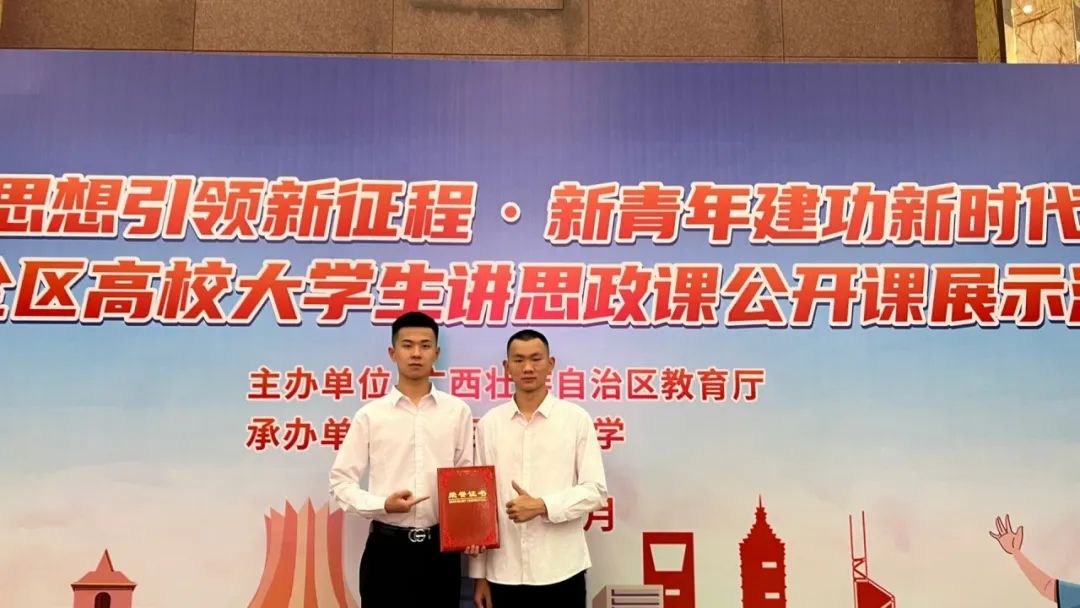 10月21日,在广西壮族自治区教育厅主办、广西民族大学承办的“新思想引领新征程 新青年建功新时代”—2023年全区高校大学生讲思政课公开课展示活动决赛中,pp电子学生欧安平、王全博以精彩的表现,斩获高职高专组二等奖。