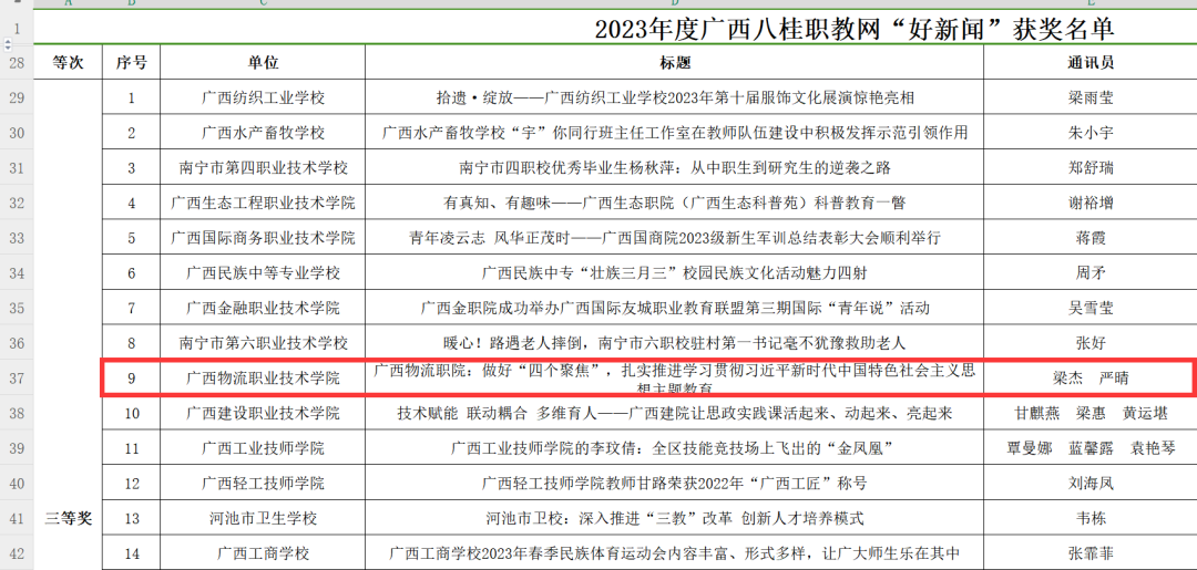 3.《广西物流职院:做好“四个聚焦”,扎实推进学习贯彻习近平新时代中国特色社会主义思想主题教育》荣获年度好新闻三等奖。