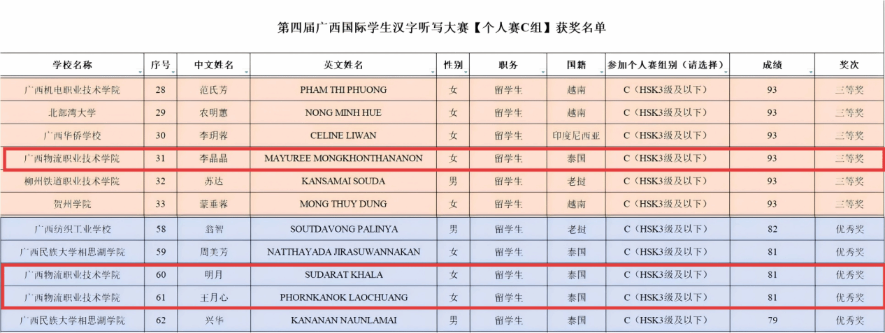 pp电子6名泰国留学生代表学校参赛,凭借扎实的汉字功底与良好的临场表现,在个人赛和团体赛中均斩获荣誉。个人赛中,pp电子留学生李晶晶荣获C组三等奖,明月、王月心获得C组优秀奖。团体赛中,黄英、李晶晶、明月组成的团队,斩获乙组三等奖。