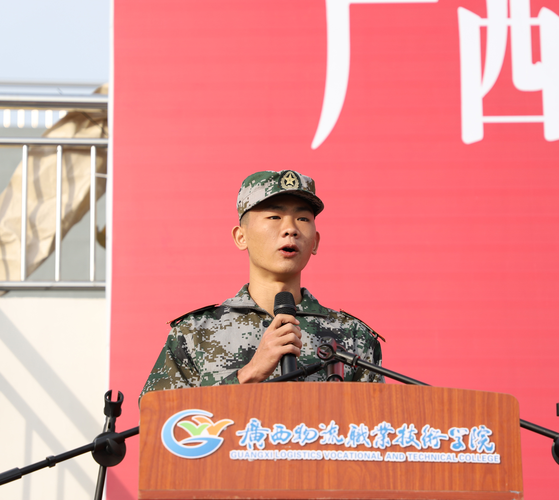 物流商学院市场营销226班欧安平代表2022级全体学生发言。教官代表进行整齐划一的队列展示,飒爽的英姿和恢弘的气势赢得了现场阵阵掌声。