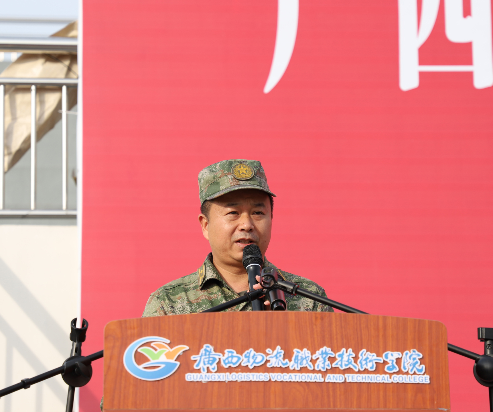 韦光茂指出,军训是培养高素质后备兵源和提高国防教育质量的重要途径,是落实立德树人根本任务和强军目标根本要求。学校党委一直高度重视国防教育、国防动员,充分发挥军训综合育人作用。他希望全体参训学生端正态度,厚植家国情怀,积极发扬集体主义精神、增强集体荣誉感和组织观念,争当标兵、争创佳绩;服从命令,全面加强纪律观念,逐步养成以“敬业、精益、专注、创新”为基本内涵的工匠精神;全力投入,敢于吃苦,超越自我,练就强健体魄、过硬本领,用行动展示广物院2022级学子的青春风采,为服务国防和军队现代化建设彰显物院应有担当。