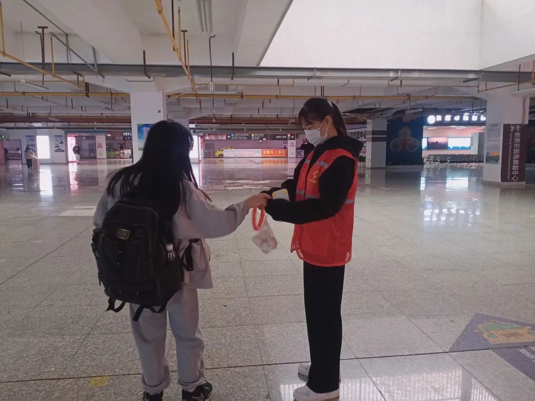 在高铁站、民族公园、新世纪广场、汽车西站等地,青年志愿者们主动担任公共文明引导员,以真诚与热忱为出行旅客、游客开展引导、帮扶服务,展现物院团员青年新时代文明精神风貌。