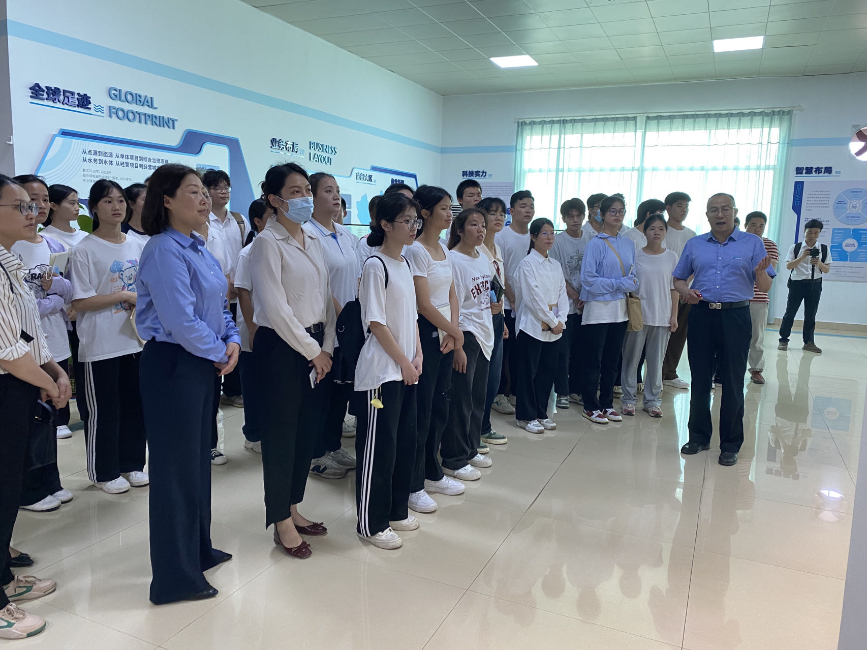 为进一步深化校企合作、推动产教融合,增强在校学生对企业的认知,2023年5月19日上午,以“职教周”为契机,生态环保学院党支部书记、副院长许艺馨一行40余名师生代表前往广西贵港北控水务环保有限公司、广西贵港北控环境科技有限公司进行参观交流,深入生产一线“拜师学艺”。北控水务南部大区贵港区域公司副总经理徐莲瑛、广西贵港北控环境科技有限公司总经理戴勇出席活动。