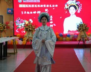 环境工程(水处理)221覃小群:以前从来没有体验过簪花文化,这次学校举行的簪花活动让我满足了自己的爱美之心。弄好造型,开始展示环节,站在T台上的我们更多的是自信从容,因为簪花造型彰显出了每一位女性的独特气质。