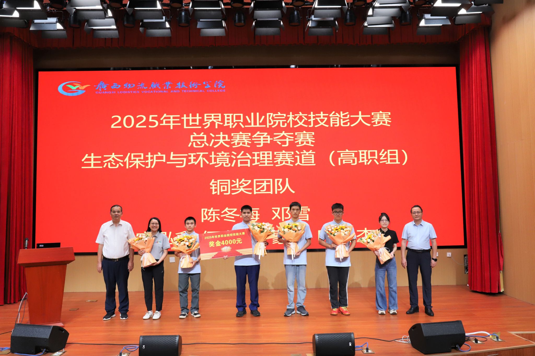 会上,漆辉、朱海强共同为在2025年世界职业院校技能大赛总决赛争夺赛中获奖的选手及其指导教师献花。