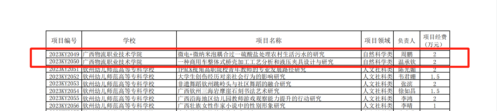 19个项目获得2023年度广西高校中青年教师科研基础能力提升项目立项