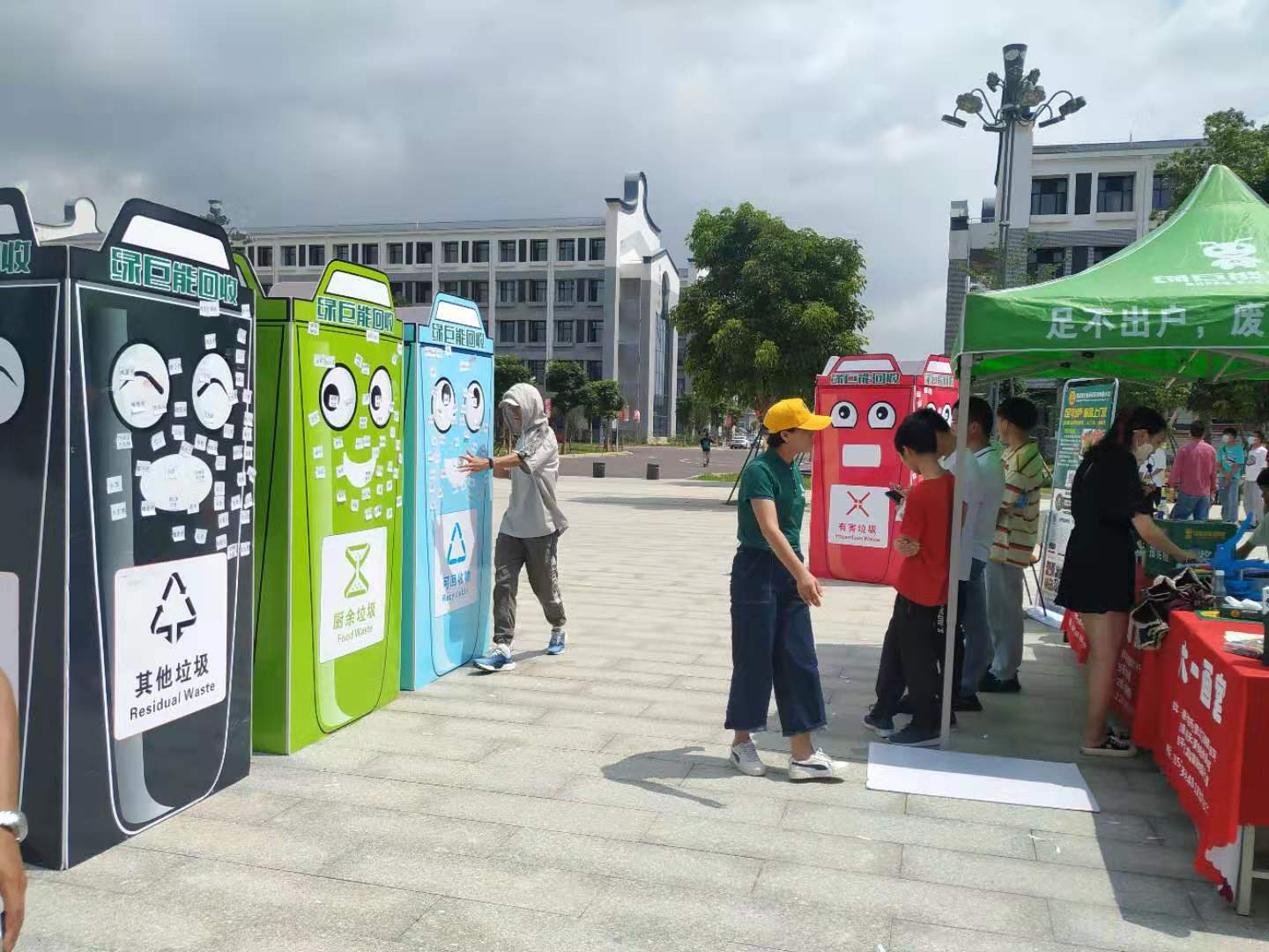 最后,学院师生代表与各企业、学校专家一同参观各专业职业教育成果展区及实训室。物流管理学院进行无人机展示、作业工艺展示、半自动堆高机精准作业表演及体验展示、手动搬运车穿越障碍技能展示;生态环保学院携同绿巨能回收公司开展垃圾分类活动等。