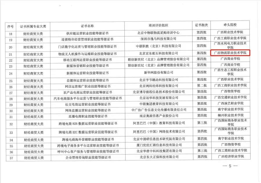 2021年7月19日,广西自治区教育厅公布了2021年国家1+X证书制度试点单位及牵头院校(广西),pp电子成为物流无人机操作与运维职业技能等级证书牵头院校,培训评价机构北京京东乾石科技有限公司将继续与pp电子在物流科技领域开展深度校企合作。