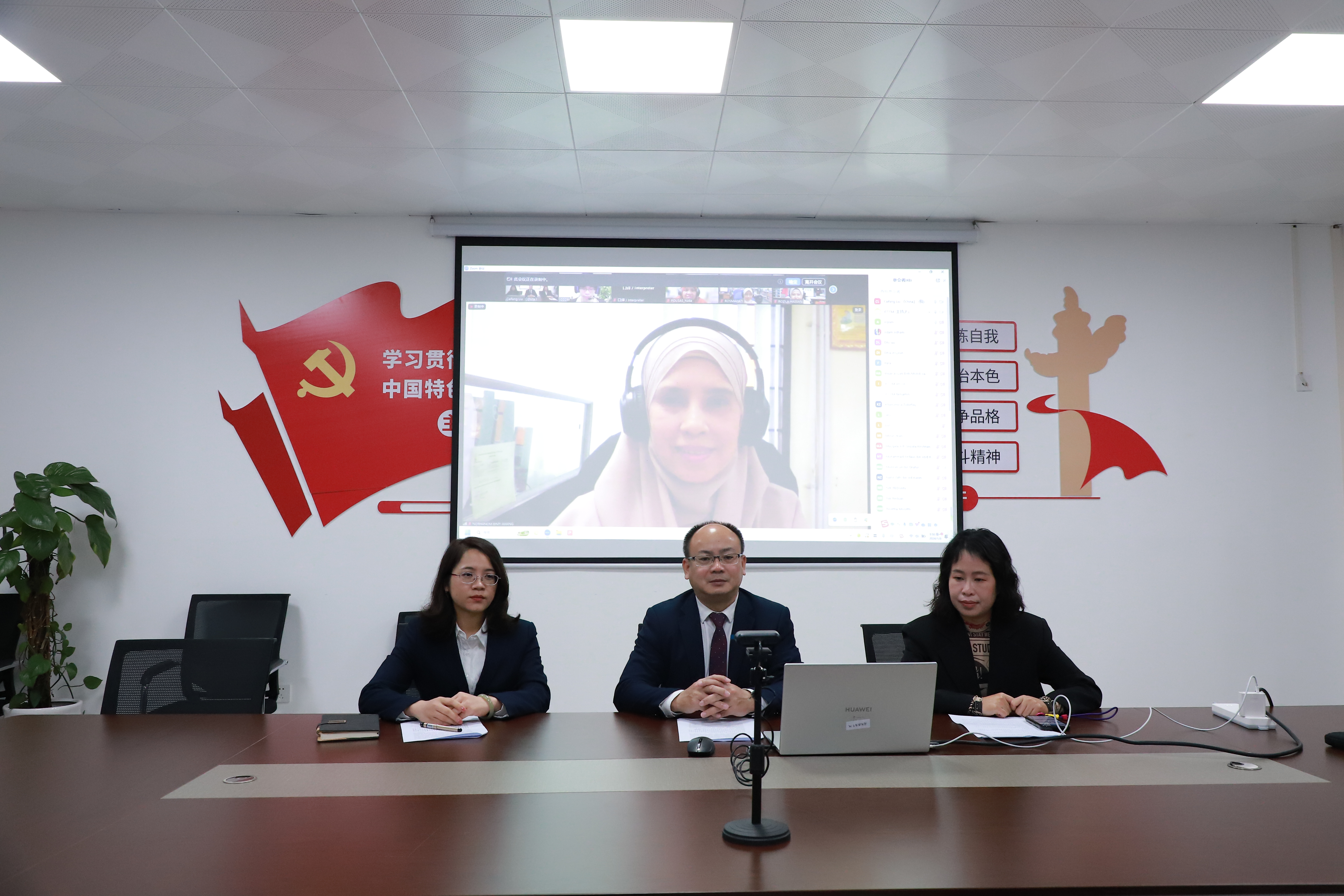 2024年1月8日,pp电子与马来西亚苏丹阿末沙理工学院联合开展“中文+供应链运营”线上专题培训。学院党委委员、副院长陈赋光,马来西亚苏丹阿末沙理工学院部门负责人诺汉娜姆.阿旺女士出席本次培训会开班仪式并致辞。
