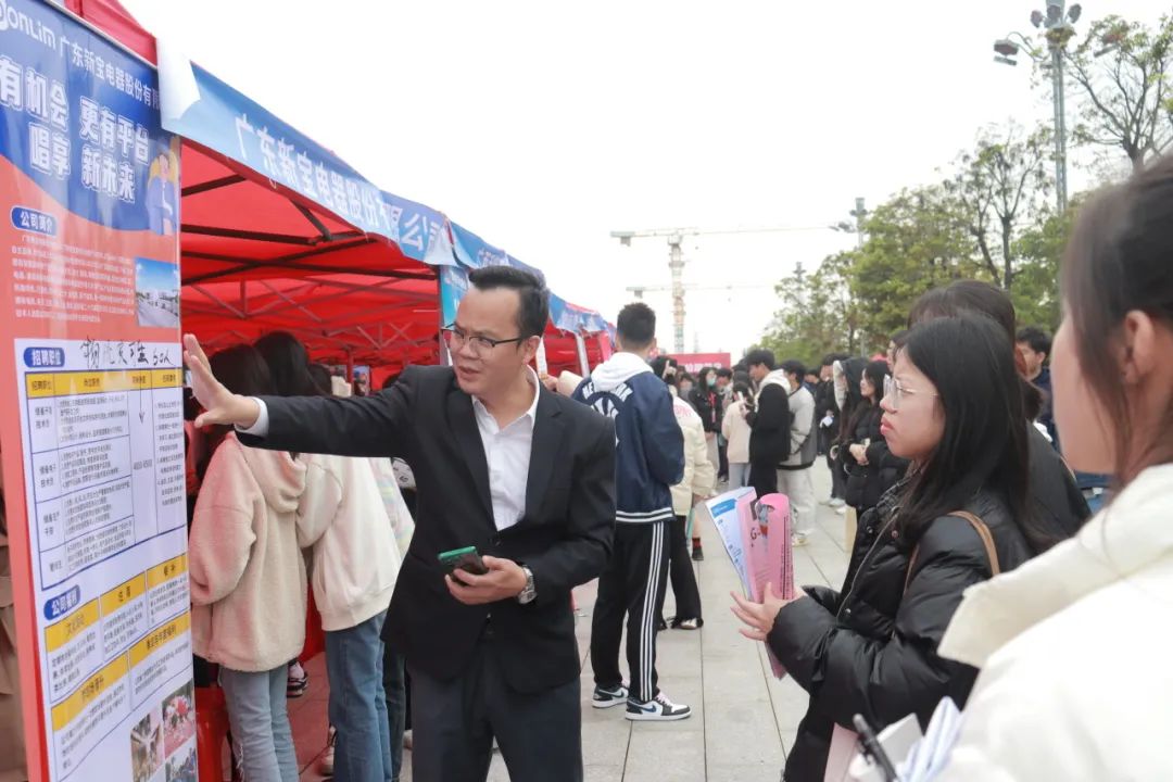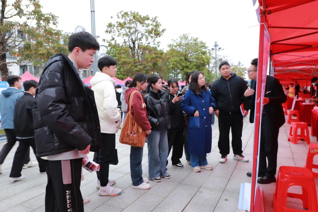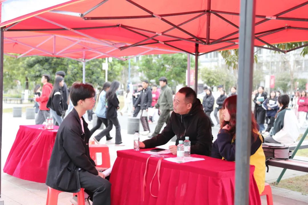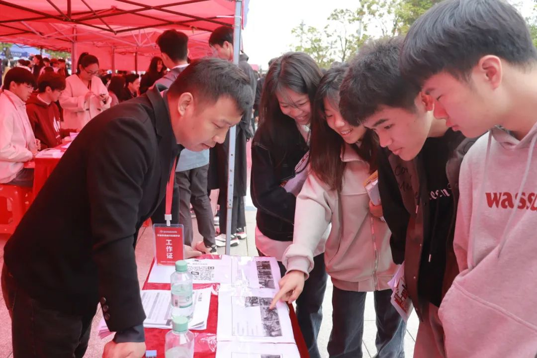 现场气氛热烈,毕业生认真查看用人单位的招聘简章,向有意向的用人单位投递简历,并详细了解相关信息。参会企业热情细致地向前来应聘的同学们讲解当前市场就业需求、工作环境等问题,用“真金白银”的诚意和“真情实意”的温情吸引莘莘学子。辅导员、班主任带领毕业生查看岗位,不少专业老师来到招聘会现场与企业开展洽谈,并积极推荐毕业生。
