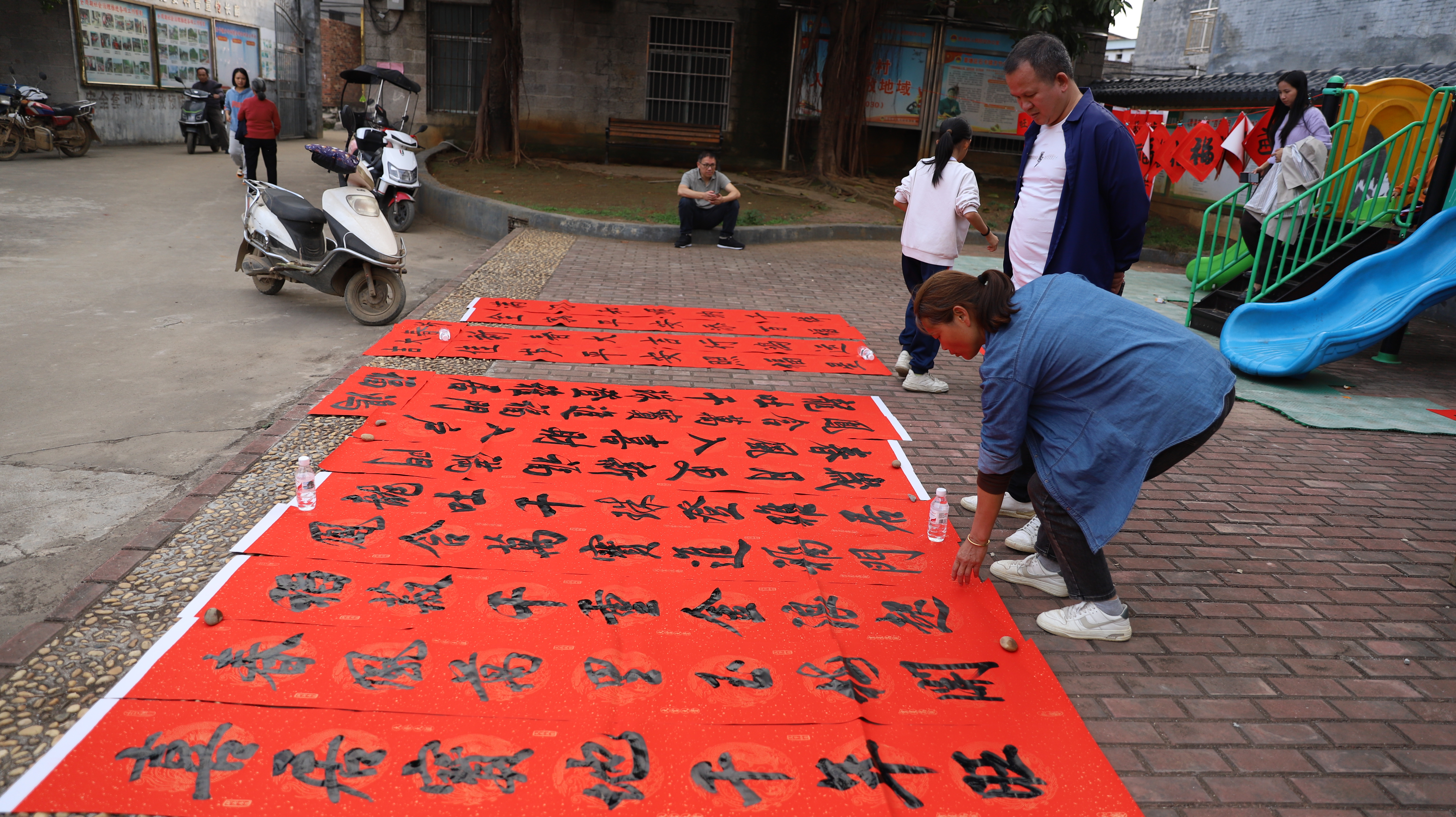 村民们热情参与,挑选心仪的对联晾晒墨迹、收获祝福,纷纷表示还是手写的春联更亲切、有年味。