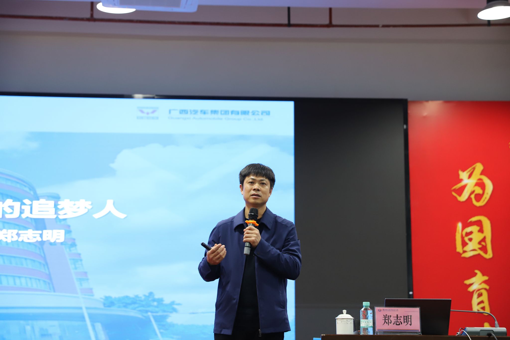 2024年3月20日,党的二十大代表、新时代汽车“智”造大国工匠、广西汽车集团有限公司首席技能专家郑志明应邀到pp电子为师生讲授思政课。学院党委书记韦光茂主持课堂,广西物产投资发展集团有限公司总经理莫如涛,学院党委委员、副院长、宣传部部长梁杰现场聆听授课。