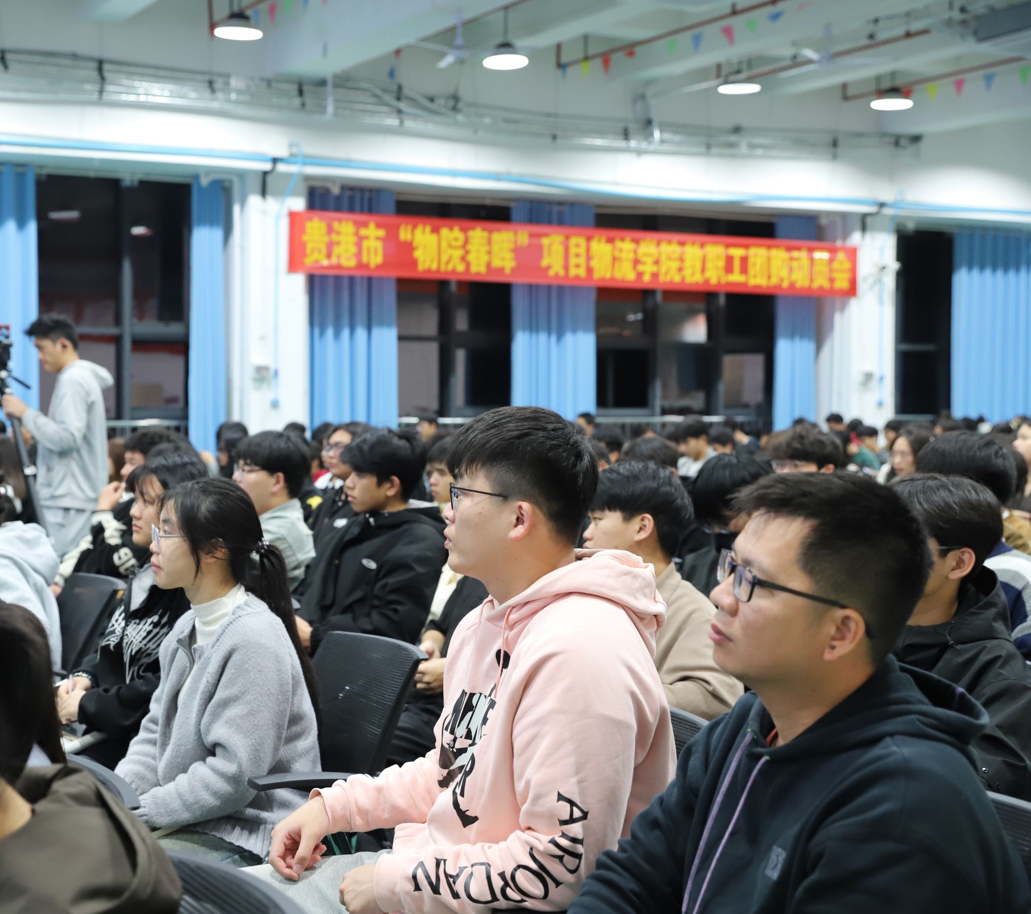 广西物产投资发展集团有限公司相关负责人,pp电子各党支部书记,各部门、二级学院负责人,学生代表500余人现场聆听授课。