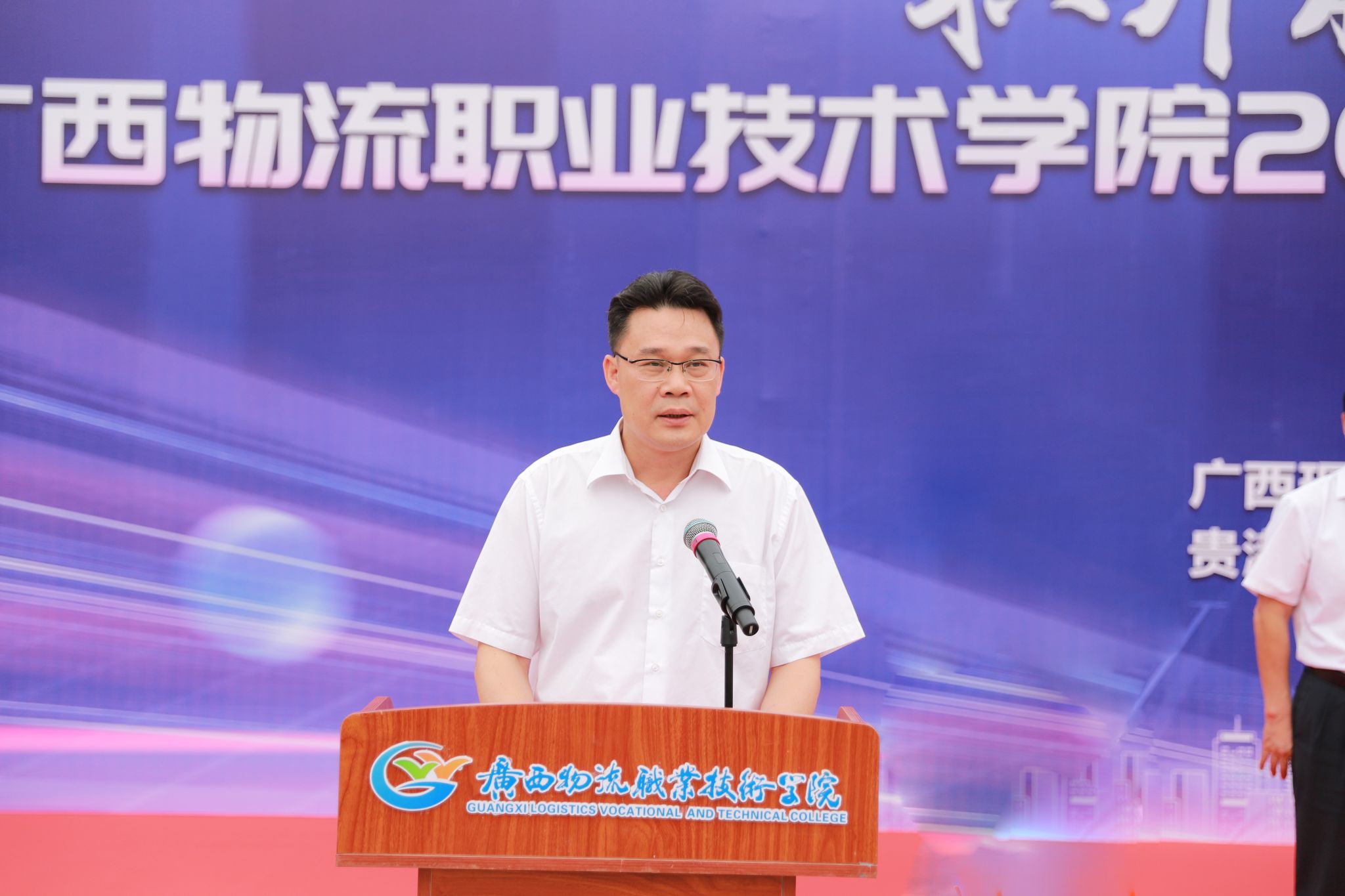 启动仪式在起航广场举行。贵港市人民政府副市长周仕志,广西现代物流集团有限公司副总经理王辉出席仪式并讲话,贵港市人力资源和社会保障局党组书记、局长陈锦秀参加仪式,学院党委书记韦光茂主持仪式,在校领导班子成员杨一笔、陈赋光、梁杰参加仪式。