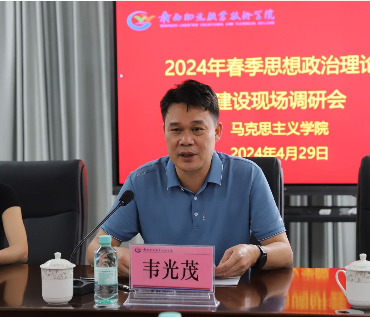 2024年4月29日上午,学院在马克思主义学院召开2024年春季期思想政治理论课建设现场调研会,学院党委书记韦光茂出席会议并讲话,学院党委委员、副院长、宣传部部长梁杰主持会议。