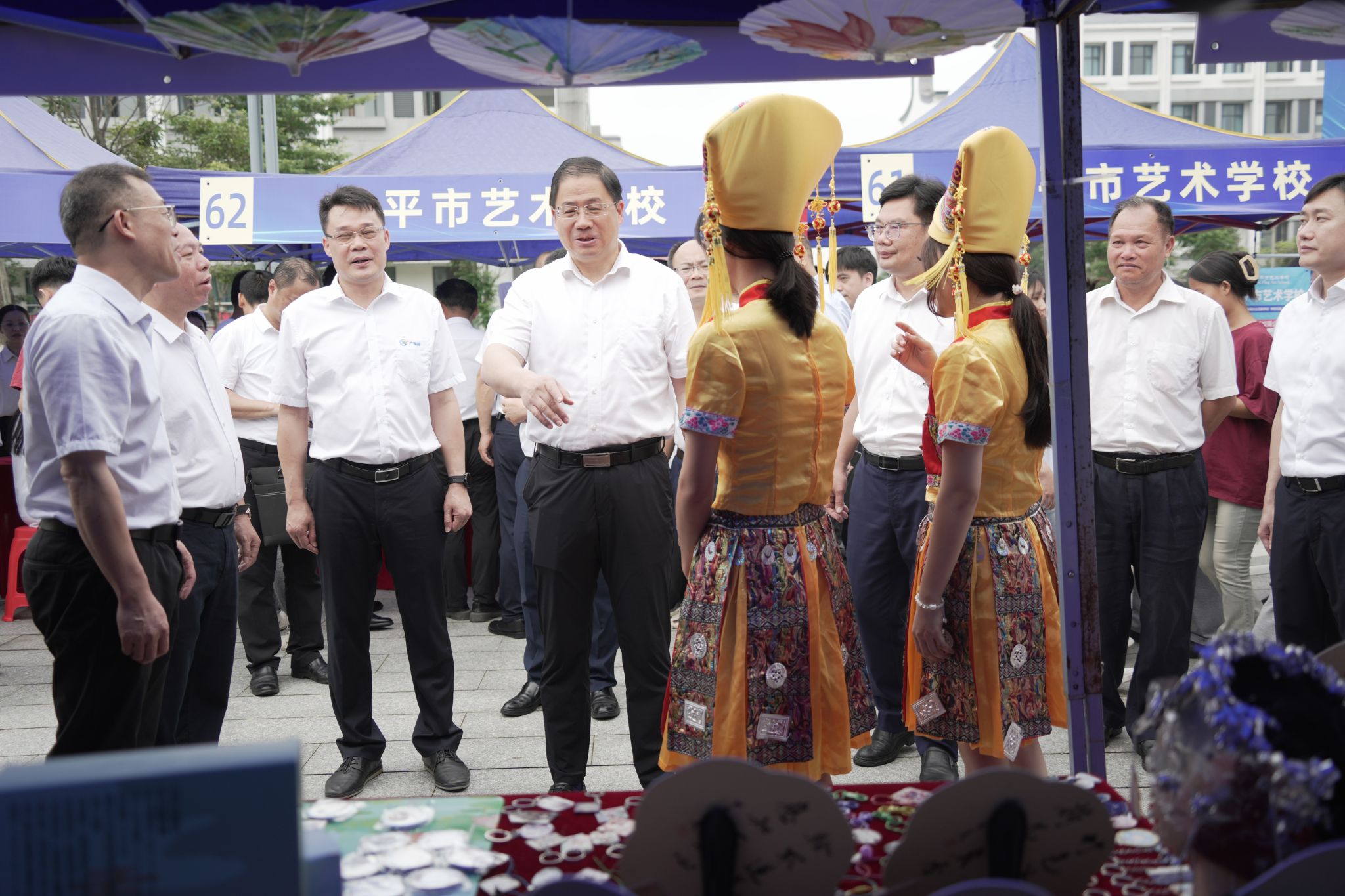 参加启动仪式的领导前往各学校、企业展位,了解职业技能,感受职教文化。各展位通过展板、实物、现场技能操作等形式,多层次、多角度的展示职业教育的发展成果,现场热闹非凡,精彩纷呈。