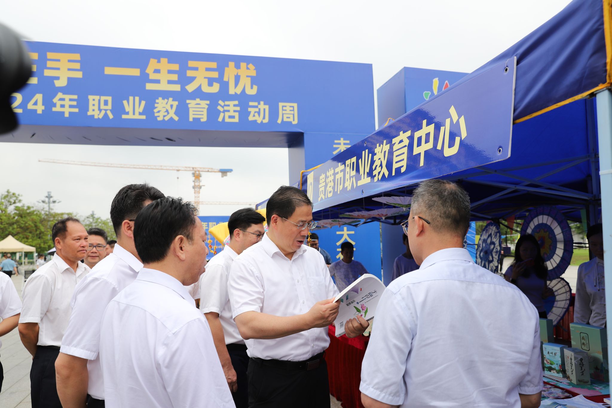 初夏五月,绿草如茵。为深入贯彻落实习近平总书记关于职业教育的重要讲话和重要指示批示精神,全面落实立德树人根本任务,展示职业教育服务国家战略需求和区域经济社会发展成果,2024年5月21日,贵港市2024年职业教育活动周启动仪式在pp电子盛大举行。贵港市人大常委会党组书记、主任彭东光出席仪式并宣布活动开幕。贵港市人民政府副秘书长,市政府办公室党组成员、副主任杨通顺同志出席会议。贵港市委教育工委书记,贵港市教育局党组书记、局长黄光文,学院党委书记韦光茂,贵港市职业教育中心党委书记、校长谈志勇,广西亿森文化传媒有限公司总经理黎波在仪式上发言。贵港市教育局党组成员、副局长杨兵主持仪式。