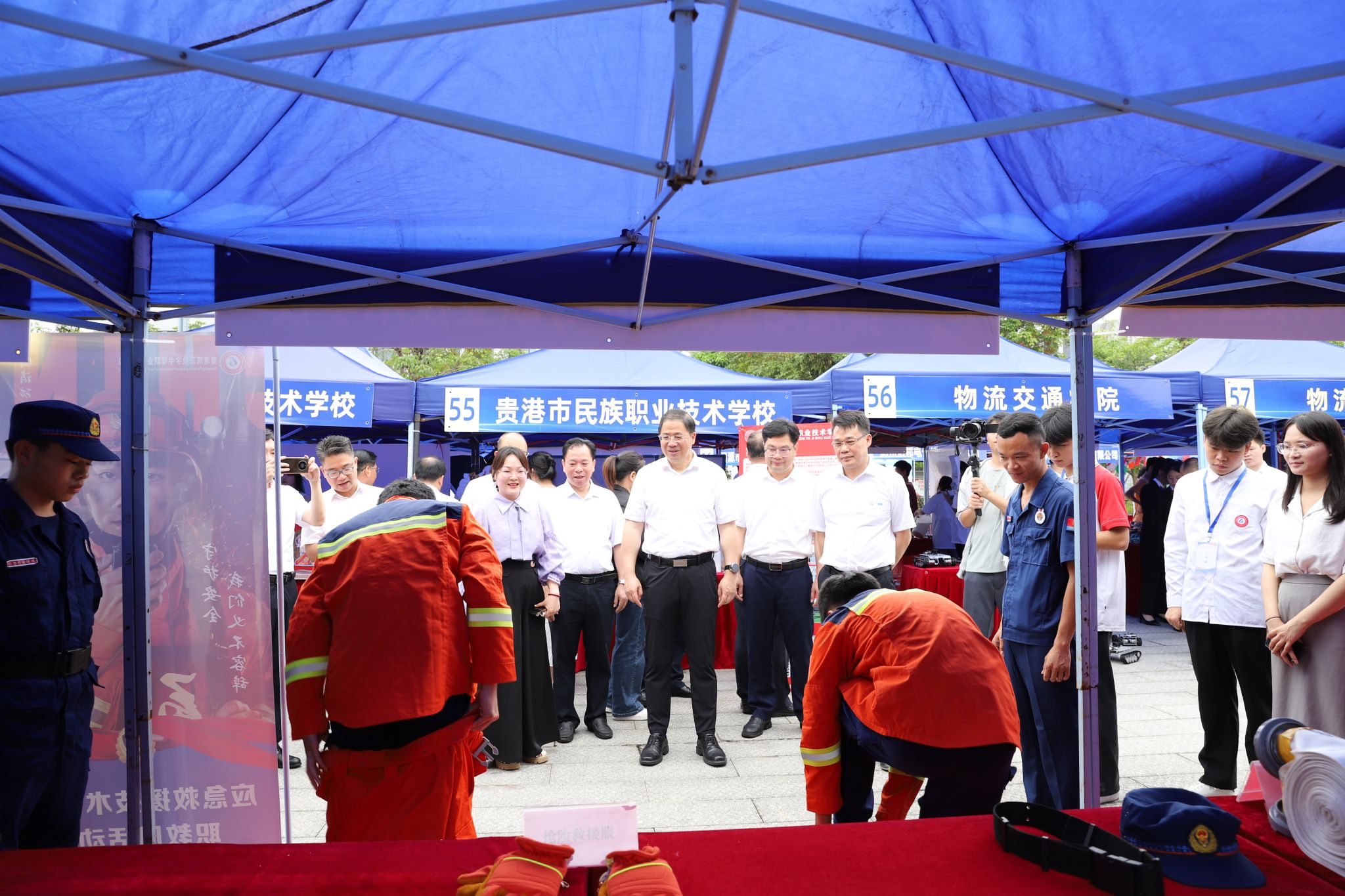 贵港市高新区管委会、市科技局、市工业和信息化局、市人力资源社会保障局、团市委、各县(市)区教育局、各中职学校,知名企业代表,学院在家领导班子成员,各部门、二级学院负责人,师生代表等参加启动仪式。