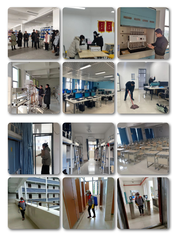 学校组织班主任深入学生宿舍检查安全情况,组织保洁人员在办公楼、教学楼、图书馆、宿舍楼、食堂等各个区域进行全方位的消毒杀菌,做到消杀工作全面彻底、不留死角。开展校园环境整治工作,对教室、办公室、宿舍、卫生间等各个区域进行彻底打扫,确保校园环境干净卫生整洁。